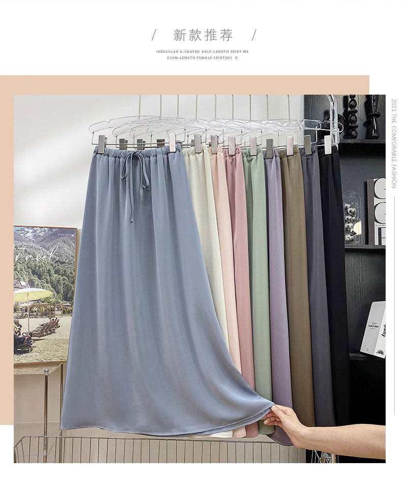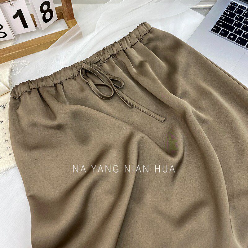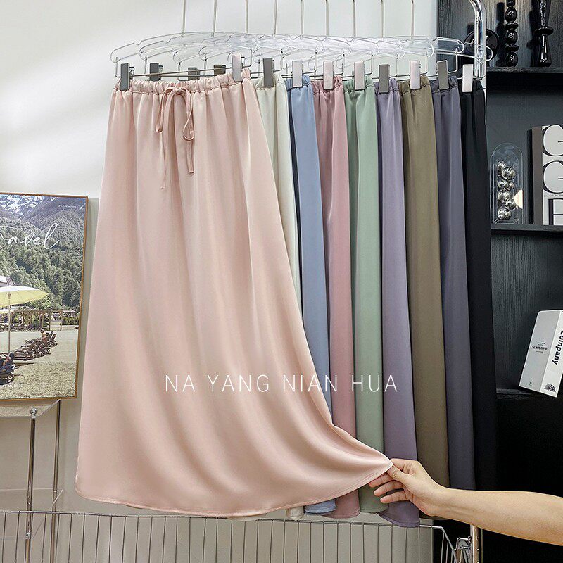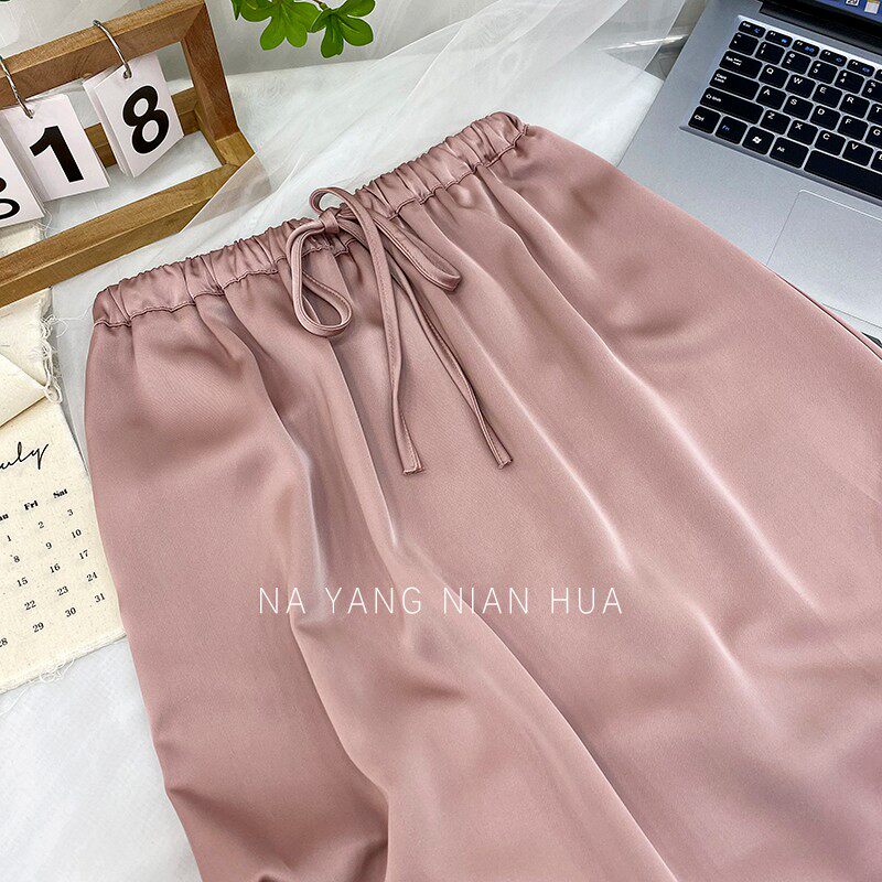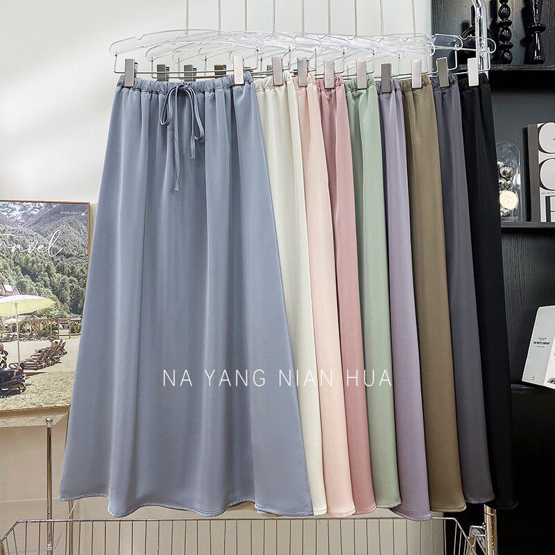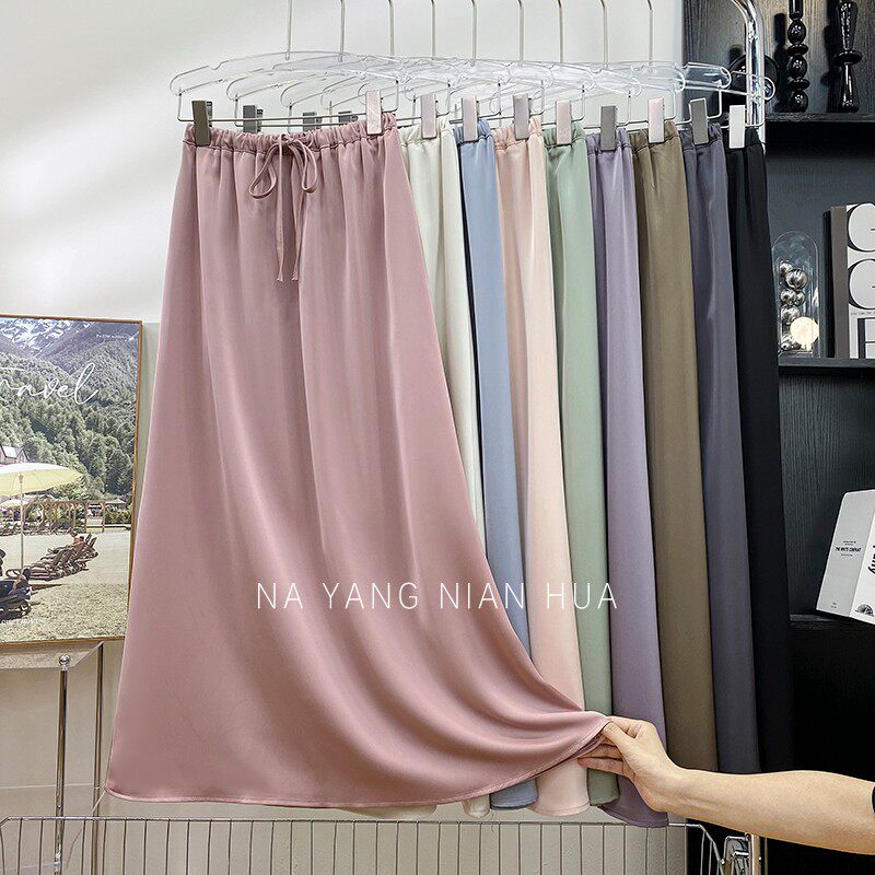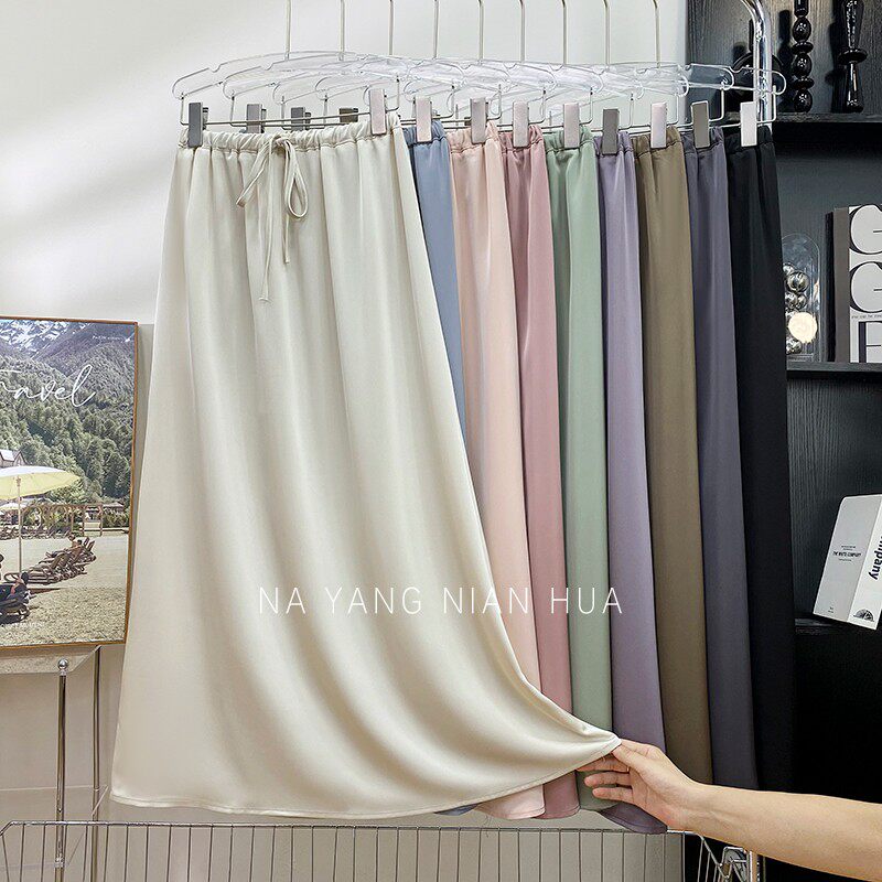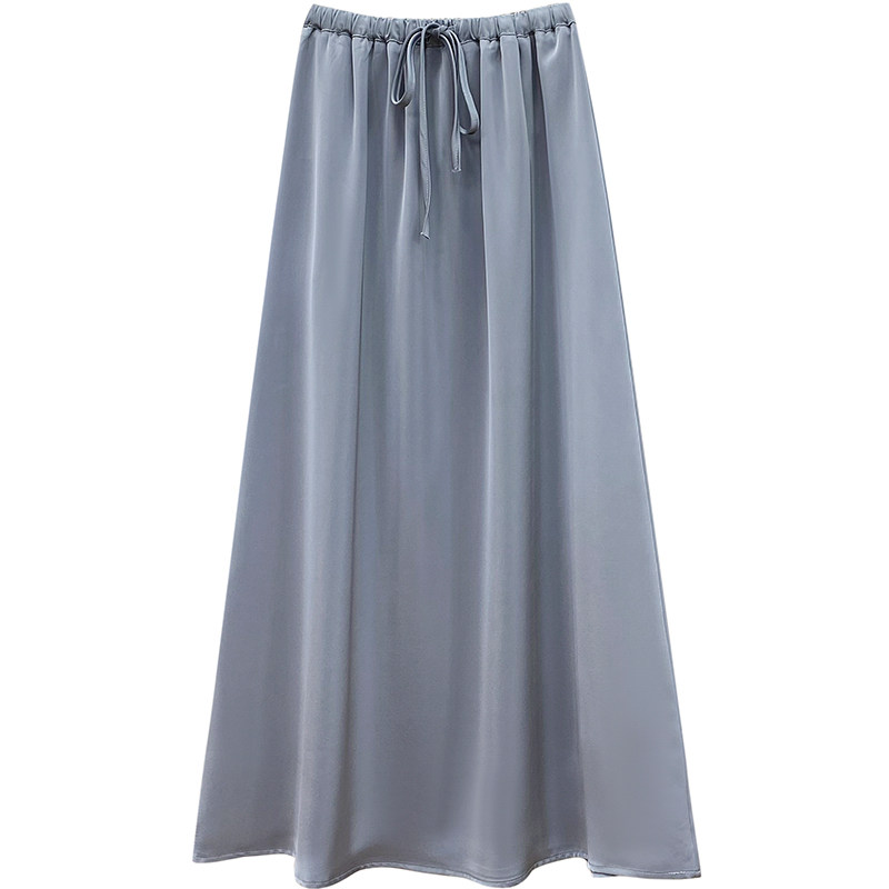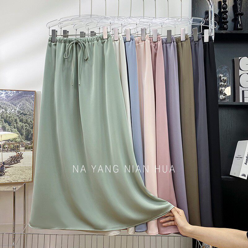 Шелковая юбка, на шнурках, изысканный стиль, длина миди, А-силуэт