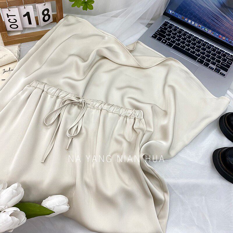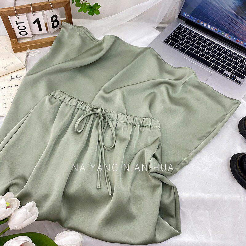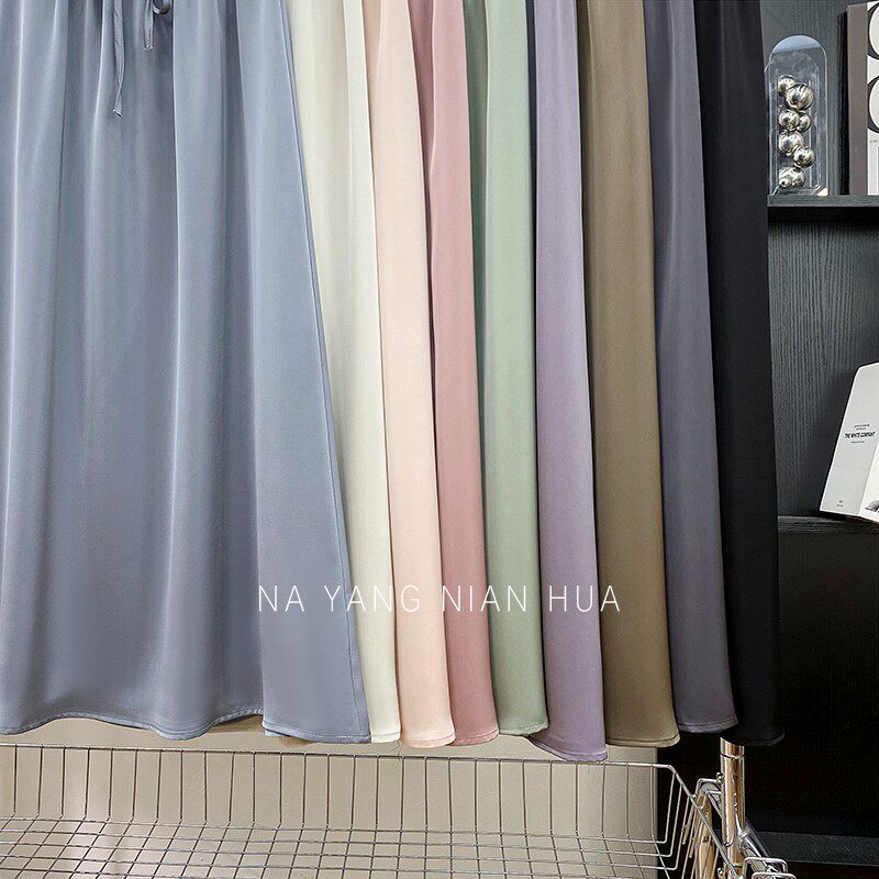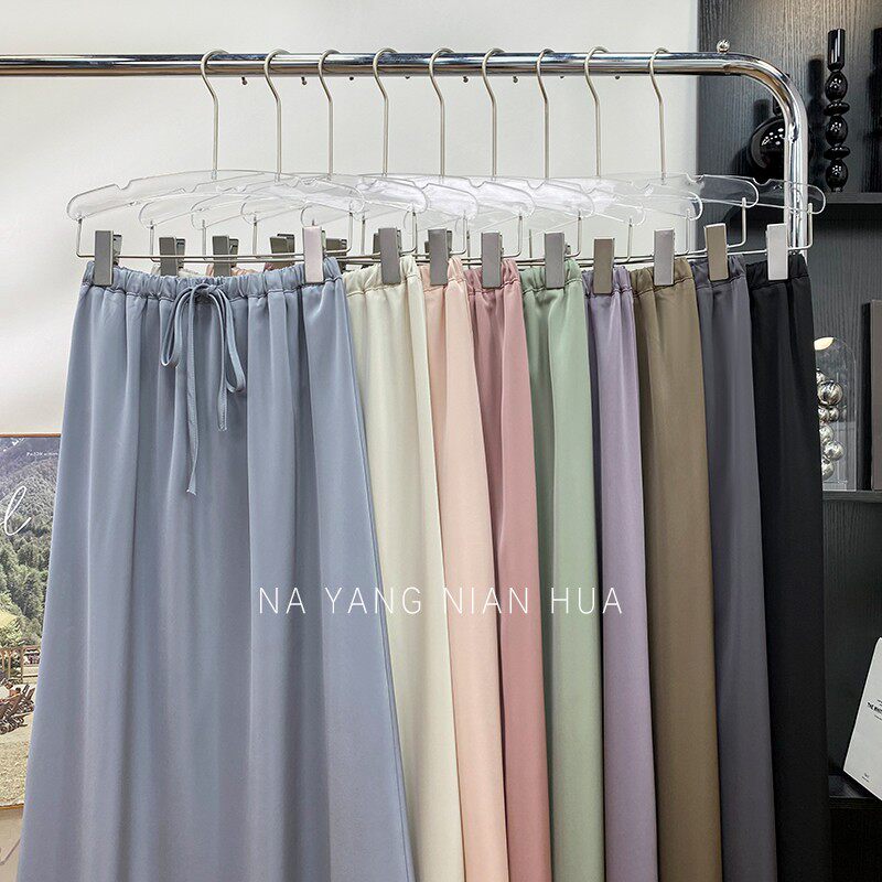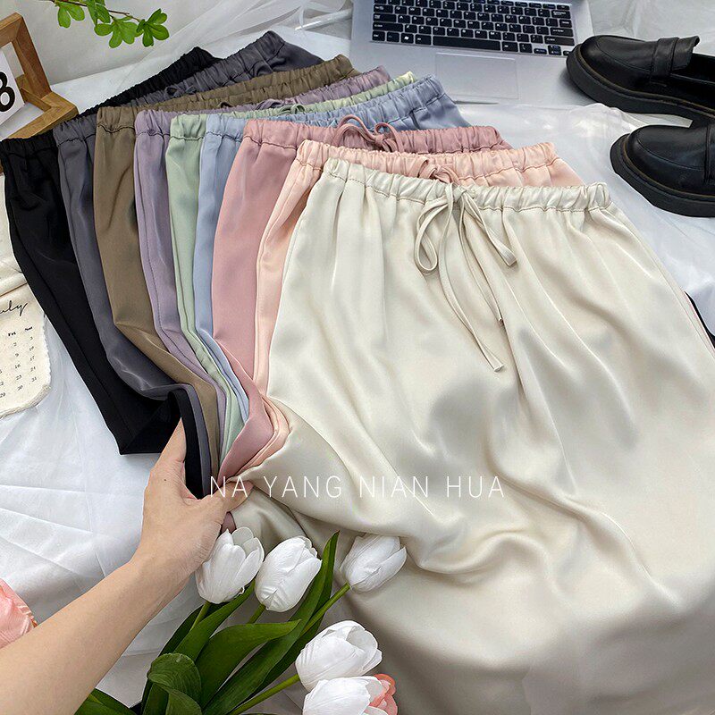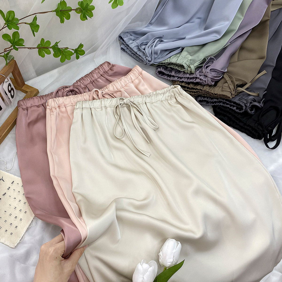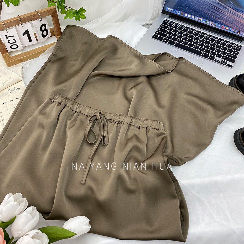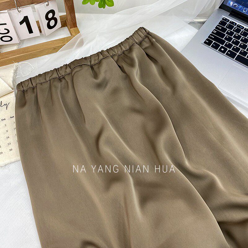 Шелковая юбка, на шнурках, изысканный стиль, длина миди, А-силуэт