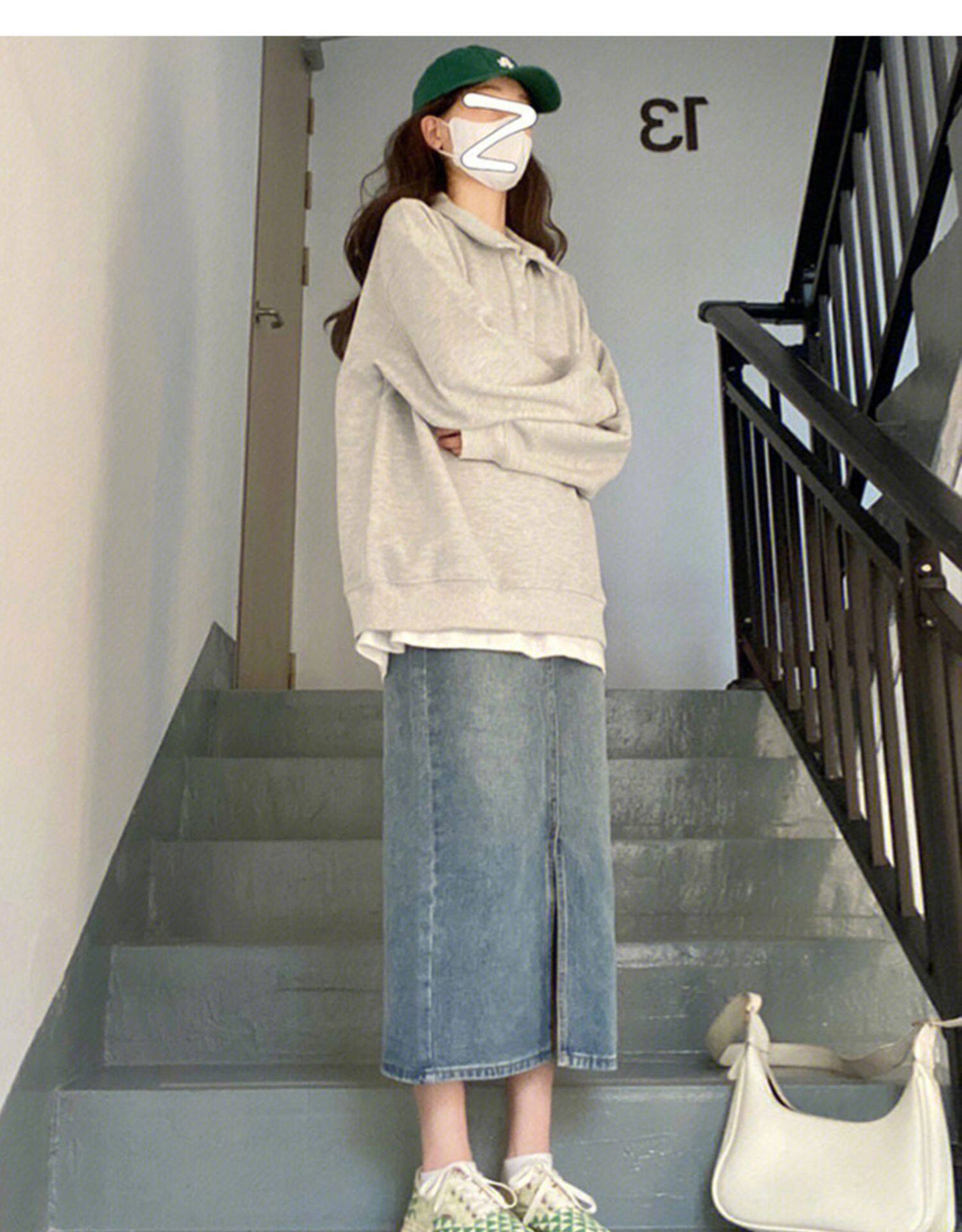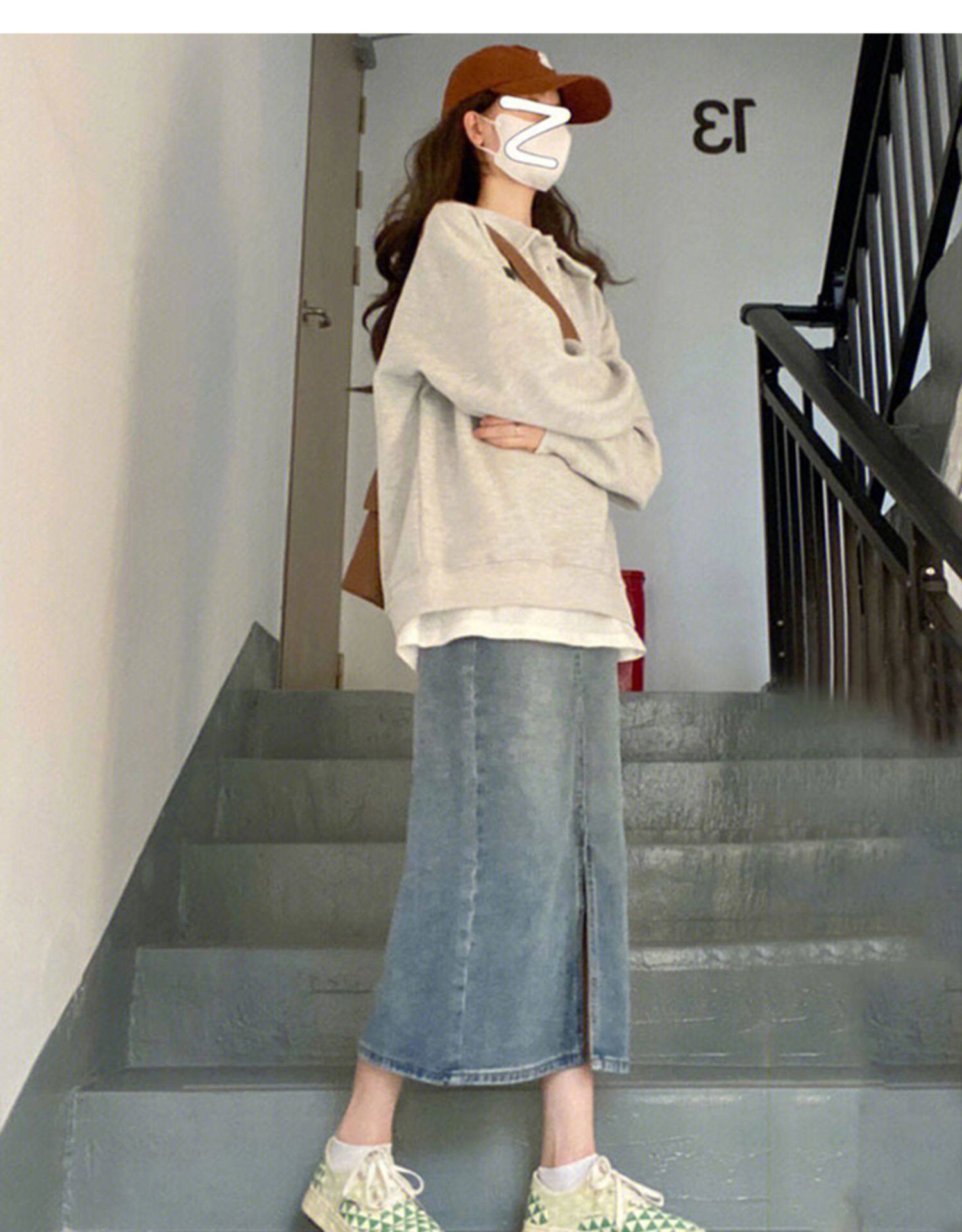 Синяя джинсовая юбка, осенняя, для формы тела «груша», оверсайз, по фигуре, А-силуэт