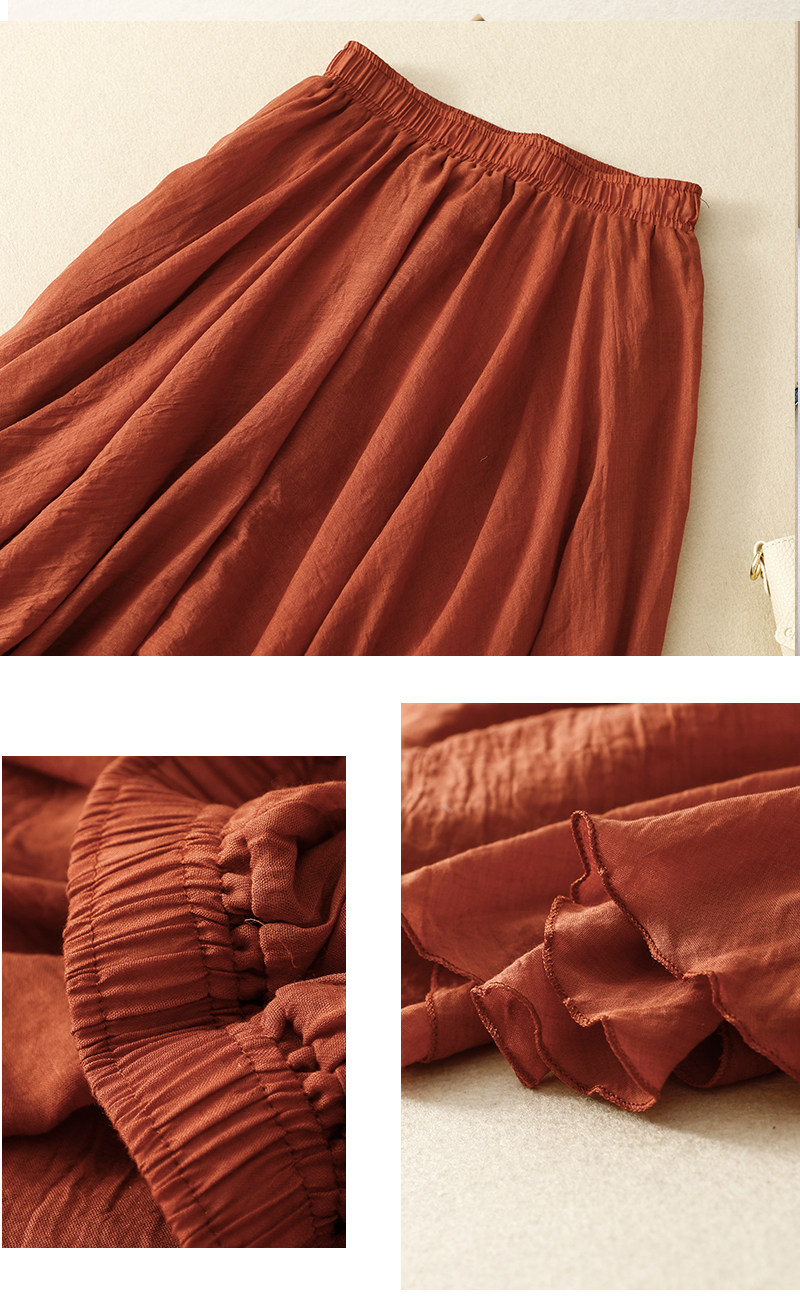 Брендовая длинная юбка, А-силуэт, высокая талия, из хлопка и льна