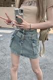 Ретро дизайнерская летняя джинсовая юбка, мини-юбка, тренд сезона, высокая талия, большой размер, с акцентом на бедрах