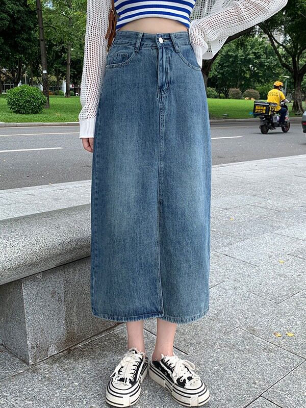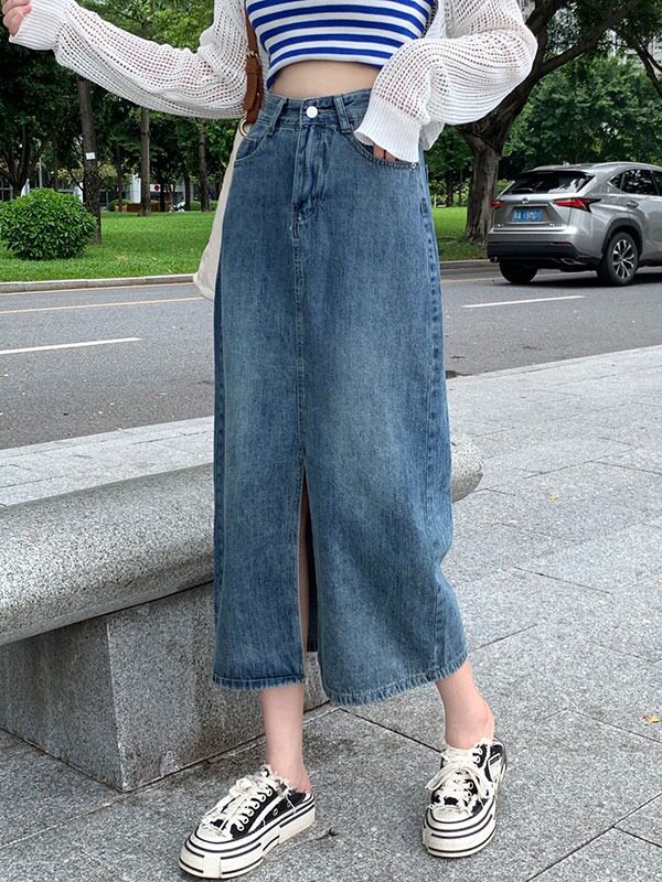 Ретро летняя длинная джинсовая юбка, большой размер, высокая талия, А-силуэт