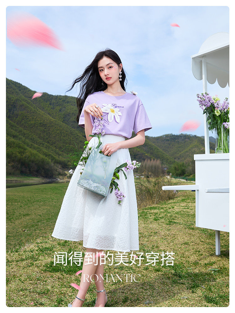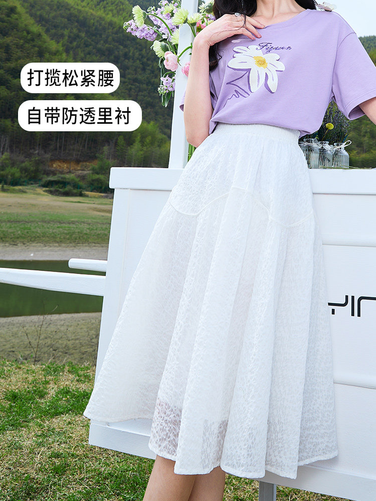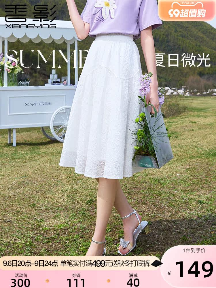 香影 Летняя длинная приталенная белая юбка, средней длины, А-силуэт, цветная юбка