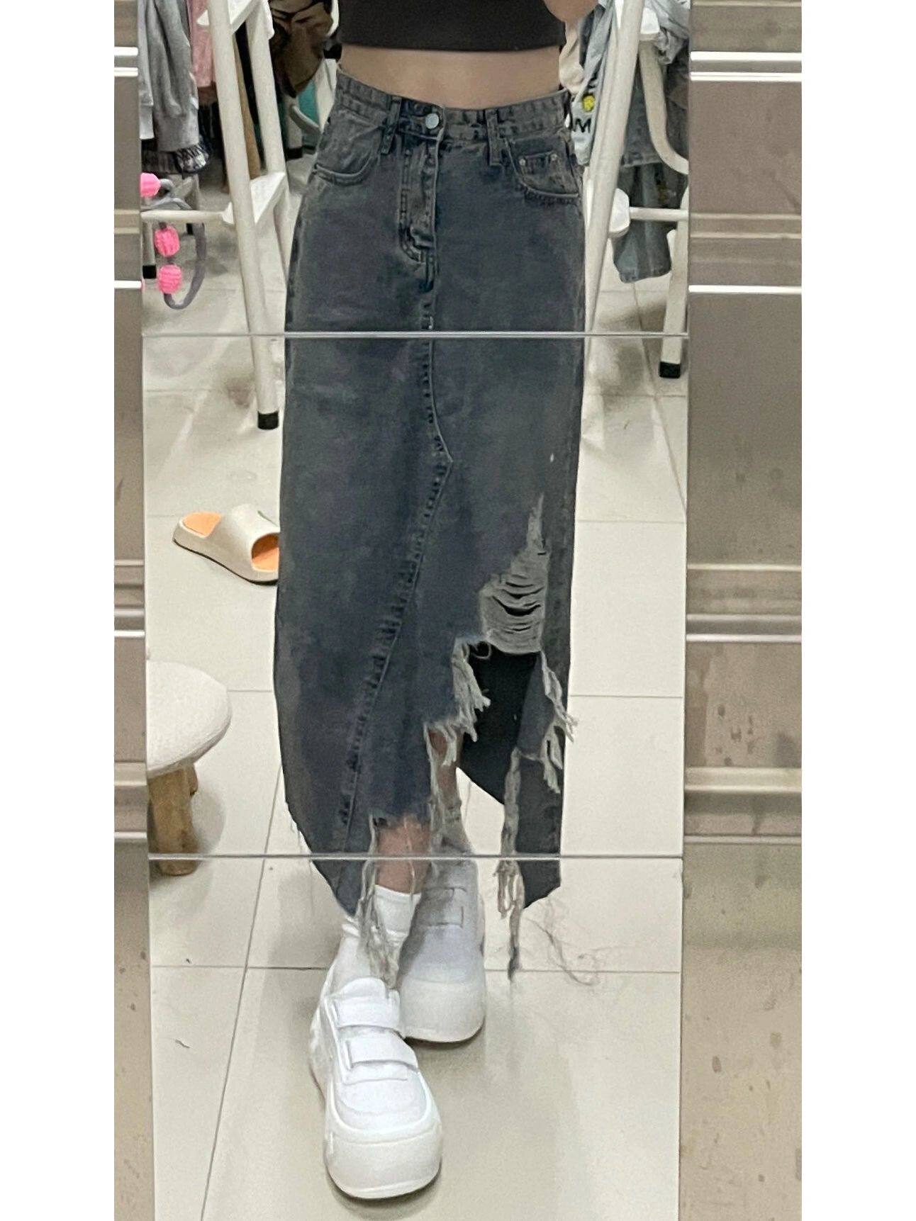 Ретро длинная джинсовая юбка, большой размер, высокая талия, длина миди