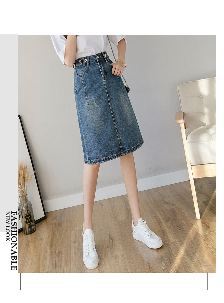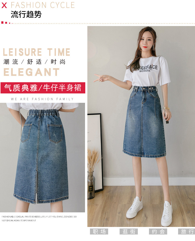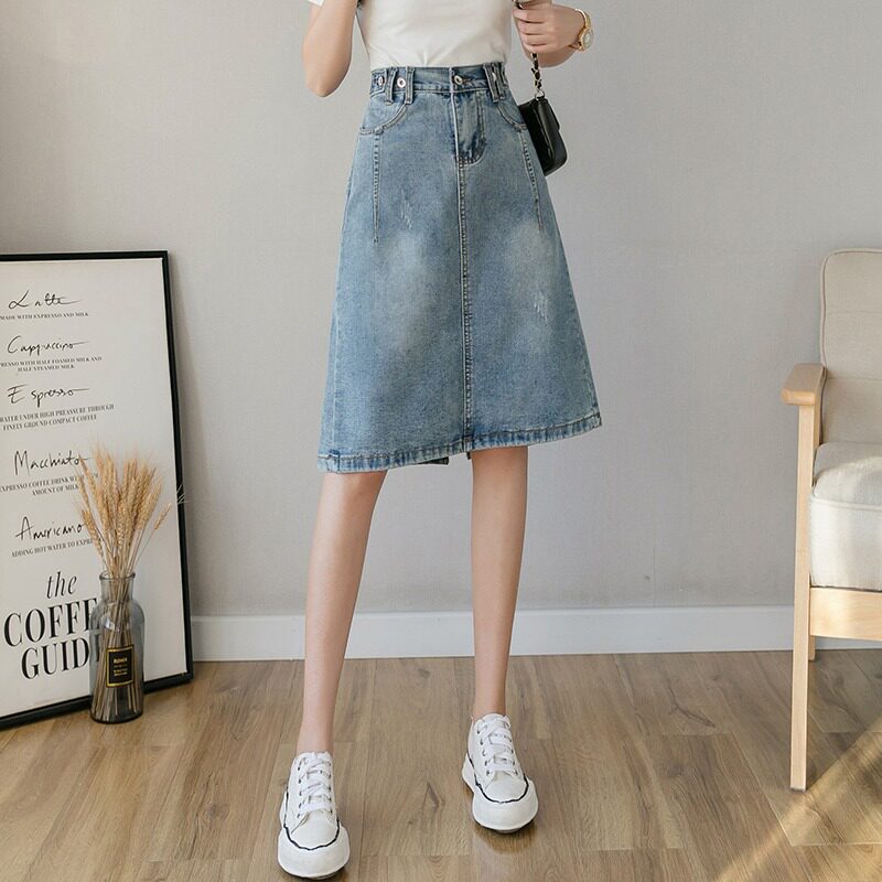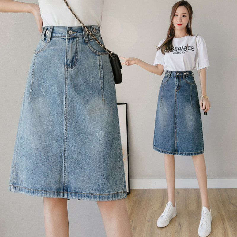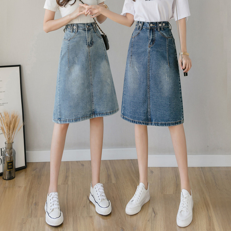 Весенняя летняя длинная приталенная джинсовая юбка, подходит для подростков, средней длины, эластичная талия, высокая талия