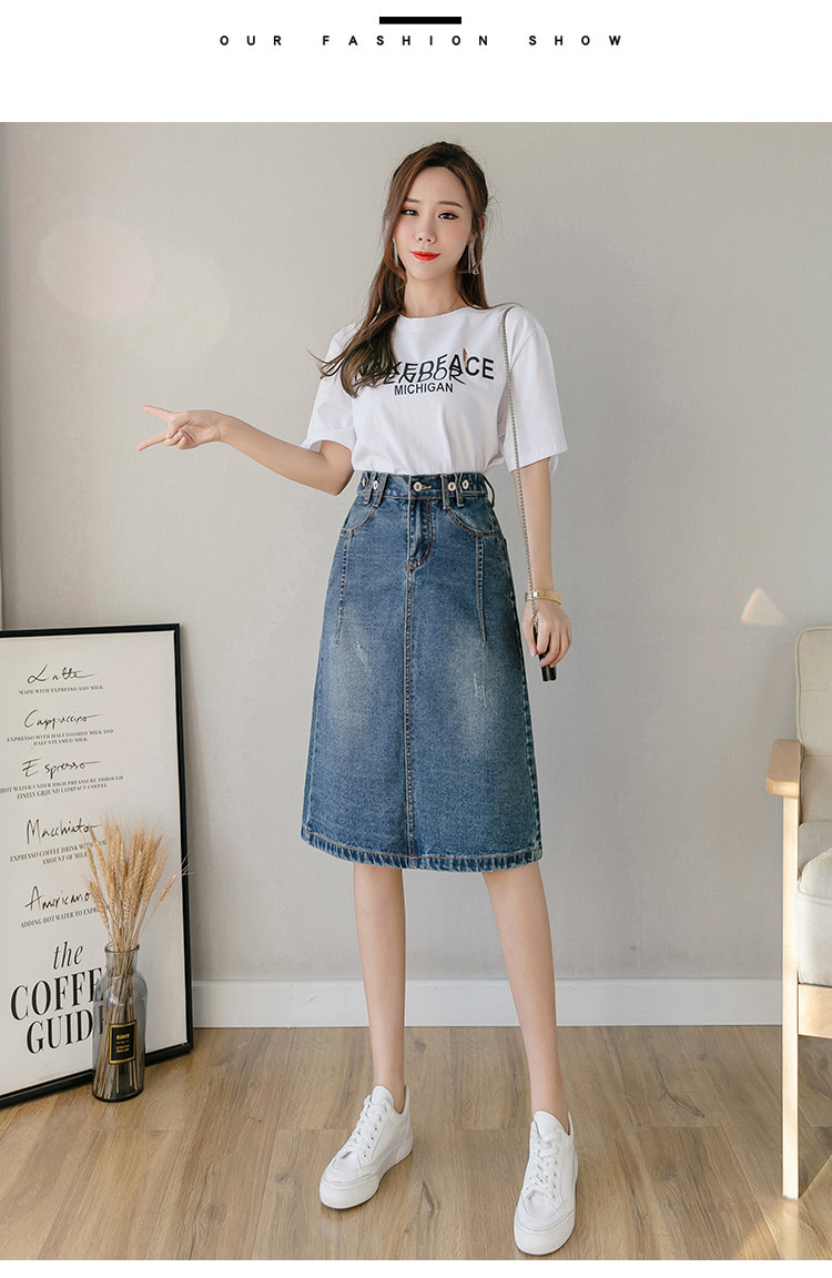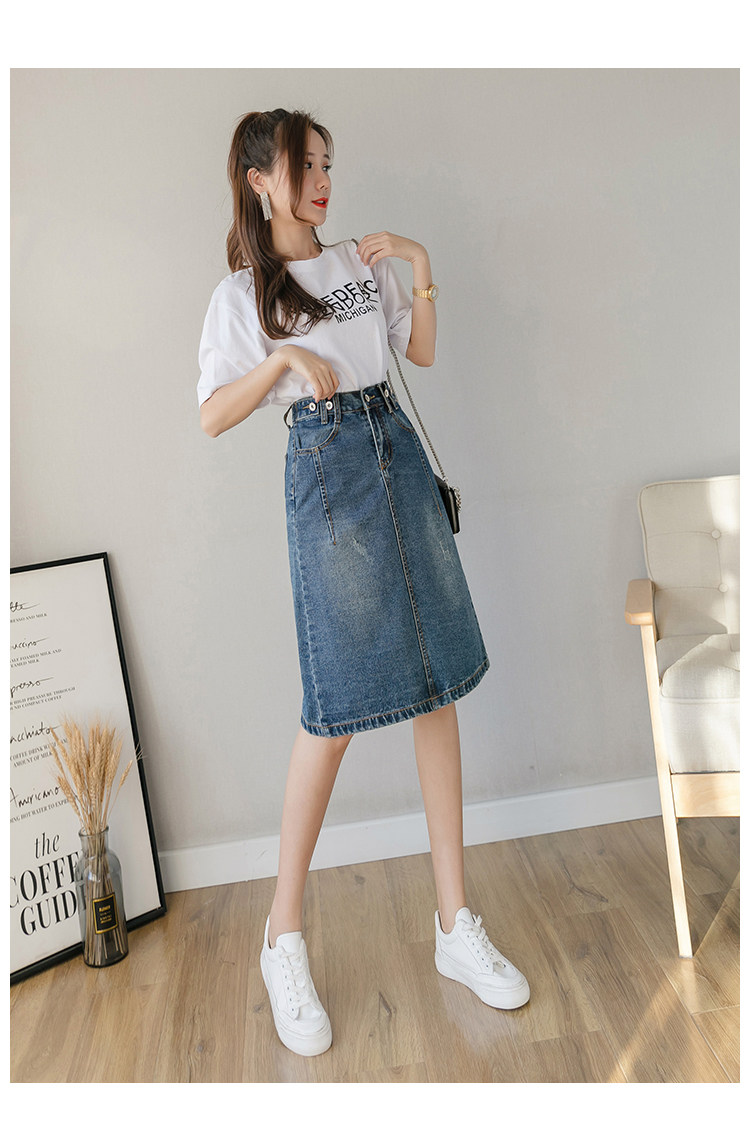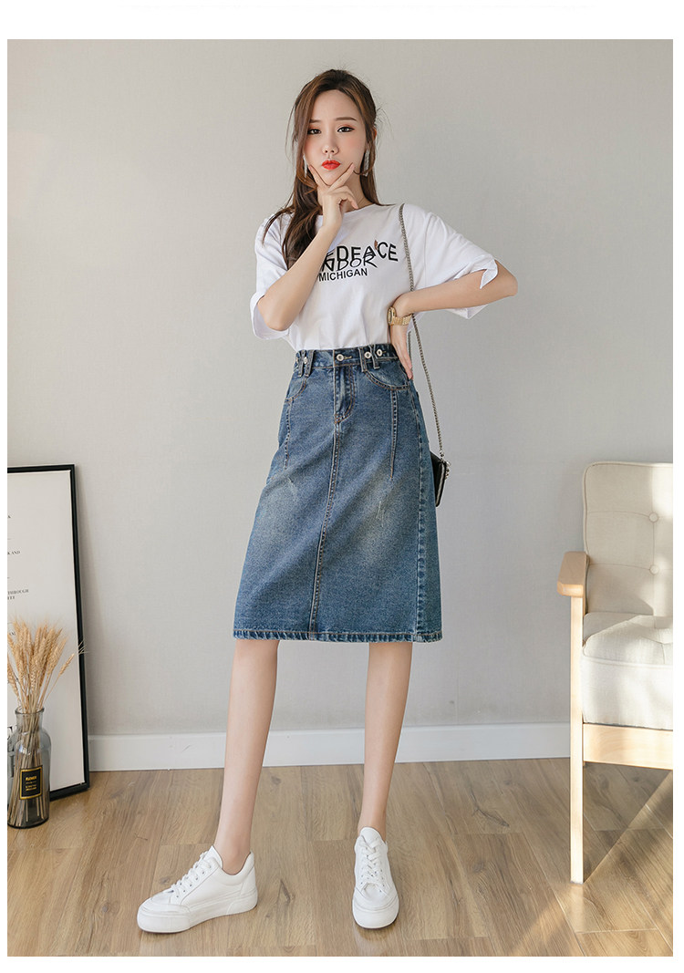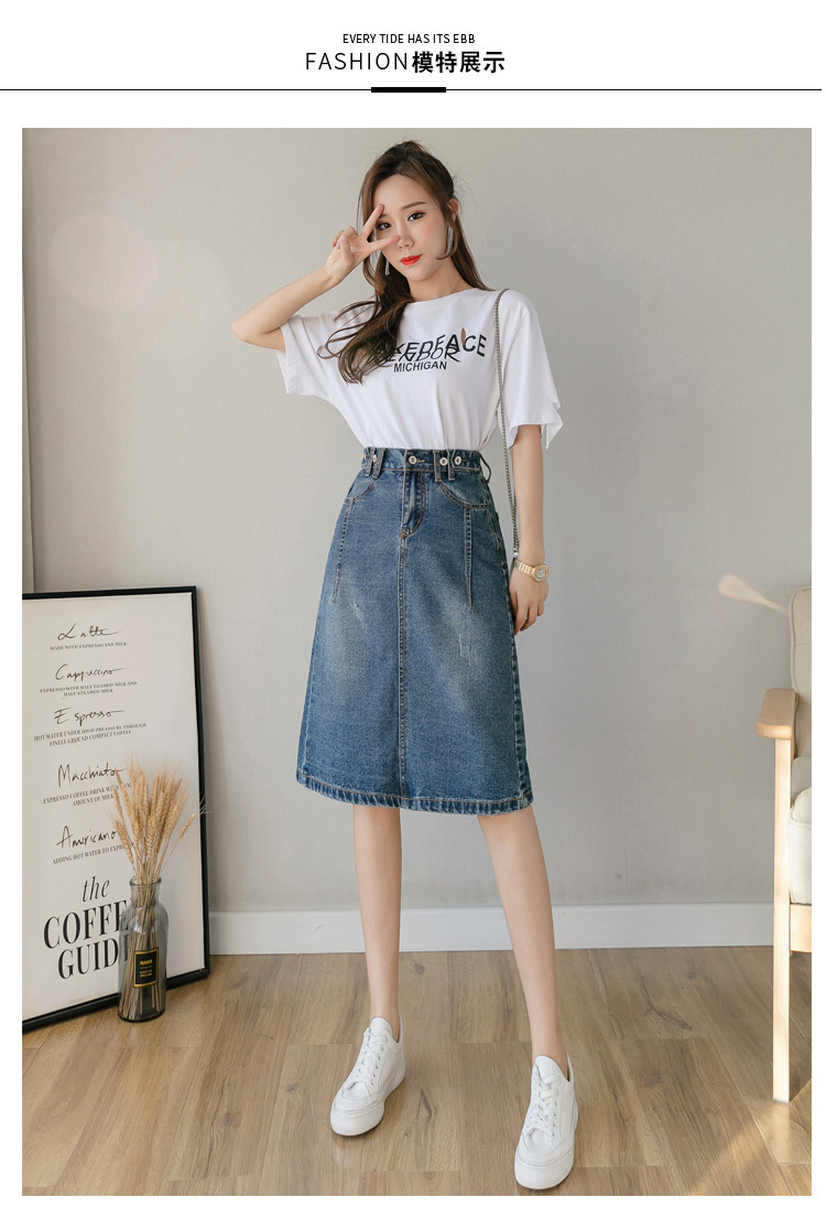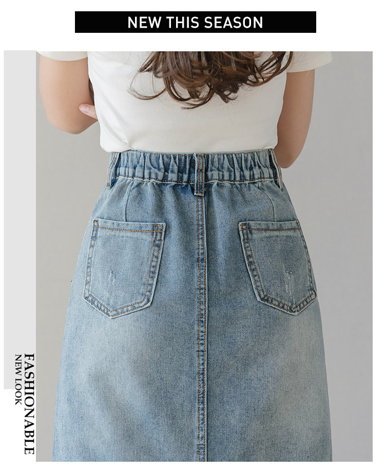 Весенняя летняя длинная приталенная джинсовая юбка, подходит для подростков, средней длины, эластичная талия, высокая талия