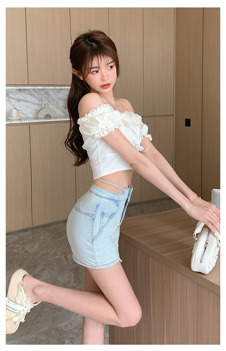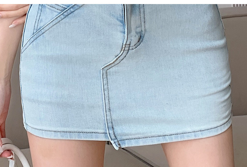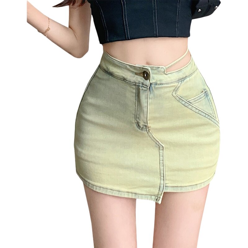 Синяя сексуальная джинсовая приталенная мини-юбка, летняя юбка, с акцентом на бедрах, высокая талия, А-силуэт