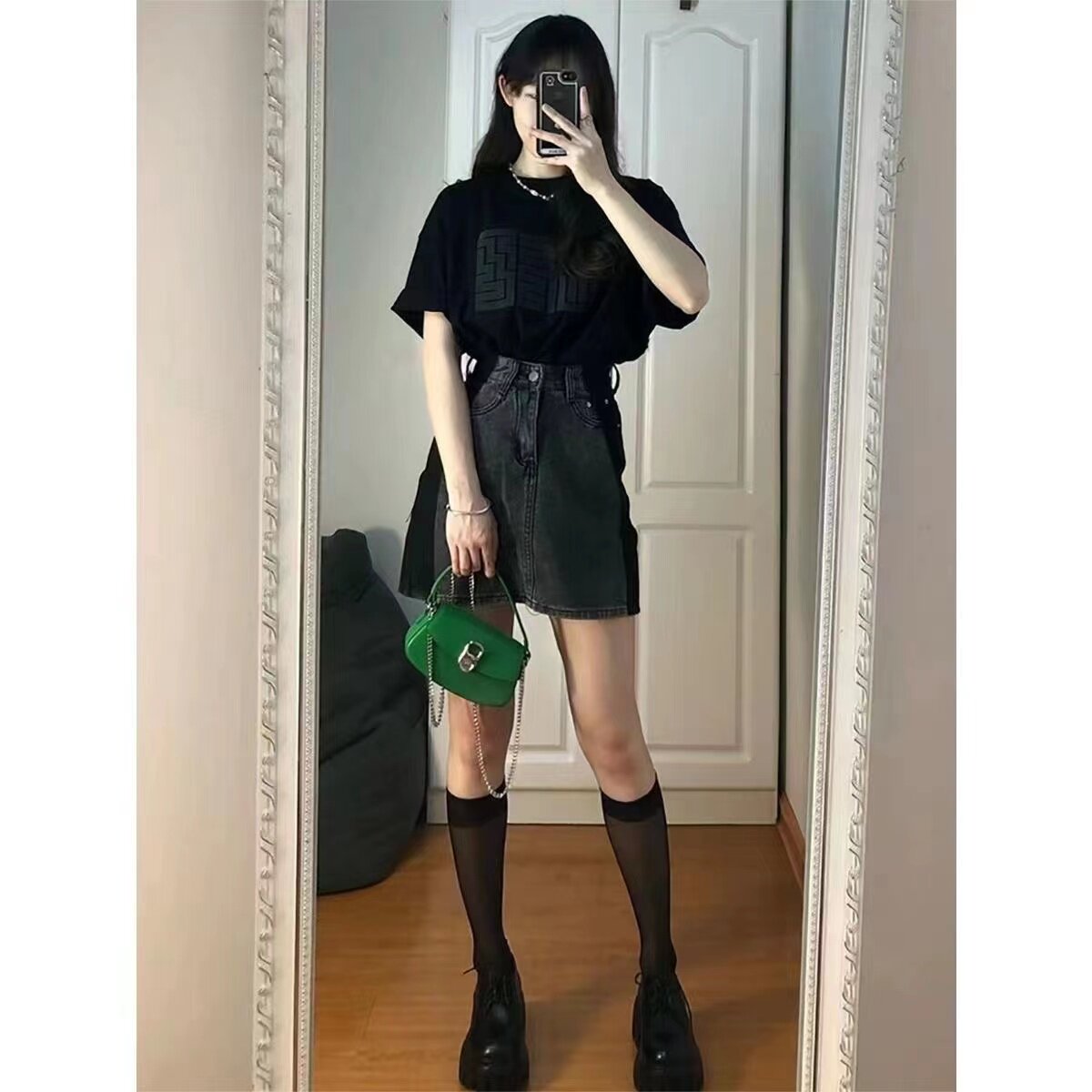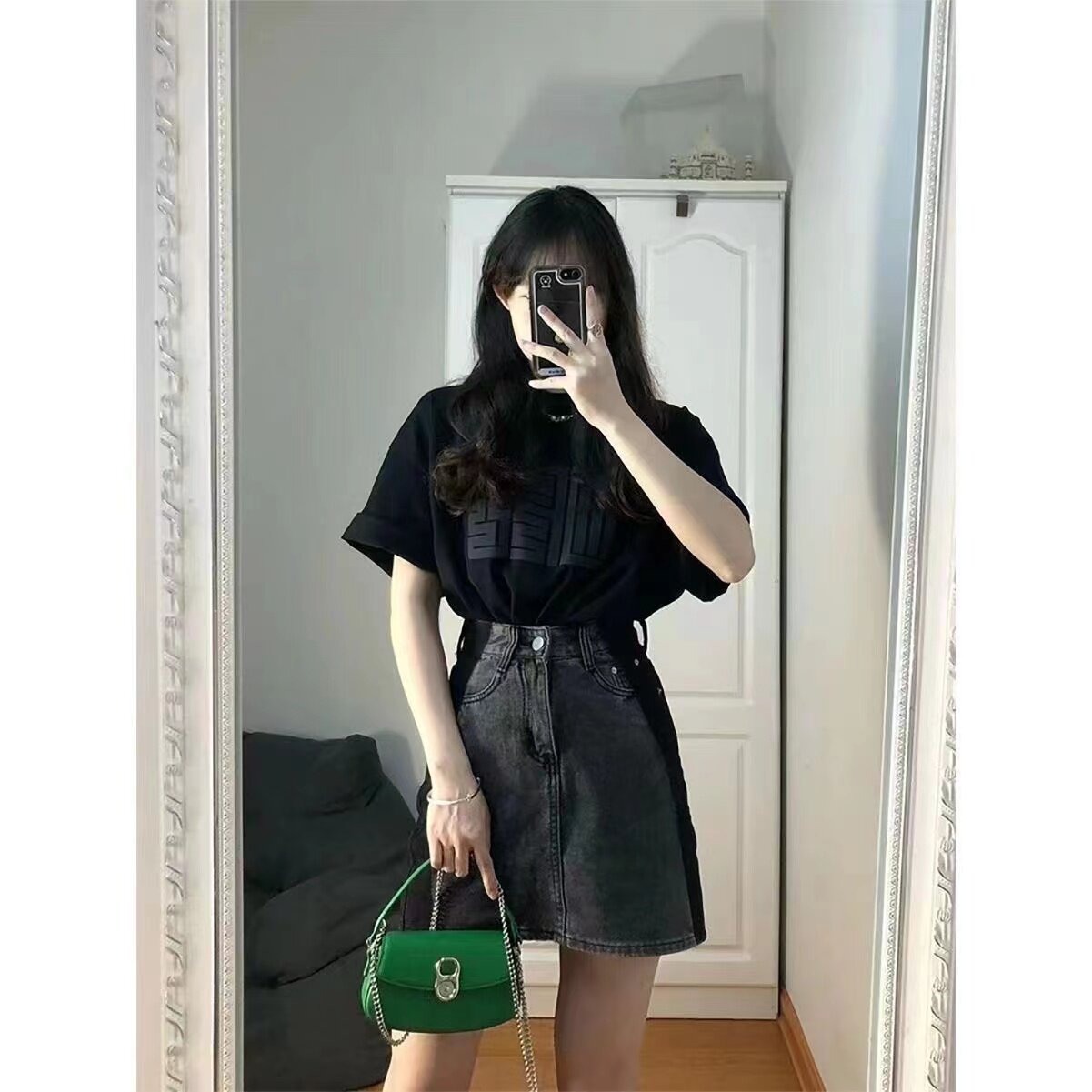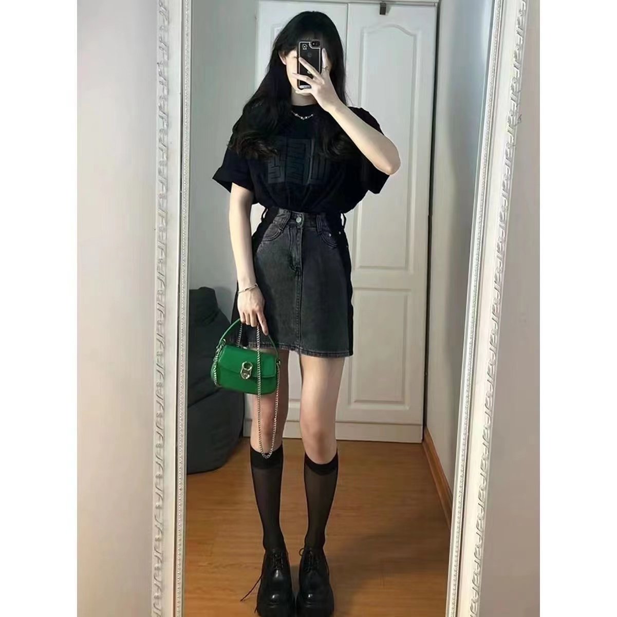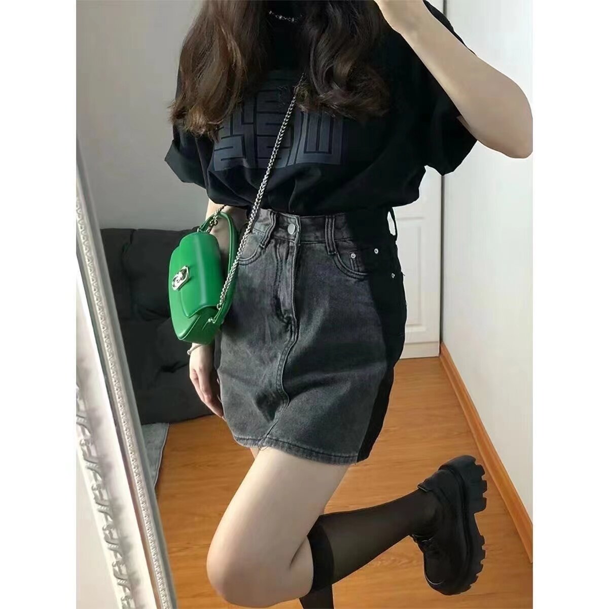 Летняя джинсовая юбка, для формы тела «груша», 2024 года, большой размер, высокая талия, А-силуэт, с акцентом на бедрах