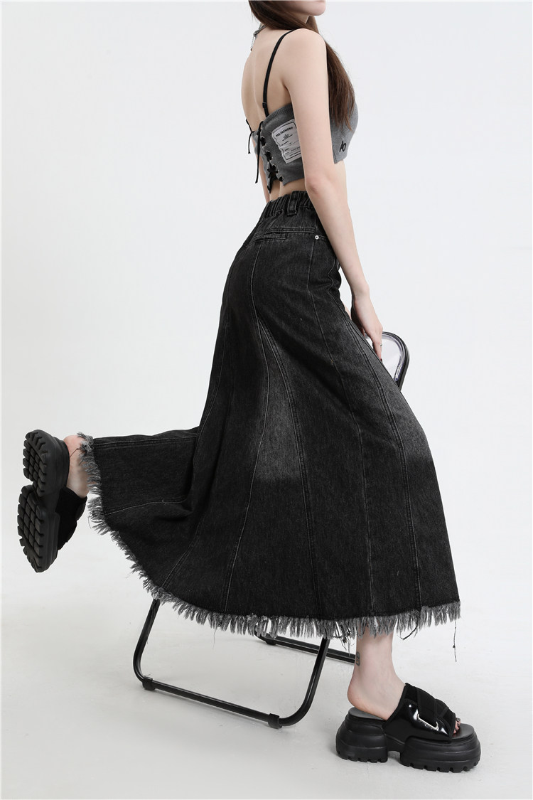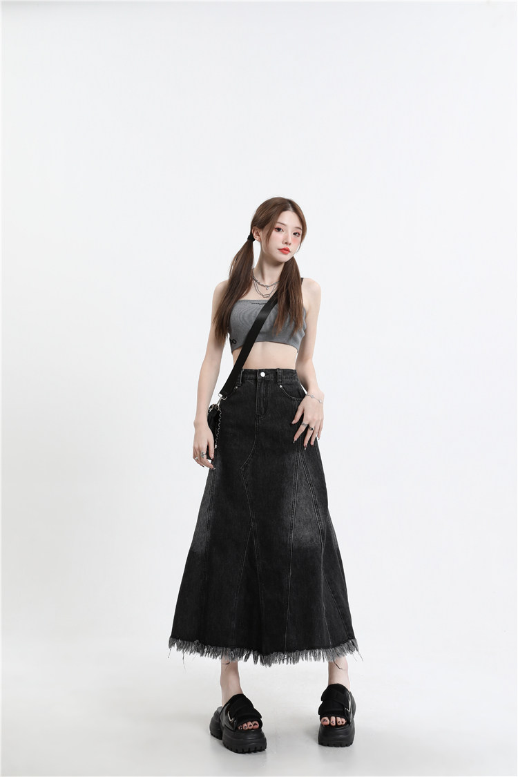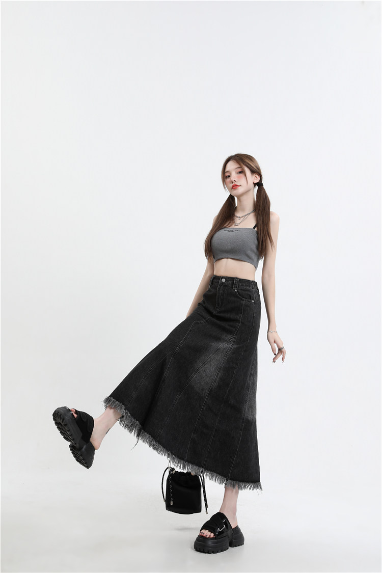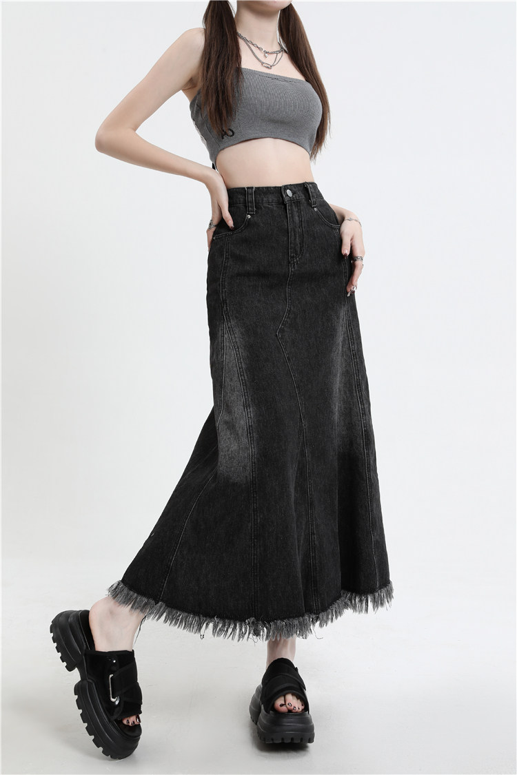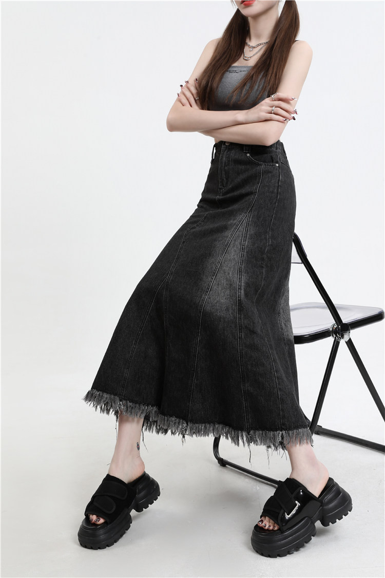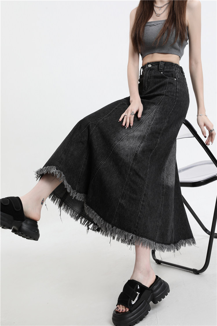 Осенняя демисезонная джинсовая юбка, летняя длинная юбка, высокая талия, для формы тела «груша», длина миди, А-силуэт
