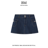 Джинсовая мини-юбка, поясная сумка, юбка, в американском стиле, высокая талия, А-силуэт
