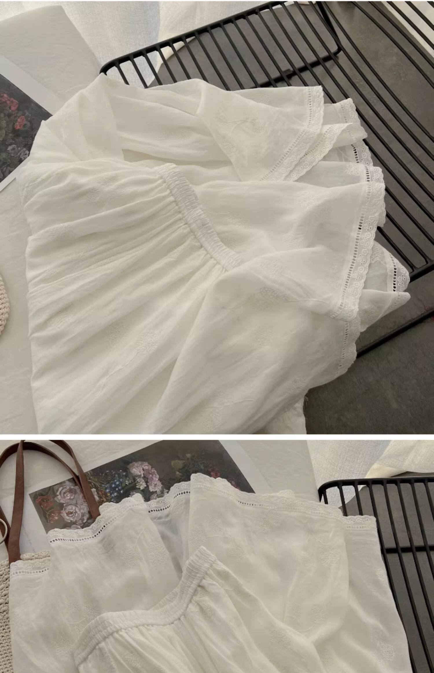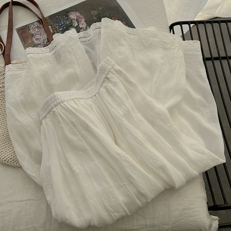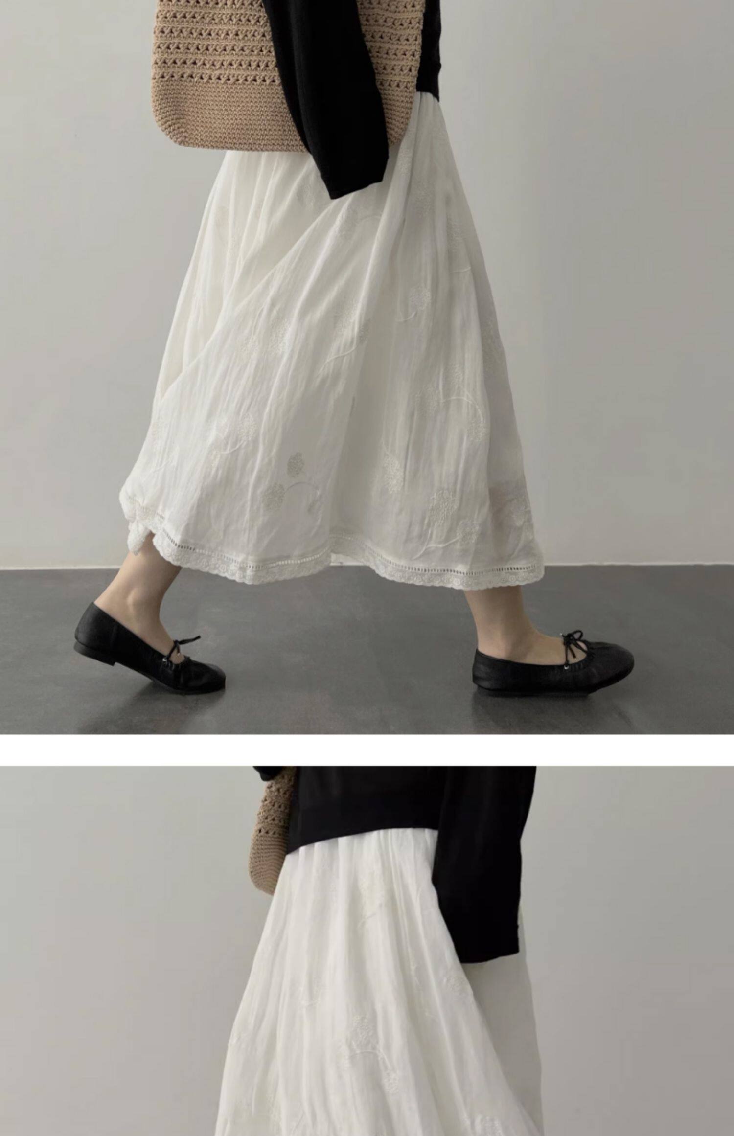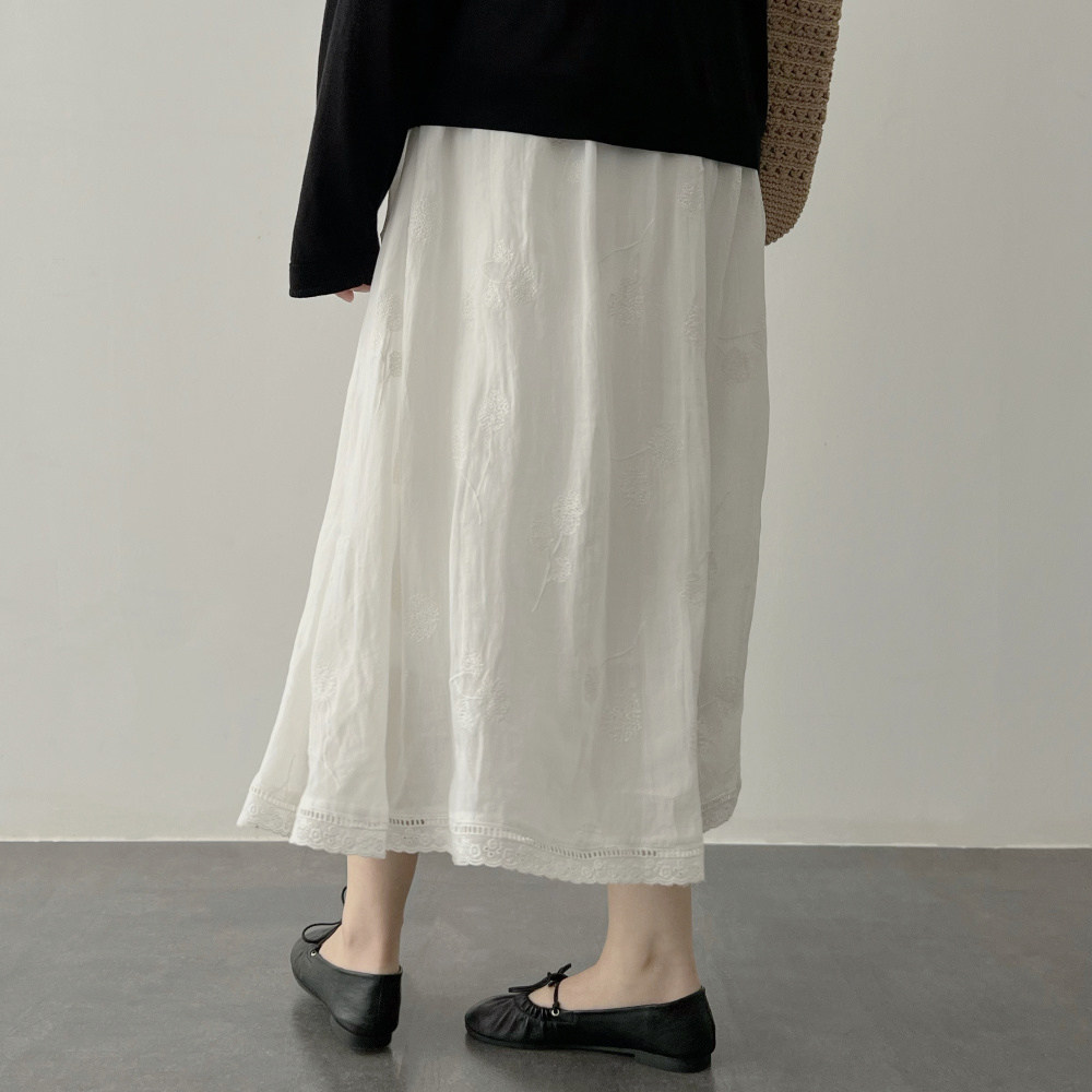 Ретро белая летняя длинная юбка, французский стиль, из хлопка и льна, с вышивкой, А-силуэт, подходит для подростков, яркий броский стиль, средней длины