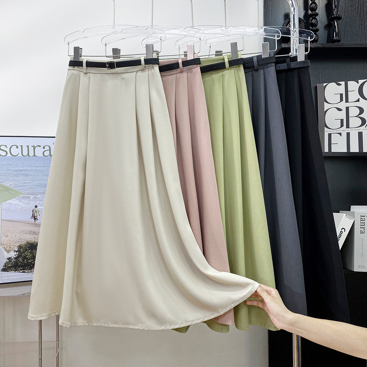Японский костюм, летняя длинная юбка в складку для отдыха, плиссированная юбка, средней длины, А-силуэт
