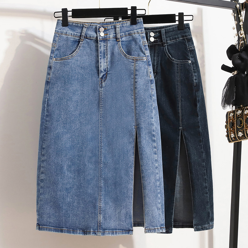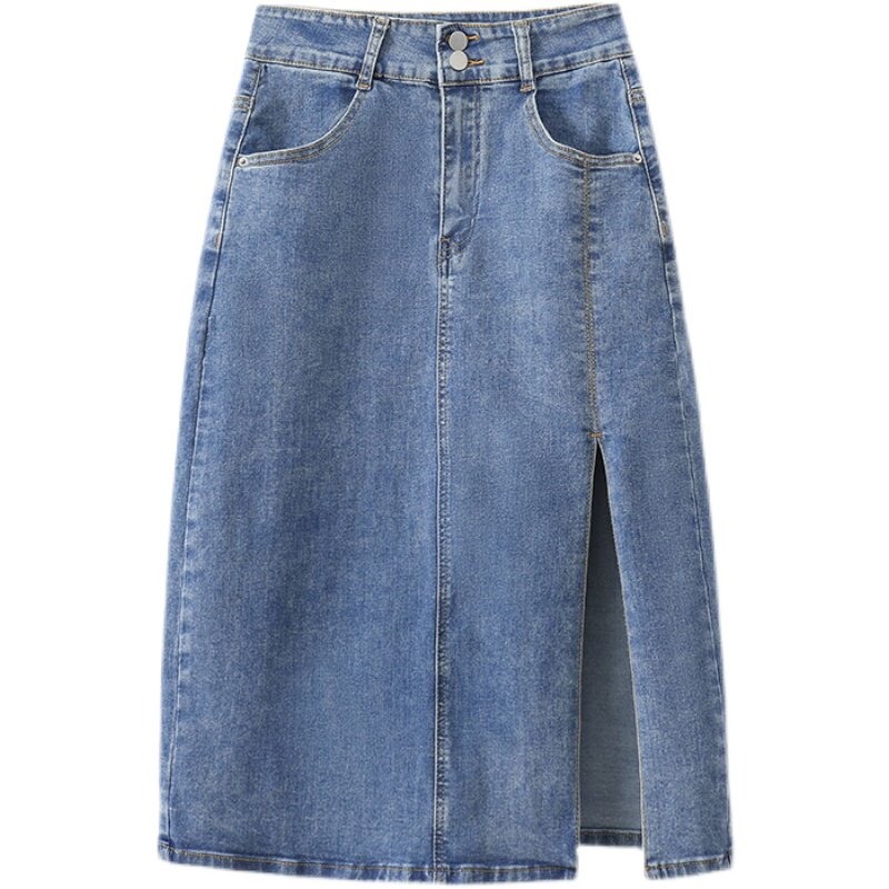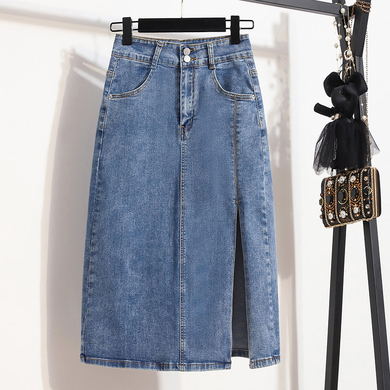 Эластичная джинсовая длинная летняя юбка, большой размер, средней длины, по фигуре, А-силуэт