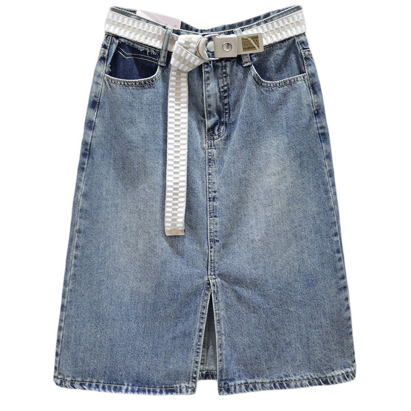 Длинная джинсовая юбка, высокая талия, А-силуэт, с акцентом на бедрах