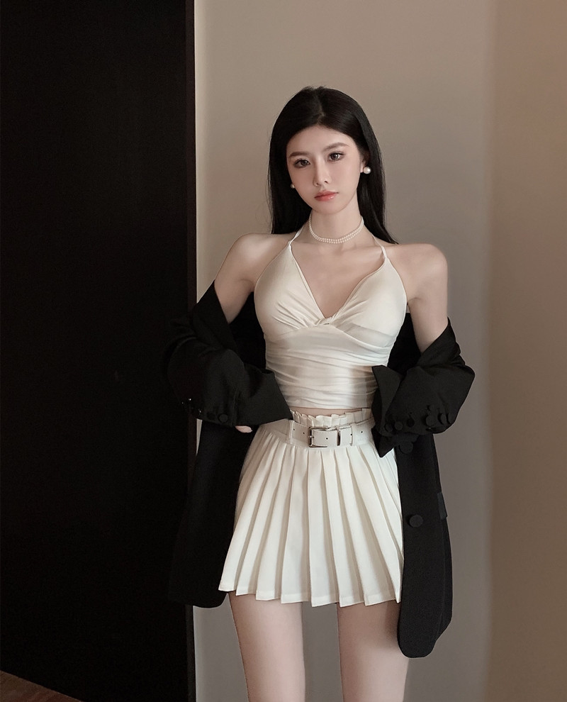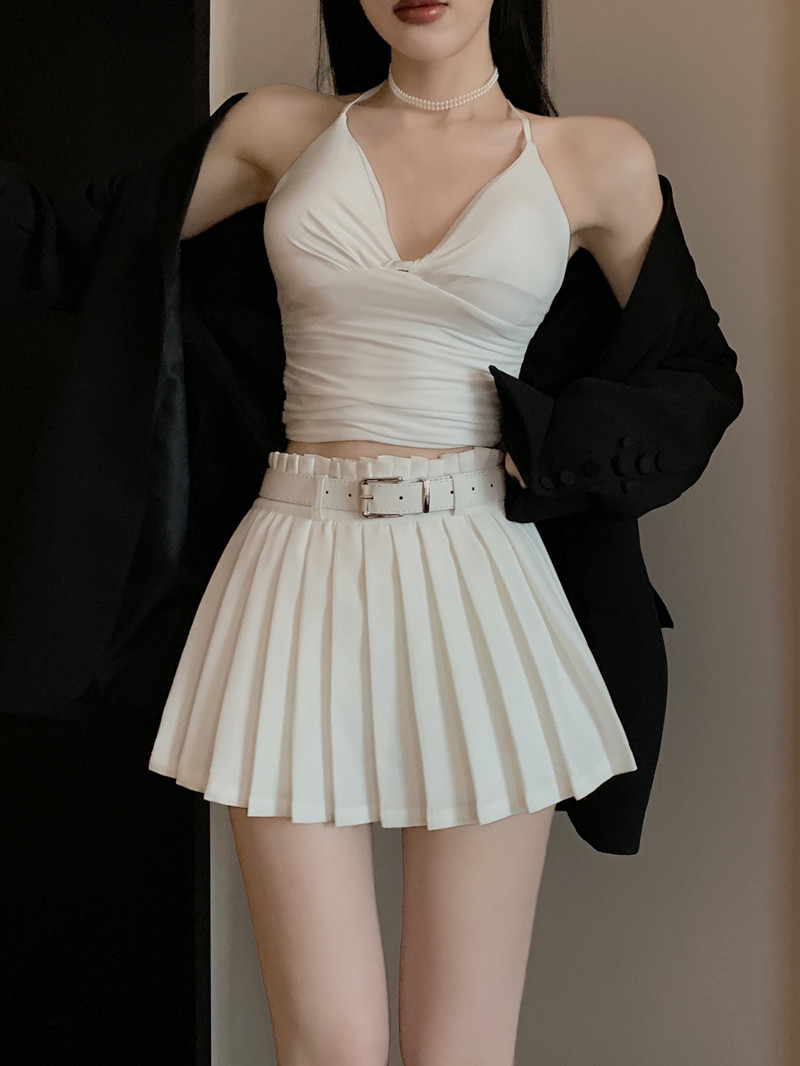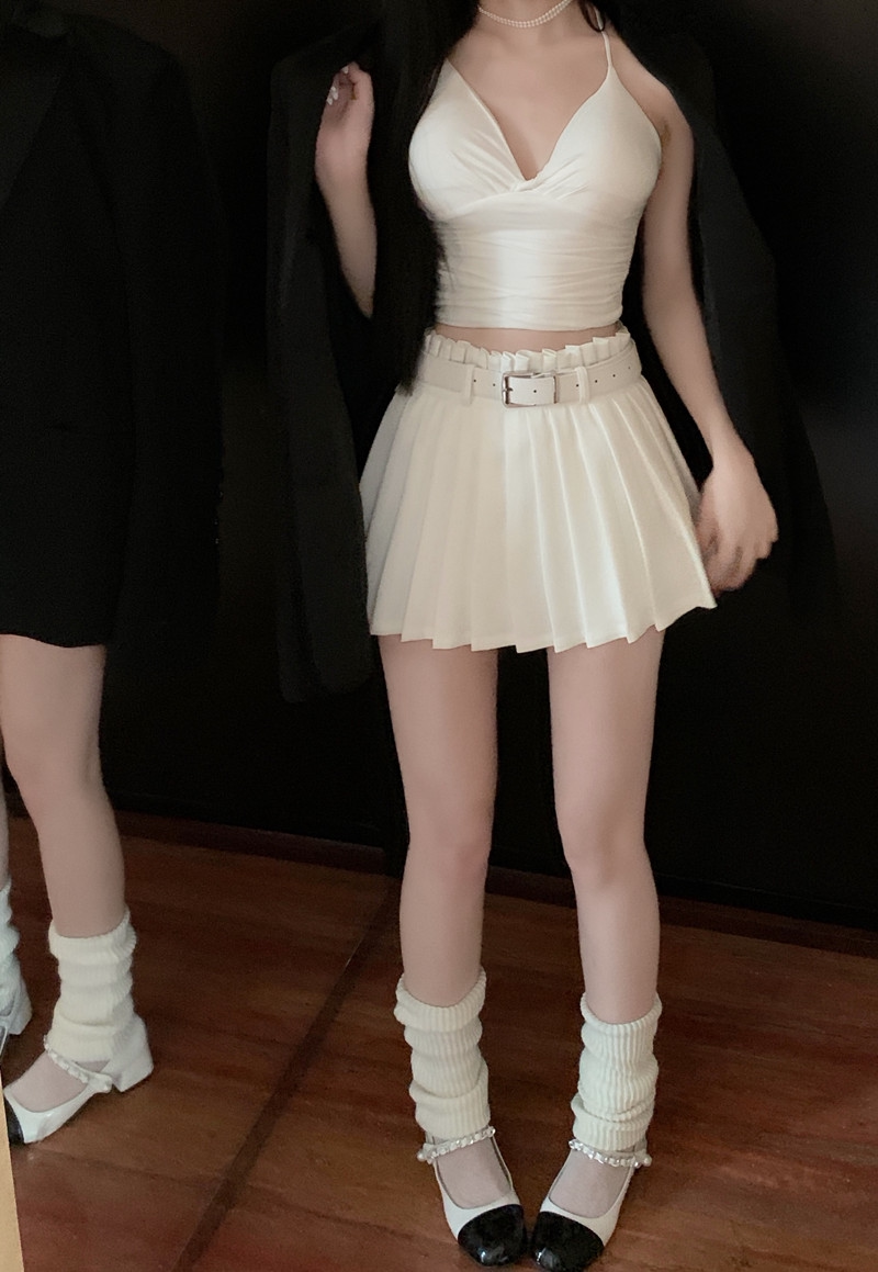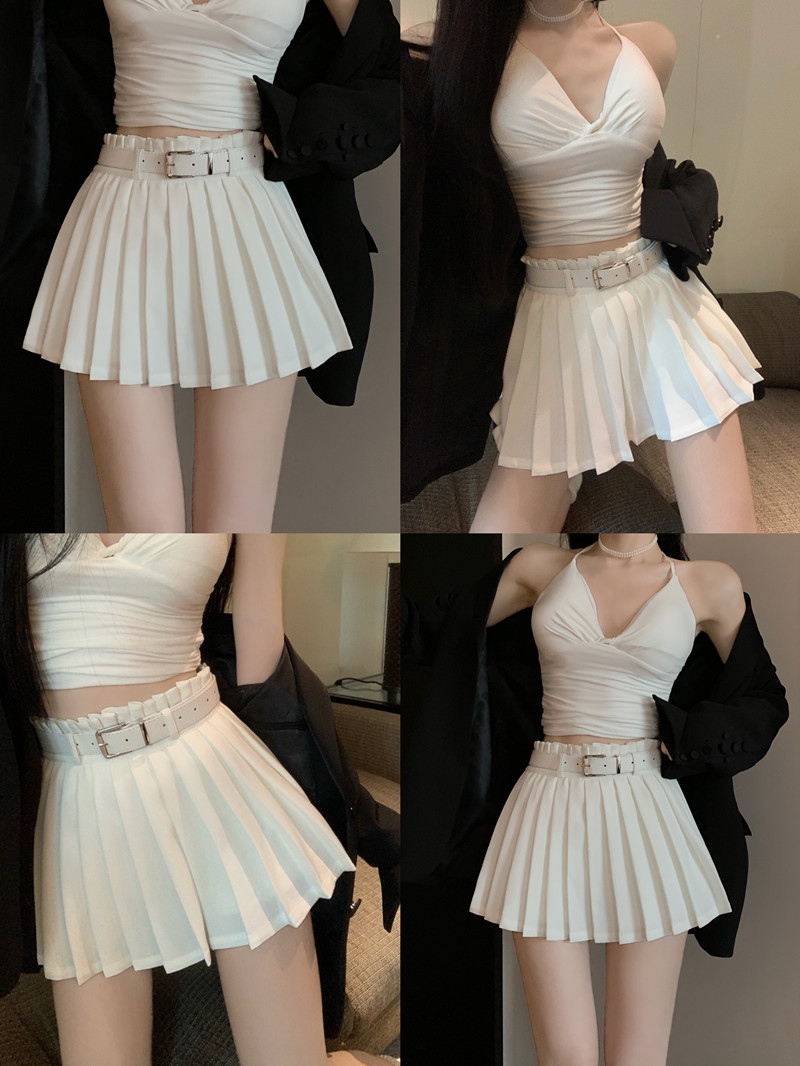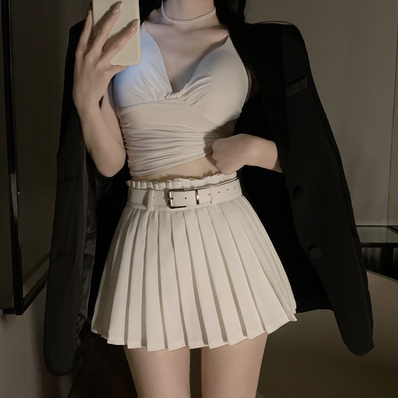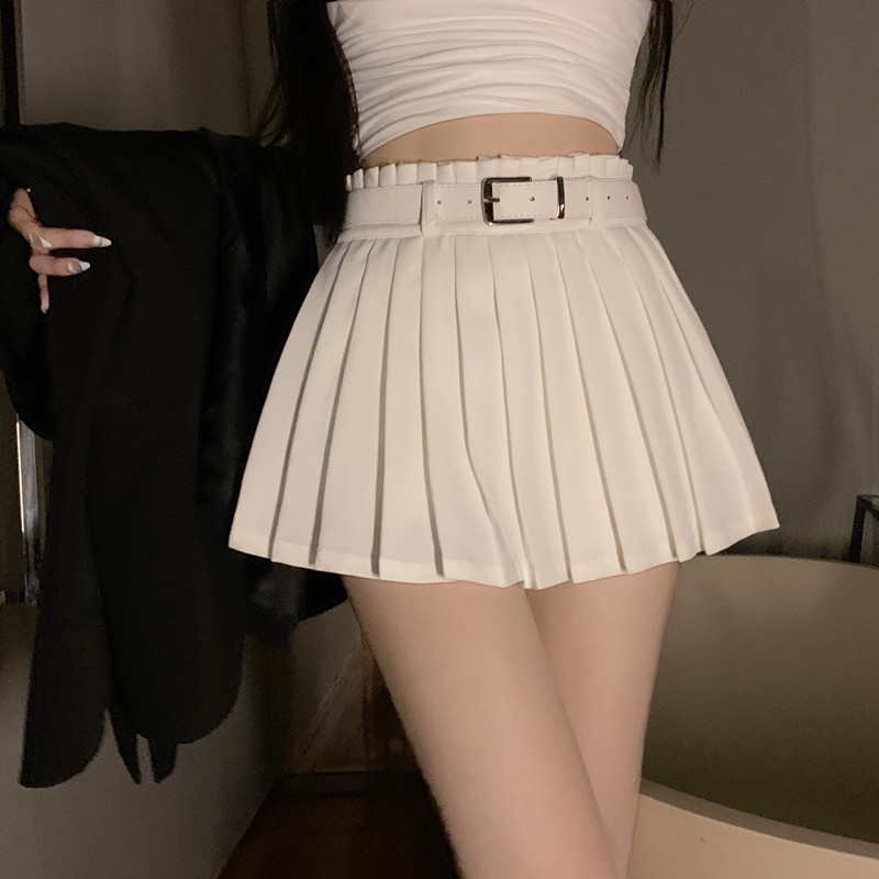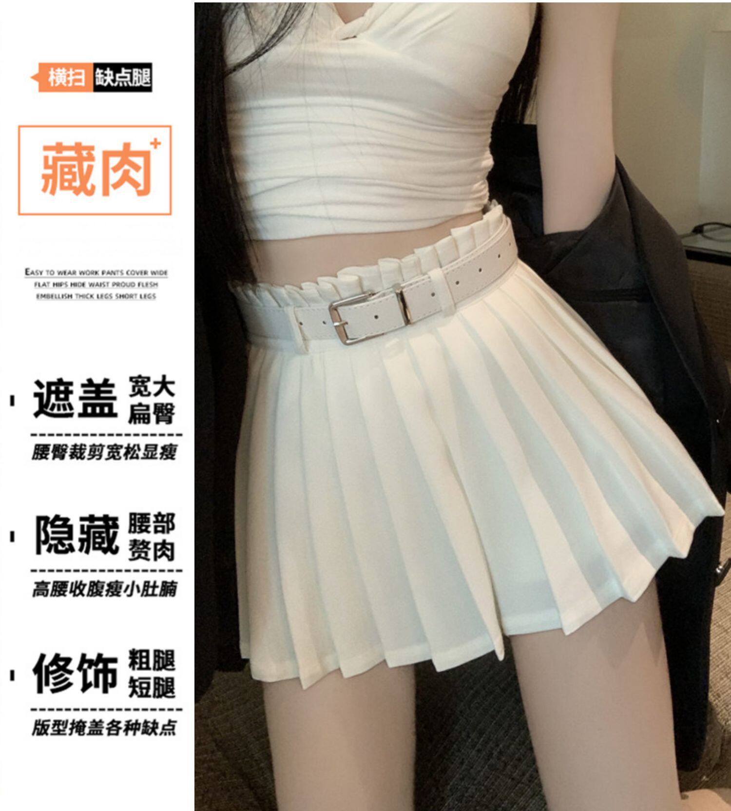 Белое защитное белье, весенняя юбка в складку, мини-юбка, приталенные сексуальные штаны, большой размер, плиссированная юбка