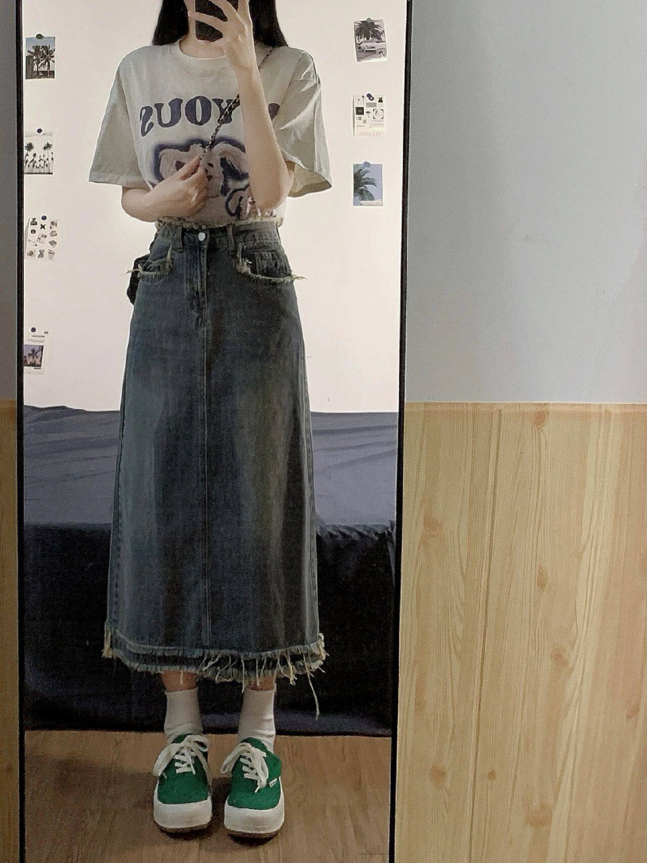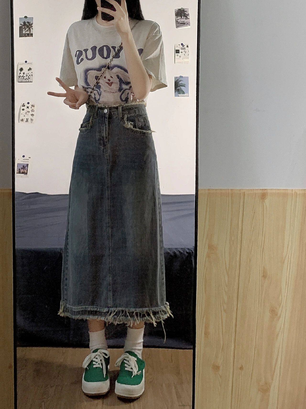 Ретро осенняя приталенная длинная джинсовая юбка, большой размер, высокая талия, средней длины, А-силуэт