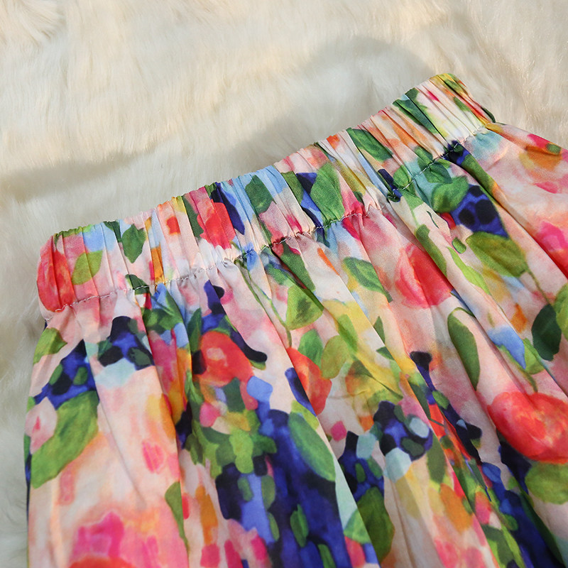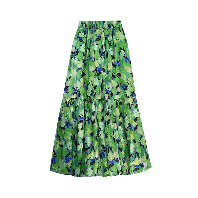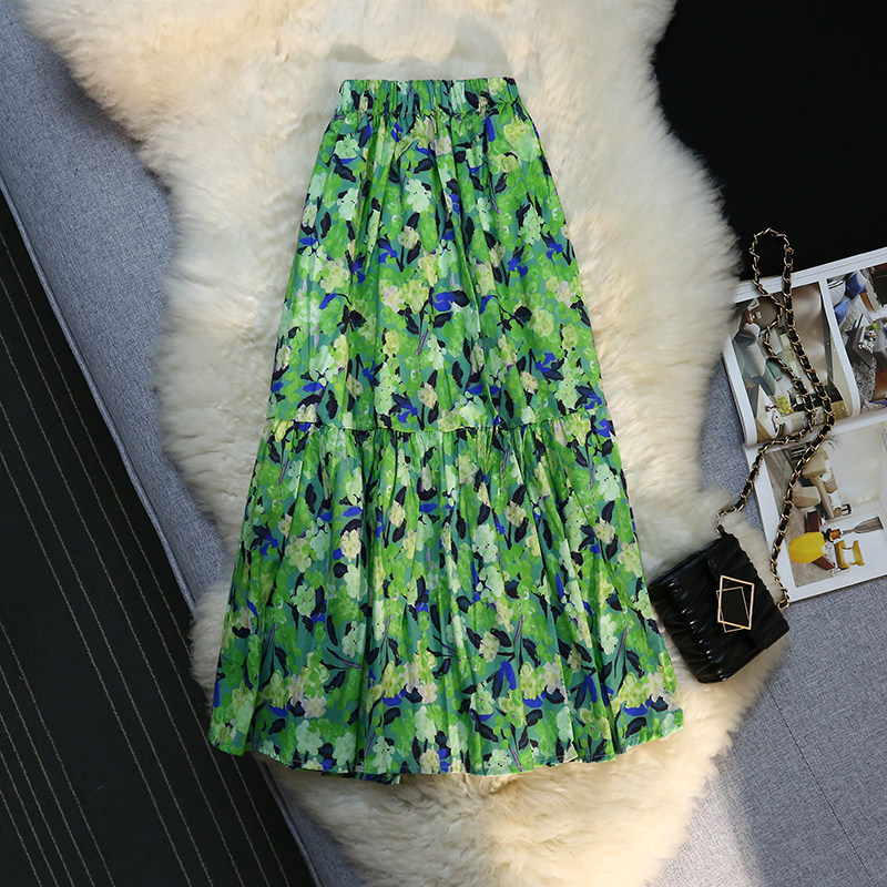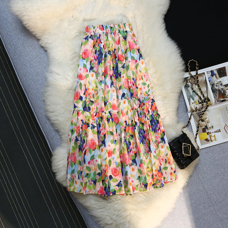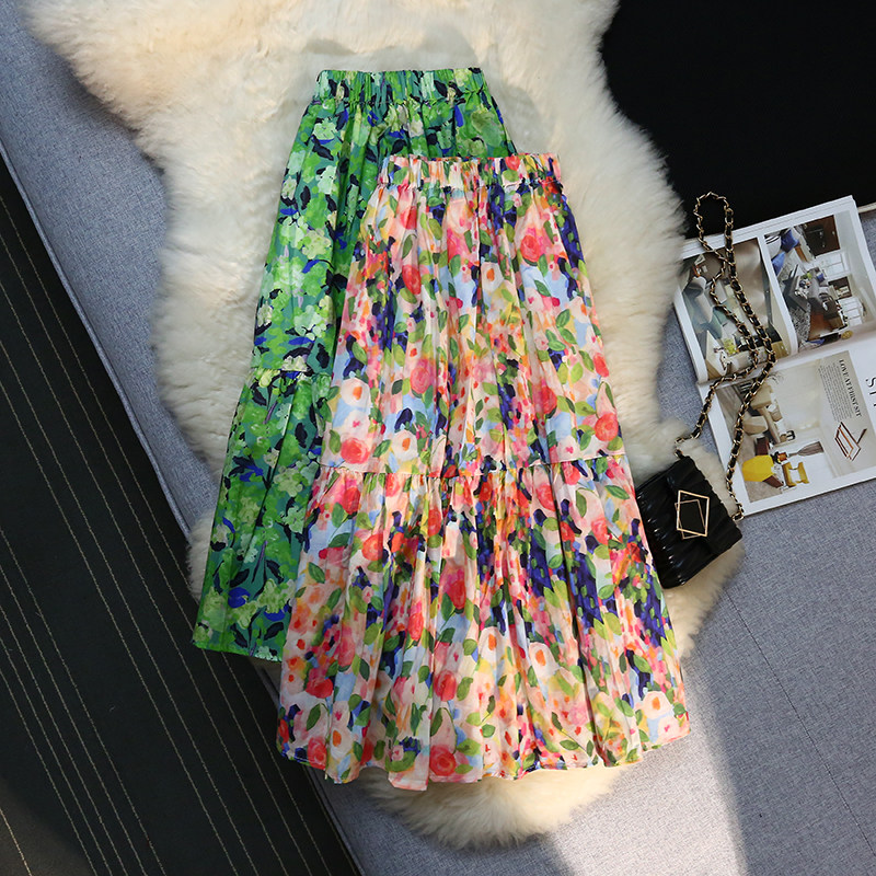 Милое косметическое масло, ретро длинная юбка, французский стиль, цветочный принт, А-силуэт, в цветочек, средней длины