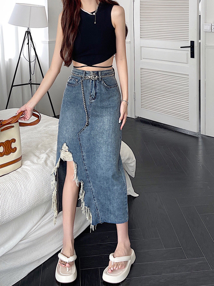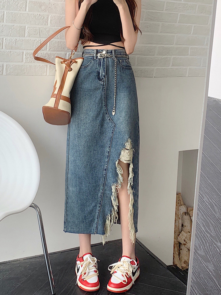 Весенняя приталенная длинная джинсовая юбка, большой размер, 2025 года, высокая талия, средней длины, А-силуэт
