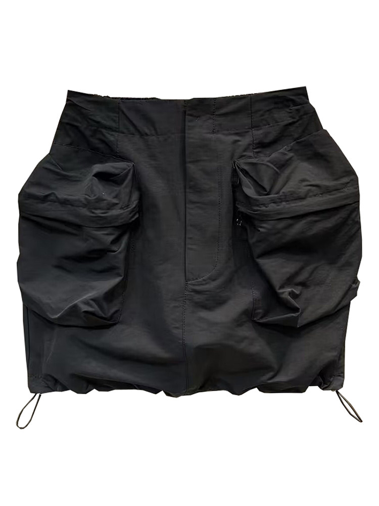 Черная кожаная летняя юбка, ретро мини-юбка, в американском стиле, на шнурках, высокая талия, свободный крой