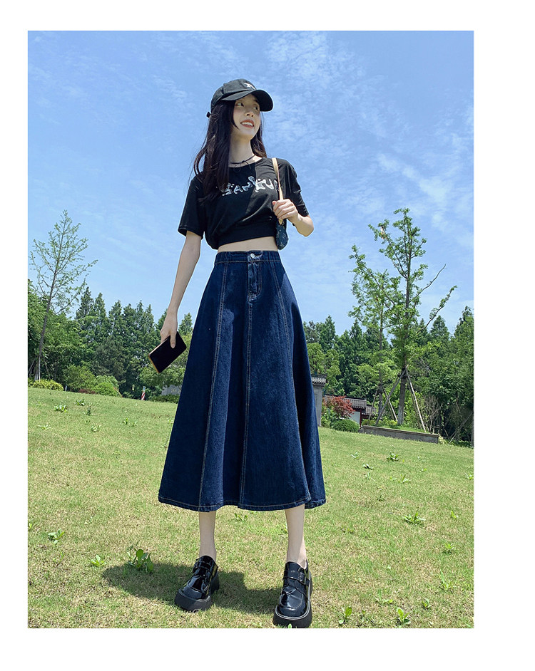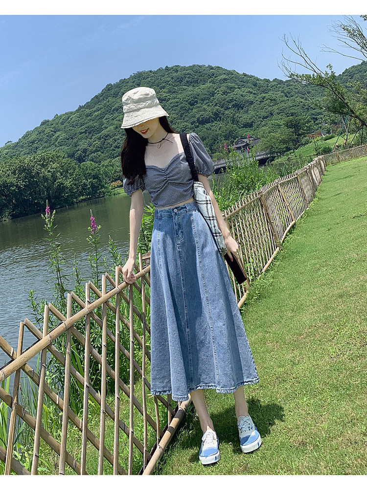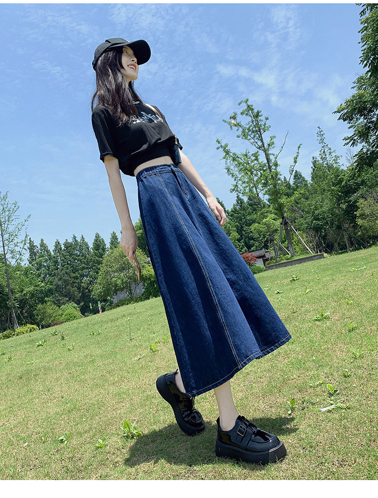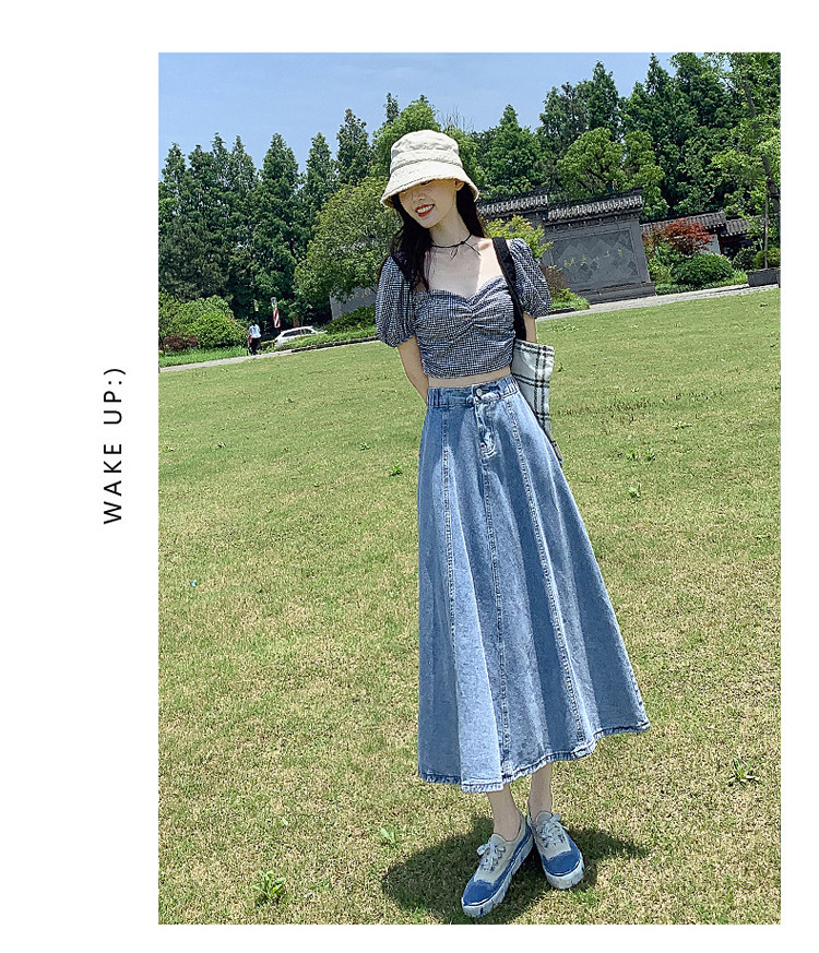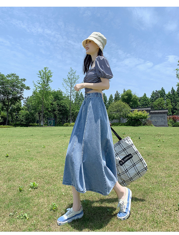 Джинсовая летняя юбка, высокая талия, А-силуэт
