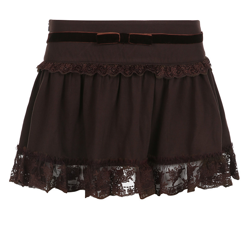 Классическая ретро коричневая кружевная юбка, А-силуэт, юбка-пачка