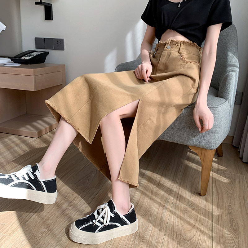 Хаки летняя длинная джинсовая юбка, приталенная длинная юбка, средней длины, свободный прямой крой, А-силуэт, длина макси