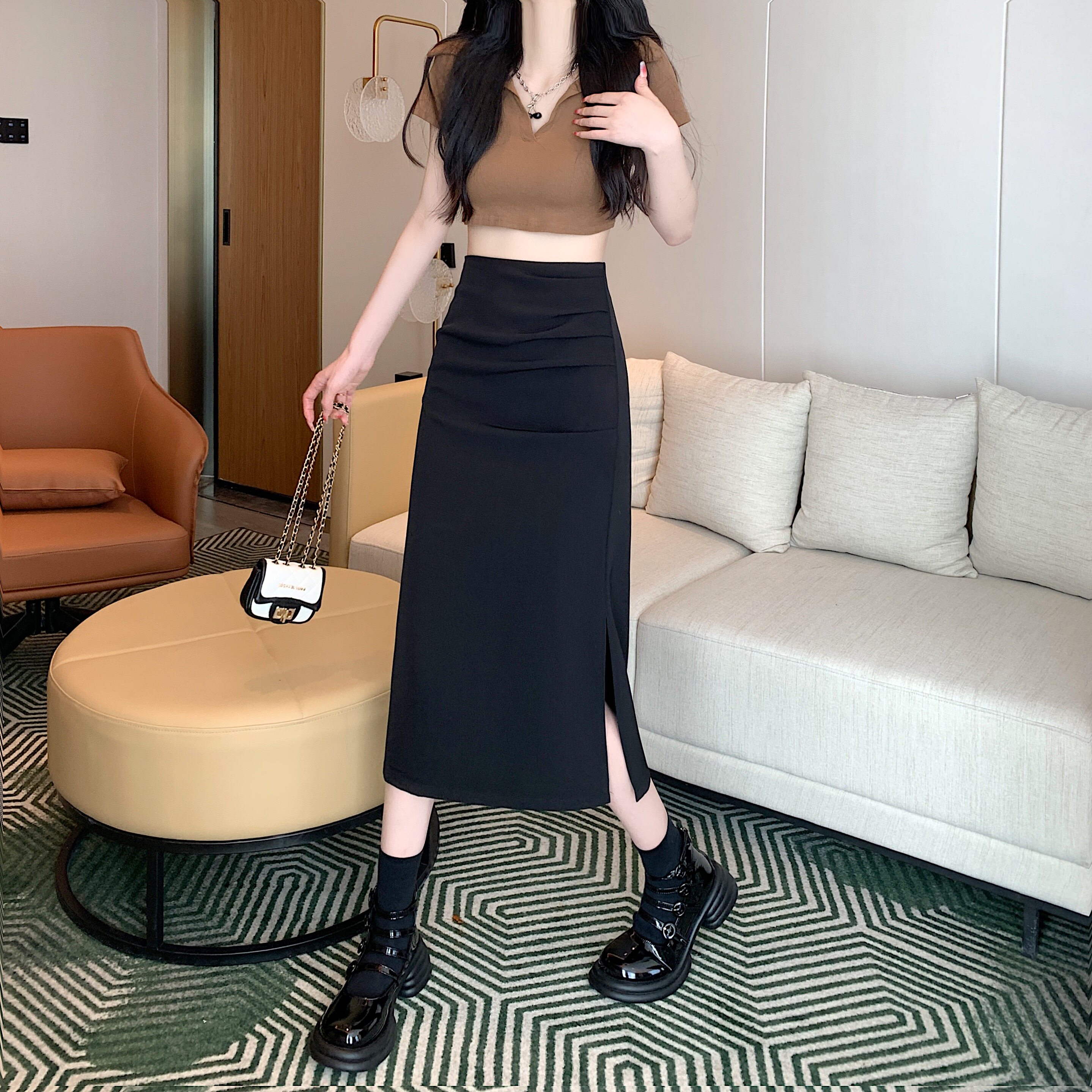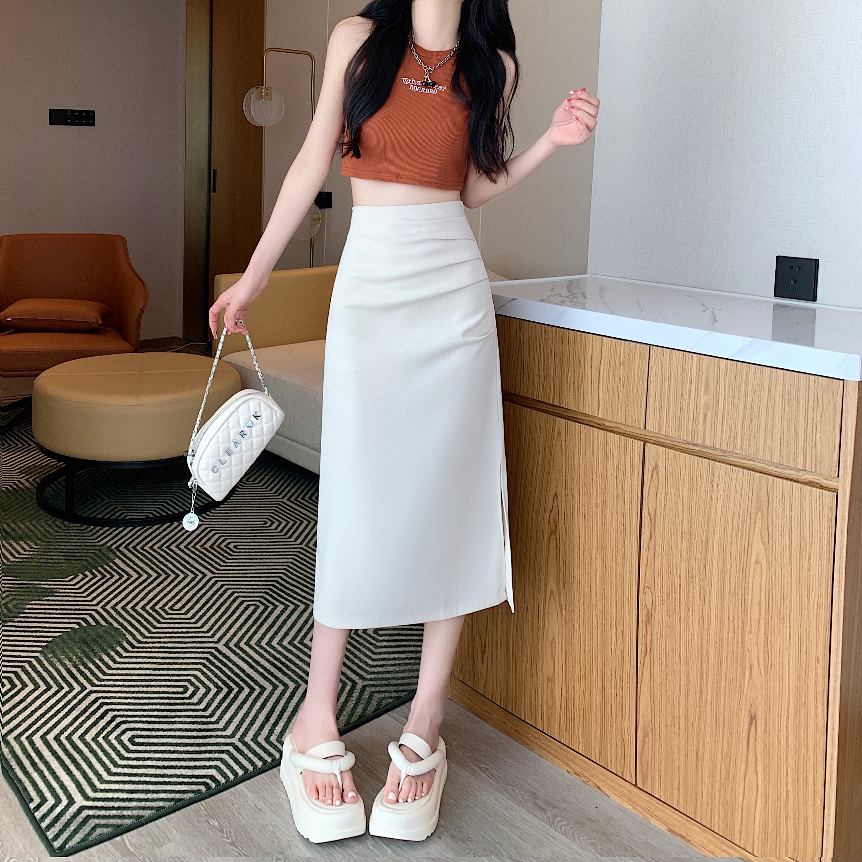 Летняя длинная юбка, средней длины, высокая талия, А-силуэт, подходит для подростков, по фигуре