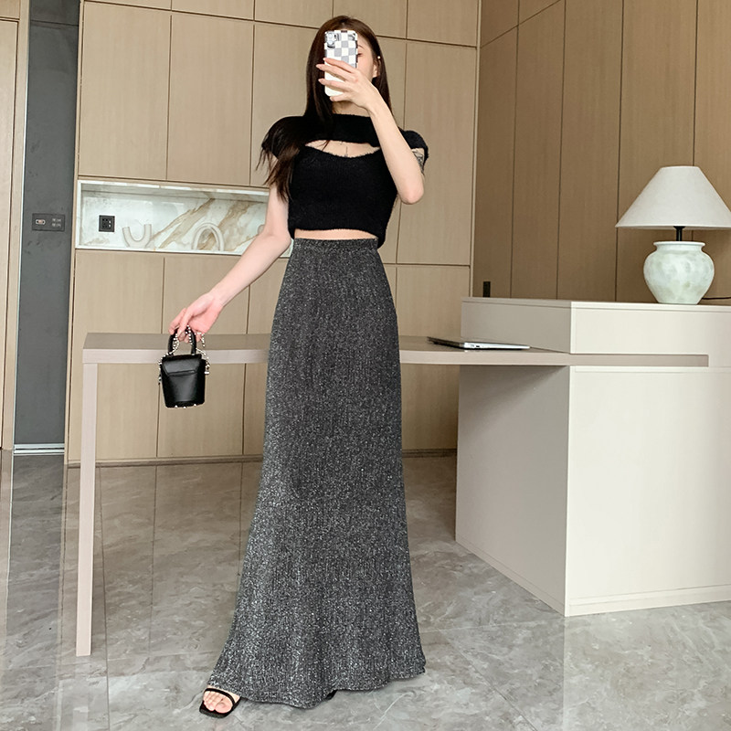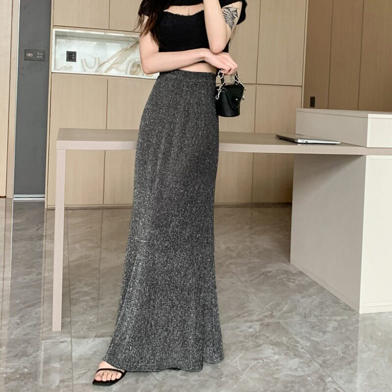 Черная летняя длинная приталенная длинная юбка, рыбий хвост, средней длины, А-силуэт