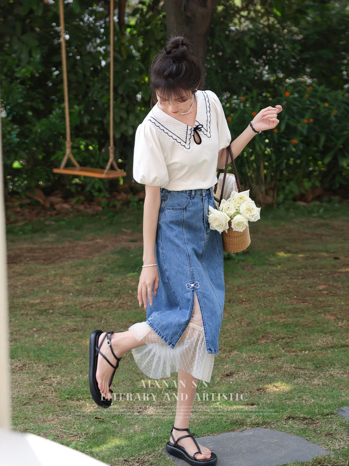 鹿向南 Летняя джинсовая юбка, коллекция 2023, яркий броский стиль, высокая талия