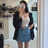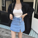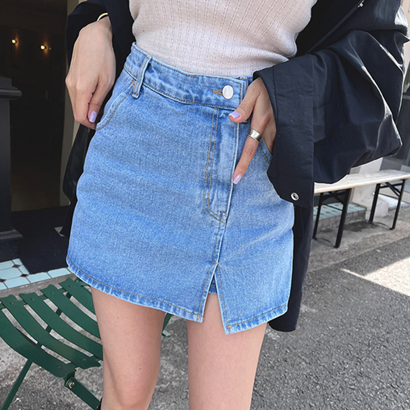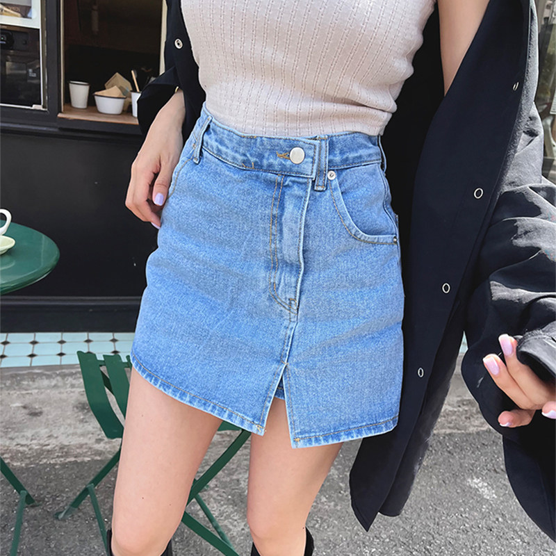 Летняя ретро приталенная дизайнерская джинсовая юбка, в корейском стиле, высокая талия, с акцентом на бедрах