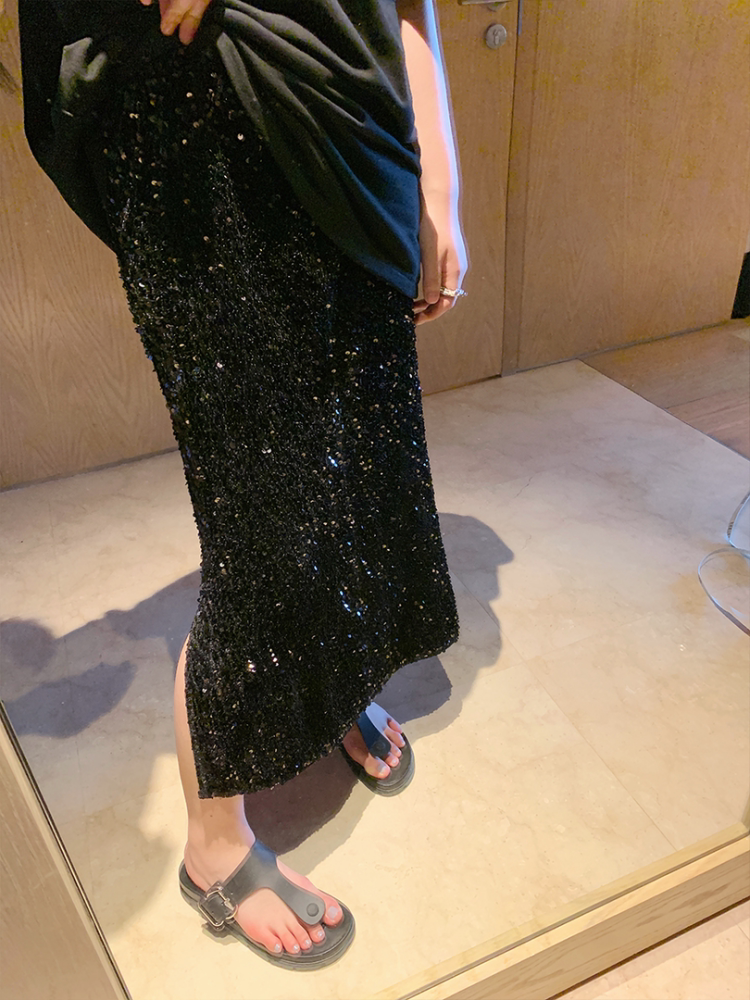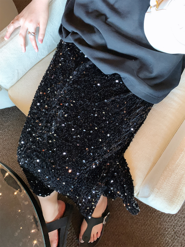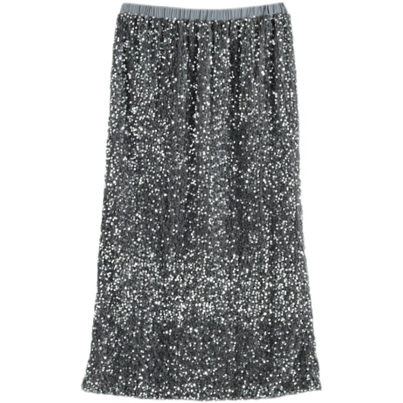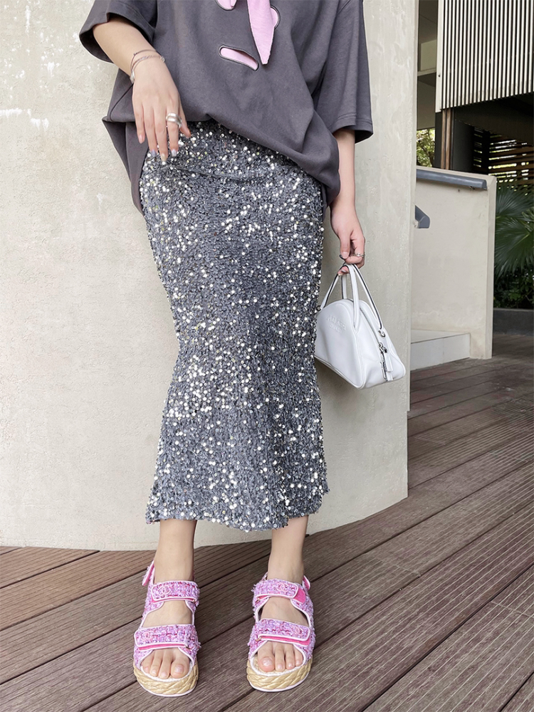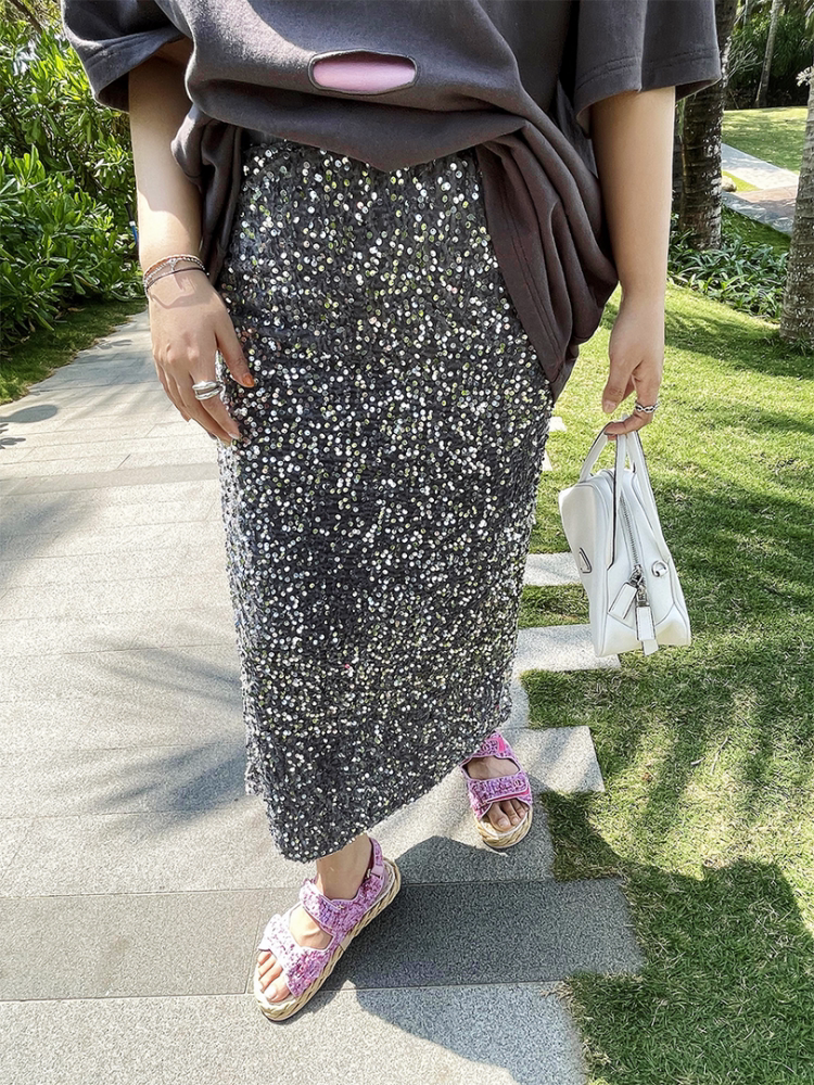 Длинные блестки для ногтей, летняя юбка, большой размер, средней длины, городской стиль, по фигуре