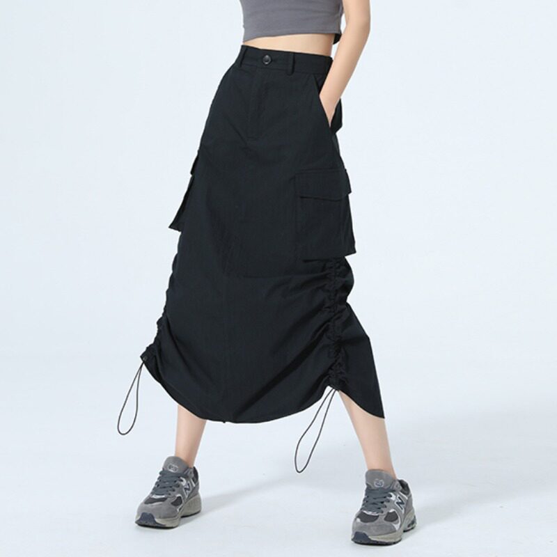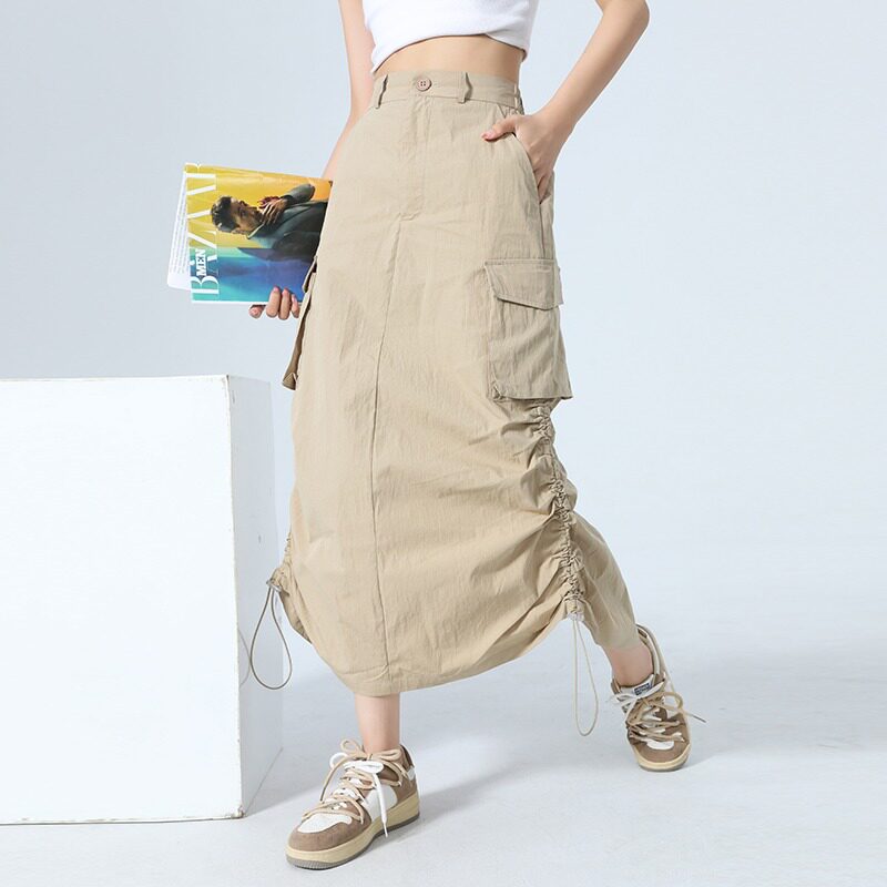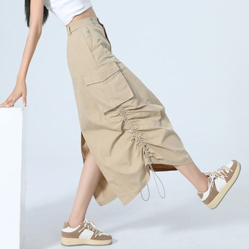 Ретро летняя японская приталенная длинная юбка, в американском стиле, А-силуэт, на шнурках, средней длины