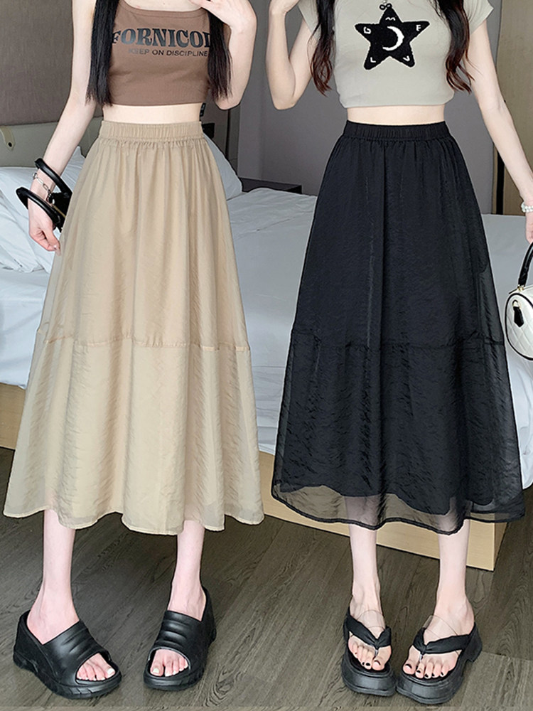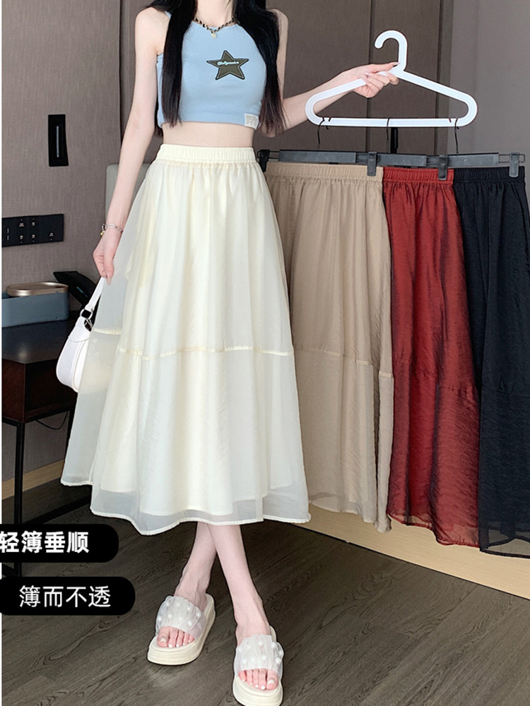 Приталенная длинная летняя юбка в складку, высокая талия, длина миди, А-силуэт