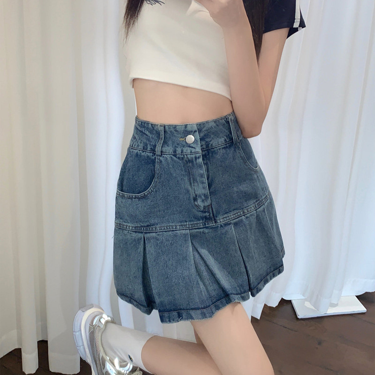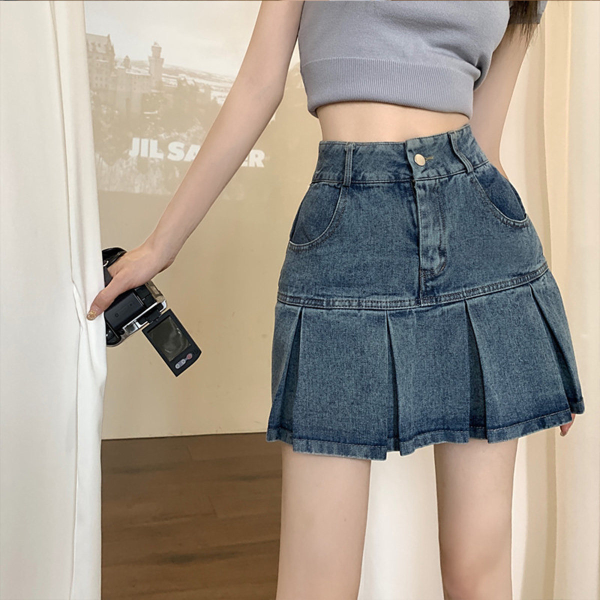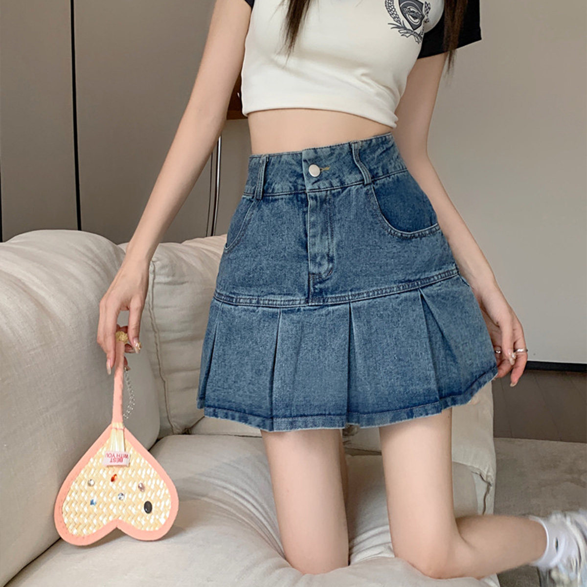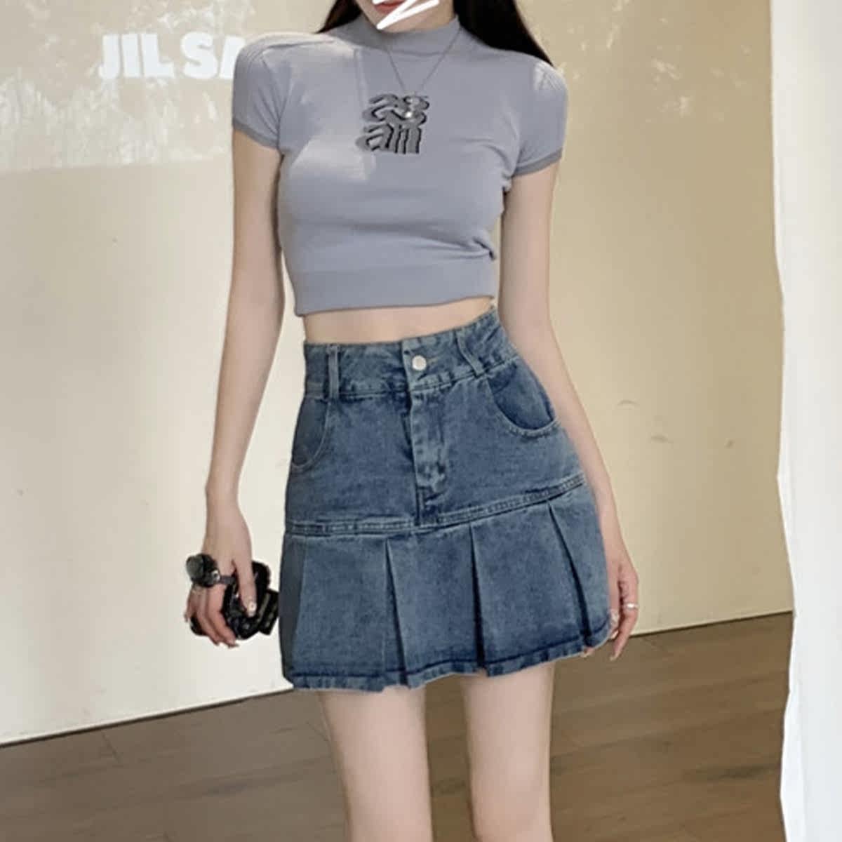 Летняя джинсовая юбка, дизайнерская юбка в складку, тренд сезона, А-силуэт