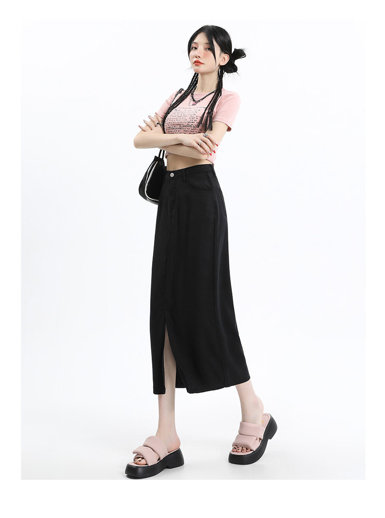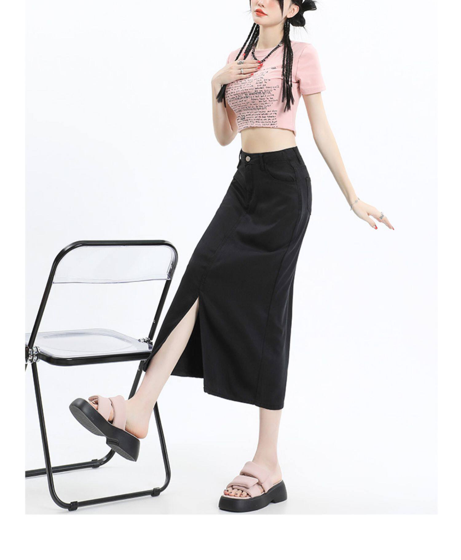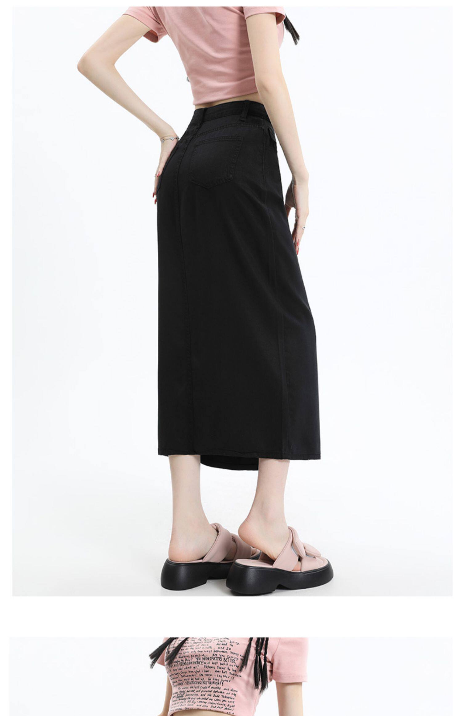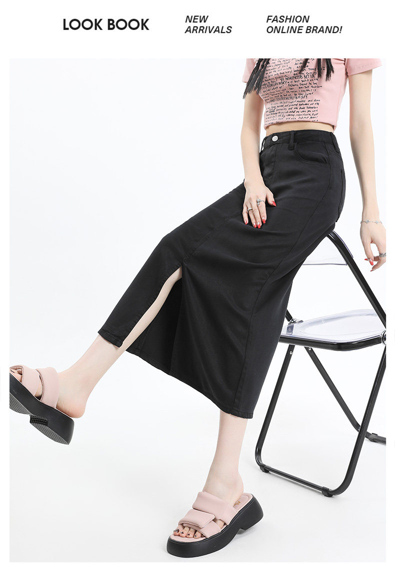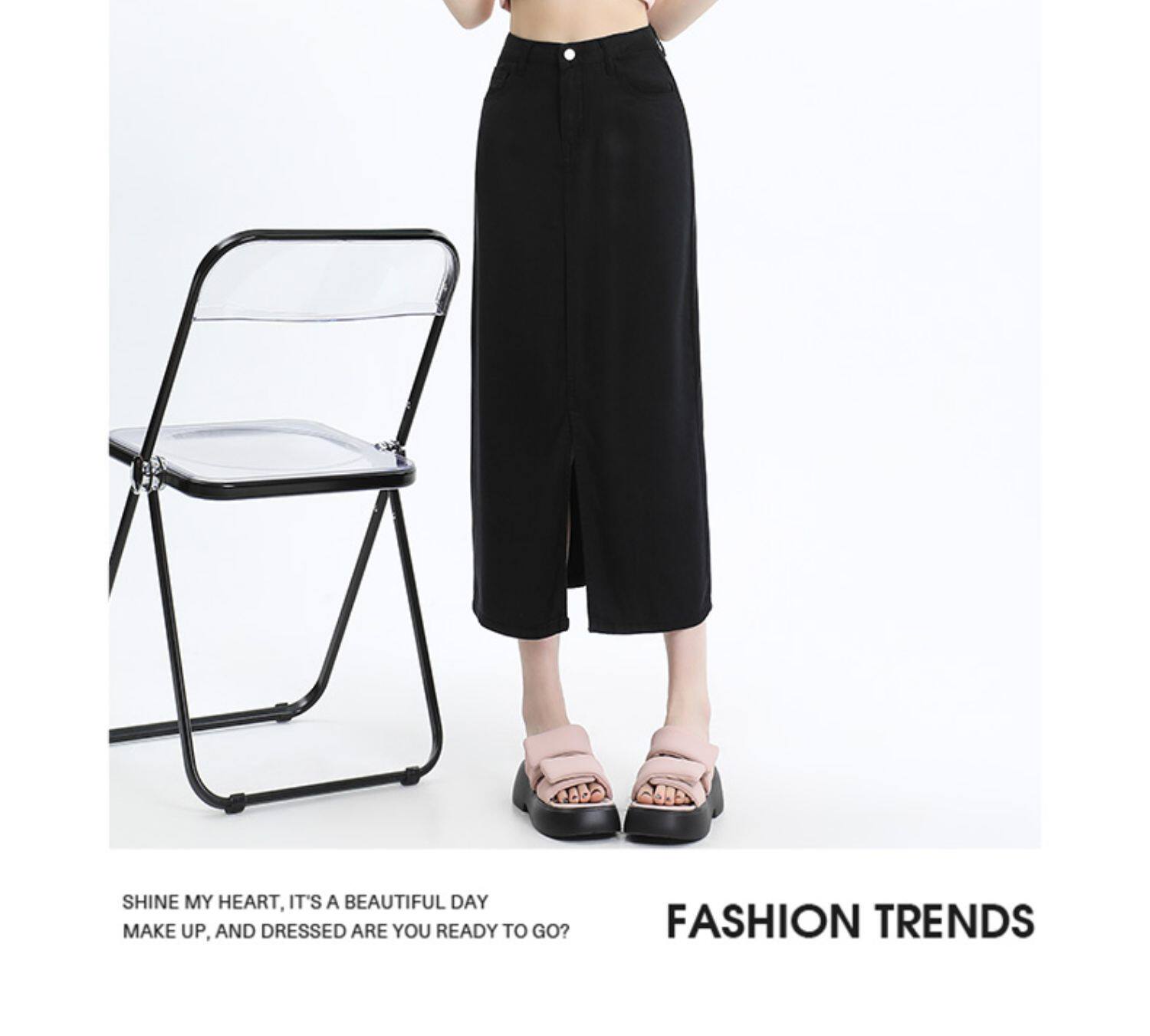 Черная джинсовая летняя шелковая юбка, высокая талия, длина миди, А-силуэт