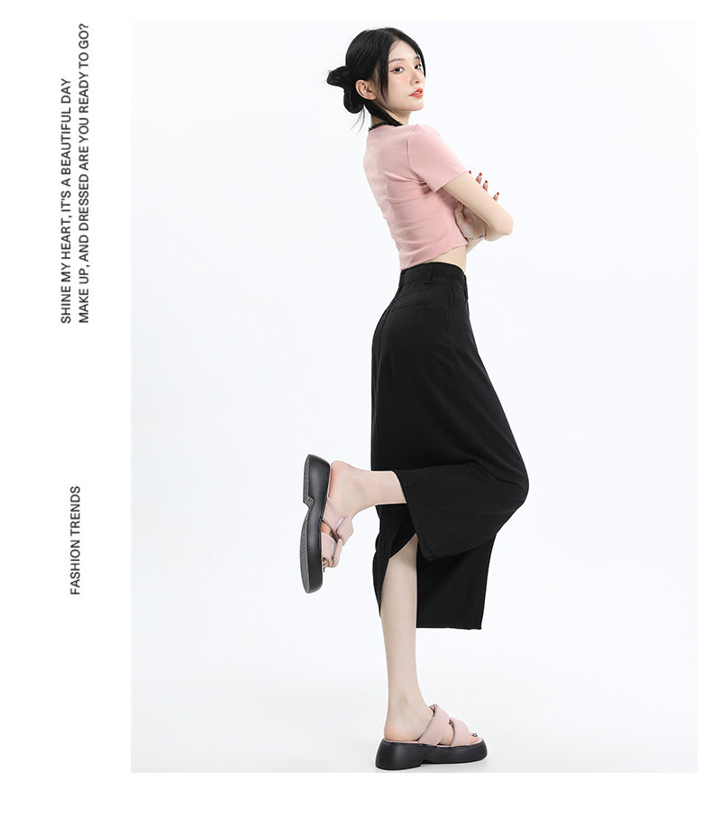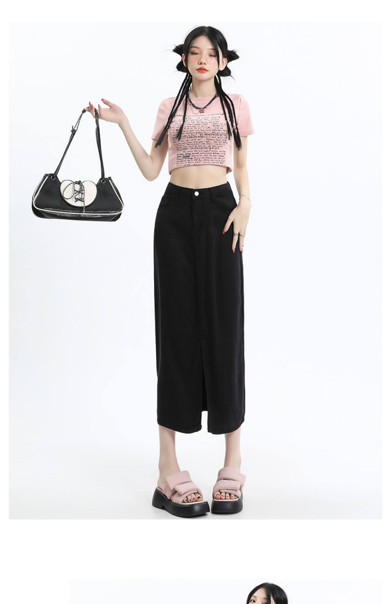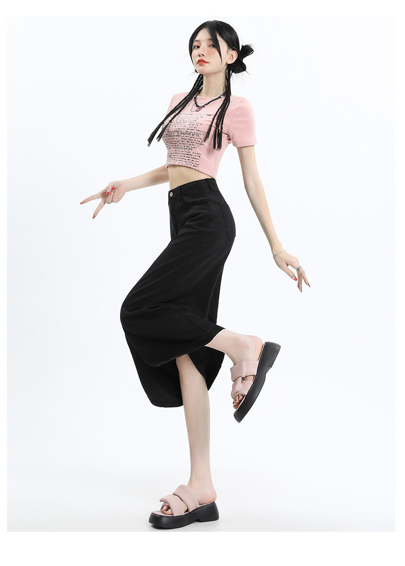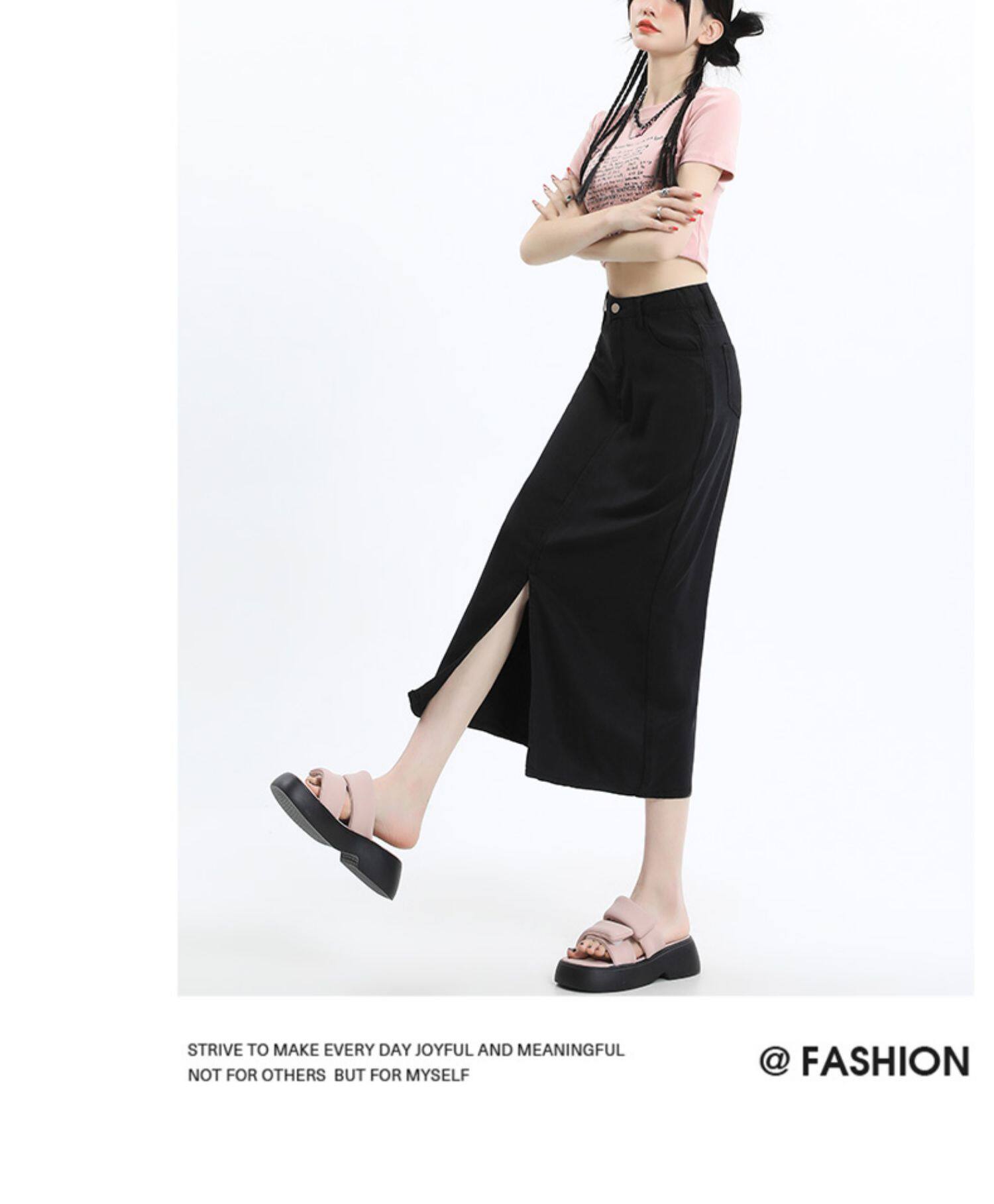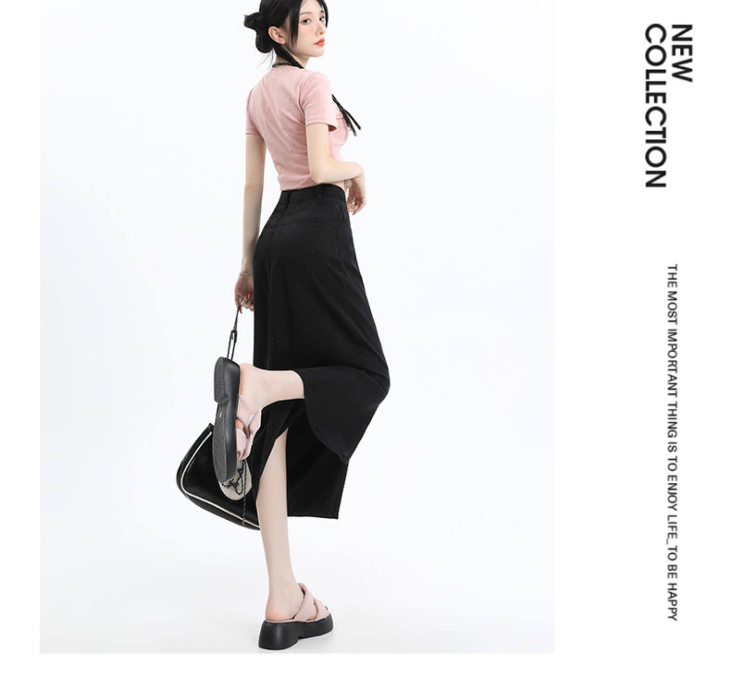 Черная джинсовая летняя шелковая юбка, высокая талия, длина миди, А-силуэт