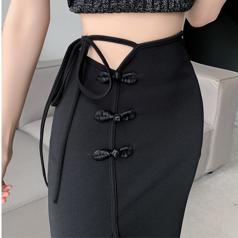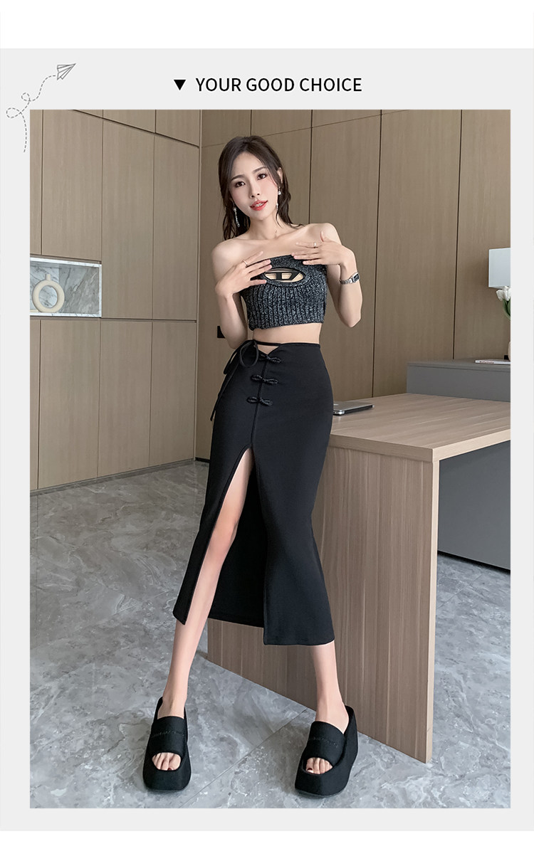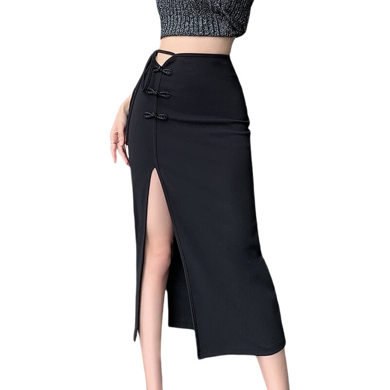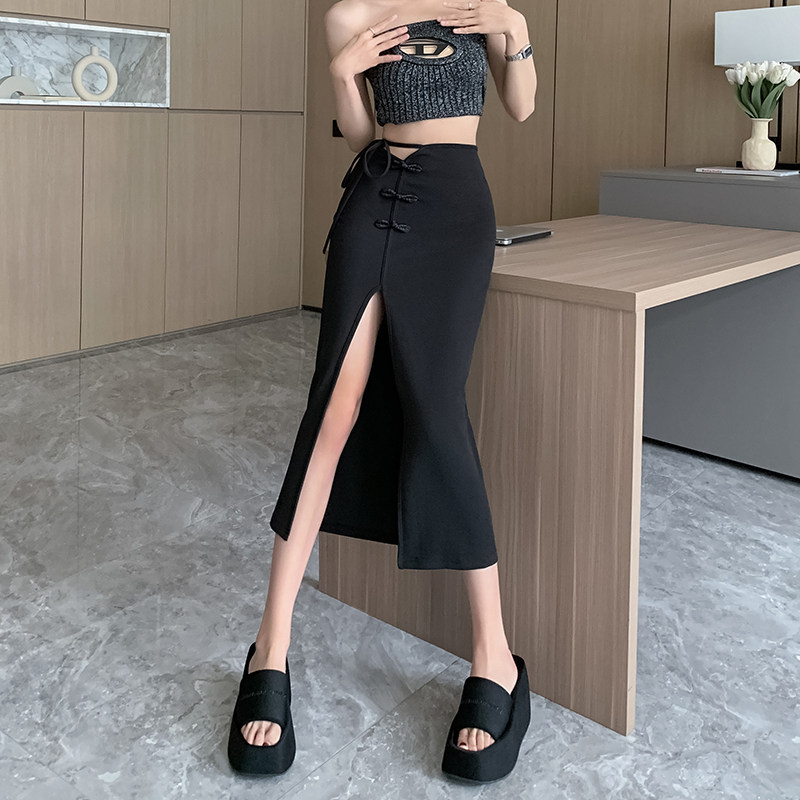 Летний костюм, длинная юбка, китайский стиль, высокая талия, средней длины