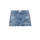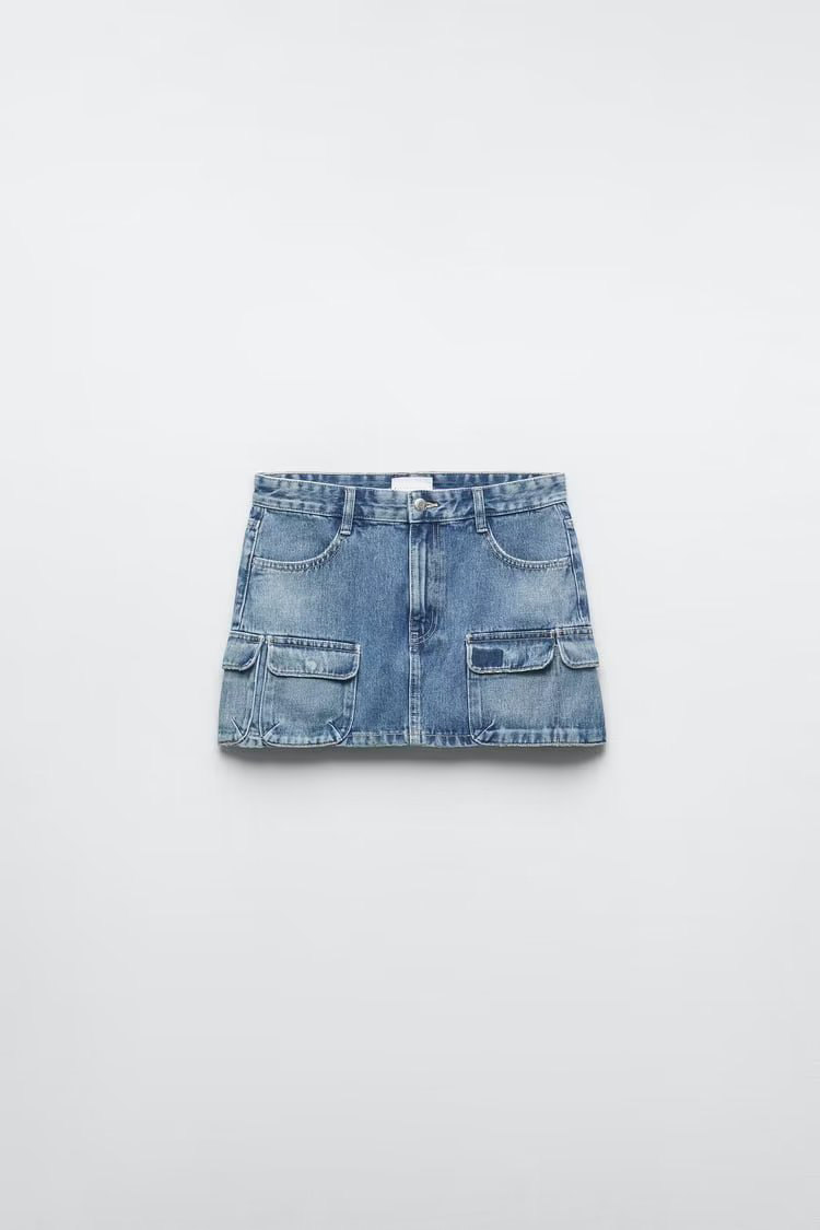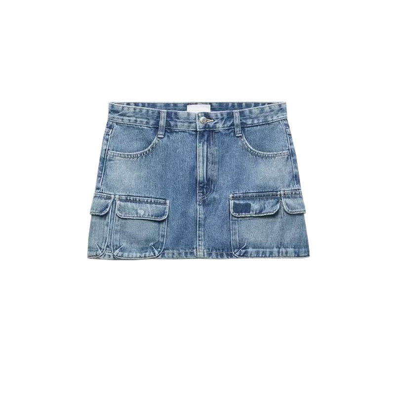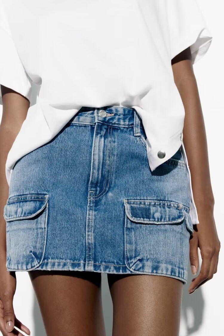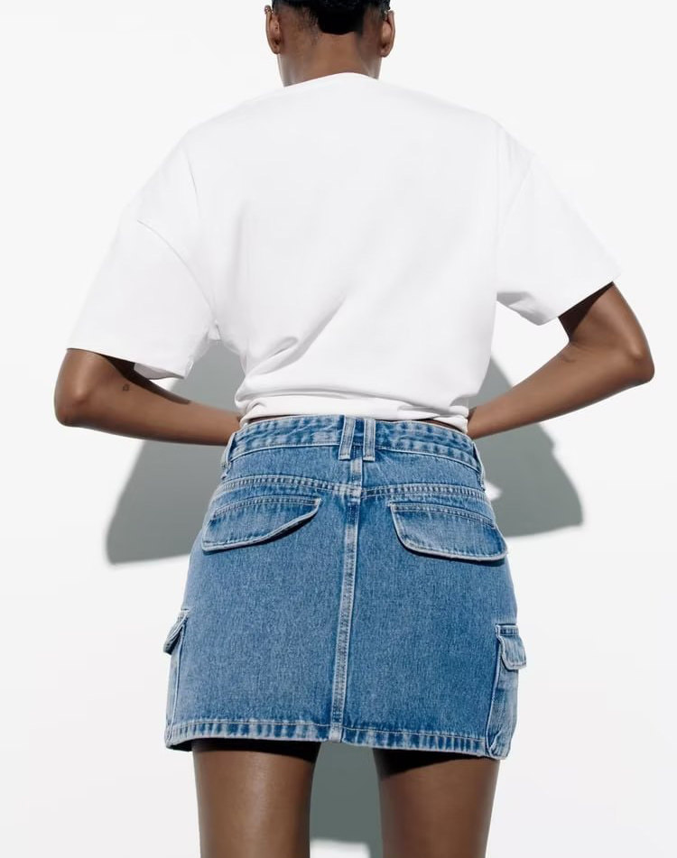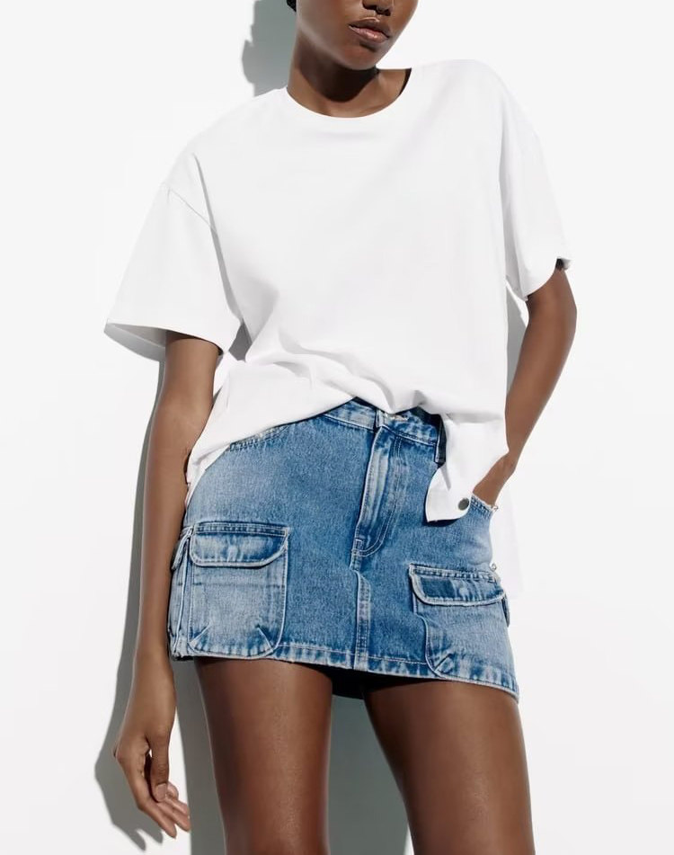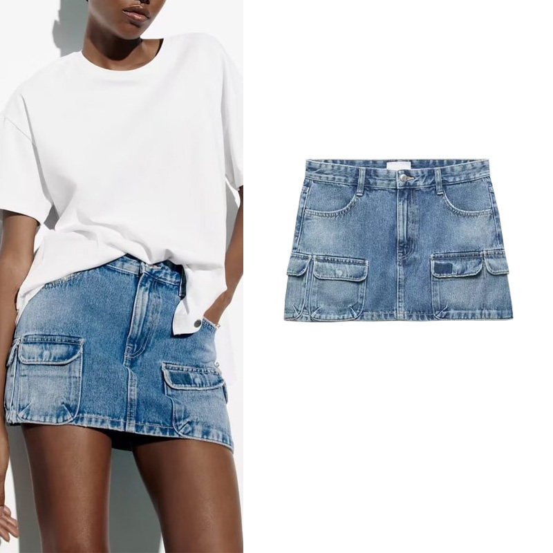 Летняя джинсовая юбка, высокая талия, с акцентом на бедрах