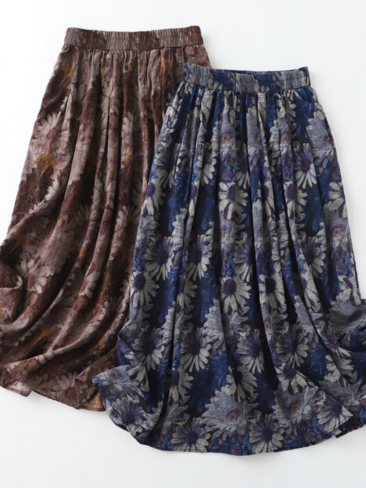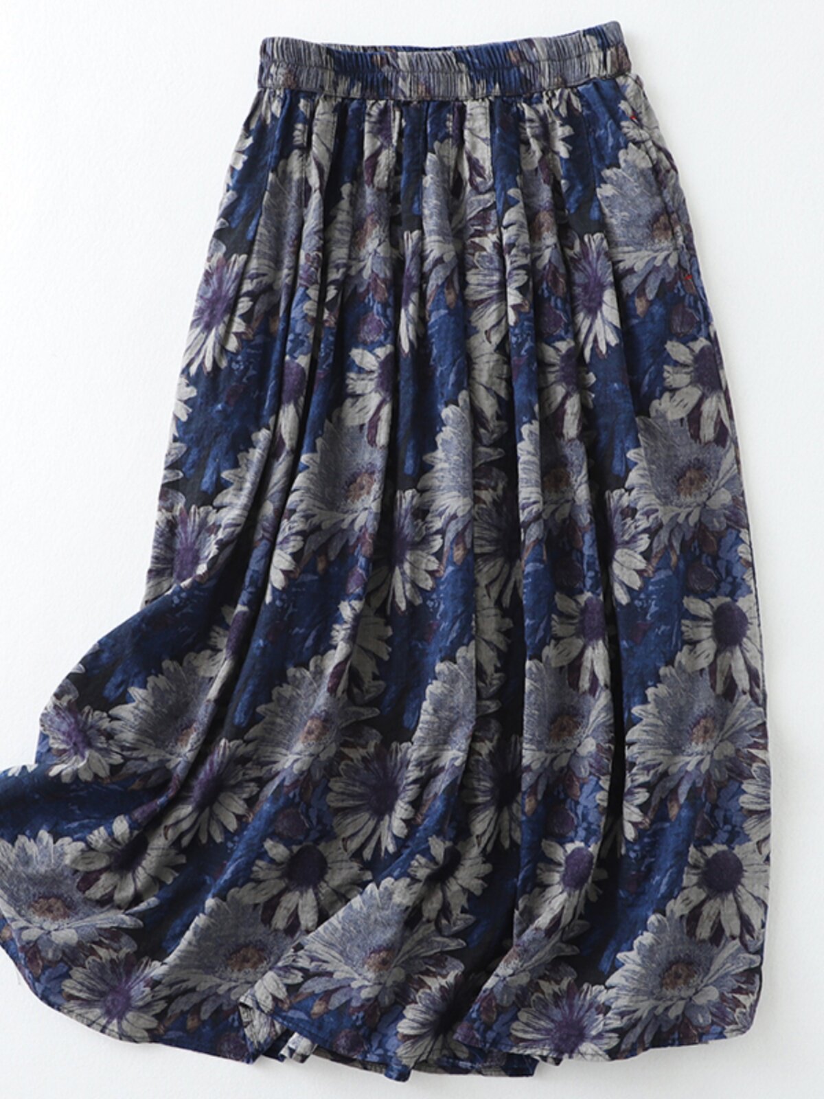 Брендовая ретро юбка, цветочный принт, высокая талия, из хлопка и льна, А-силуэт