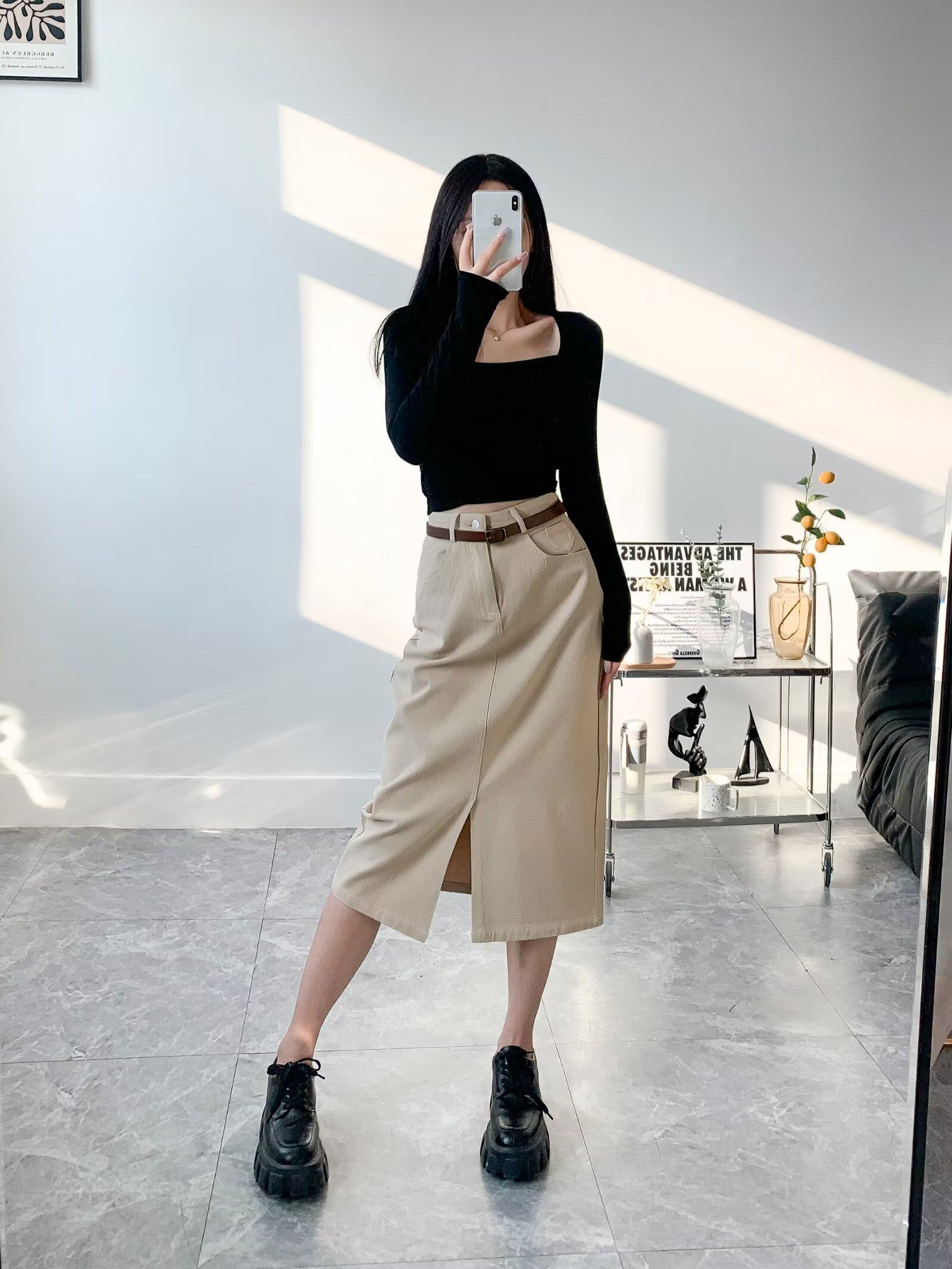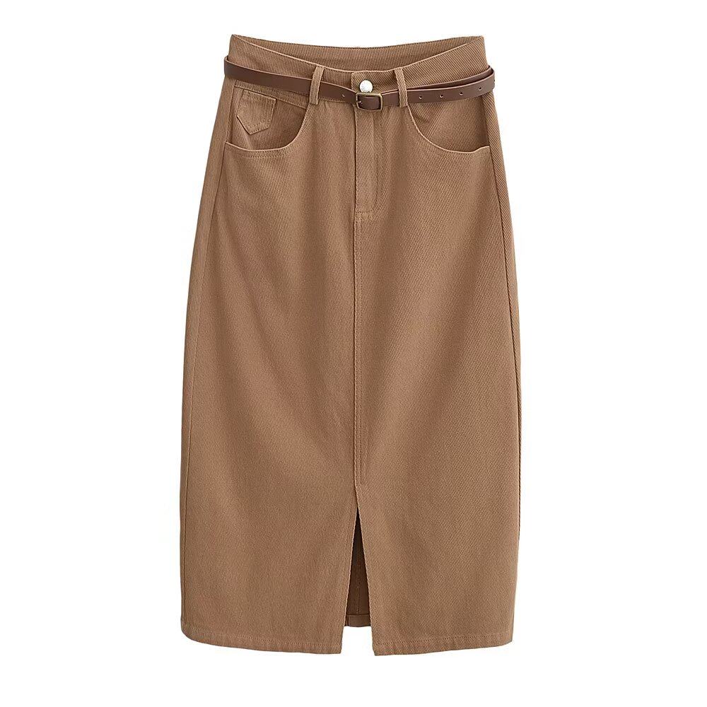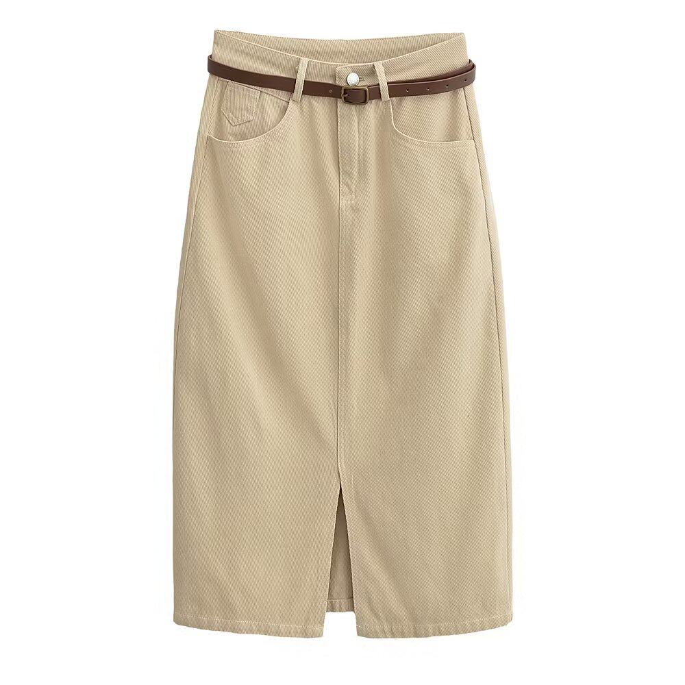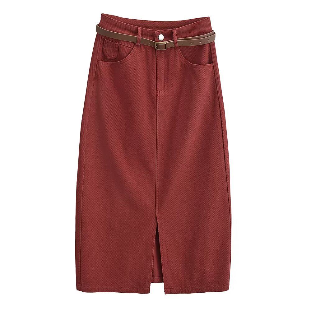 Ремень, осенняя приталенная джинсовая юбка, высокая талия, с акцентом на бедрах