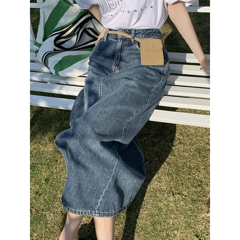 Летняя ретро джинсовая юбка, длинная юбка, подходит для подростков, А-силуэт, свободный крой, оверсайз