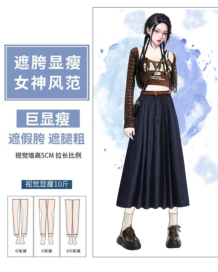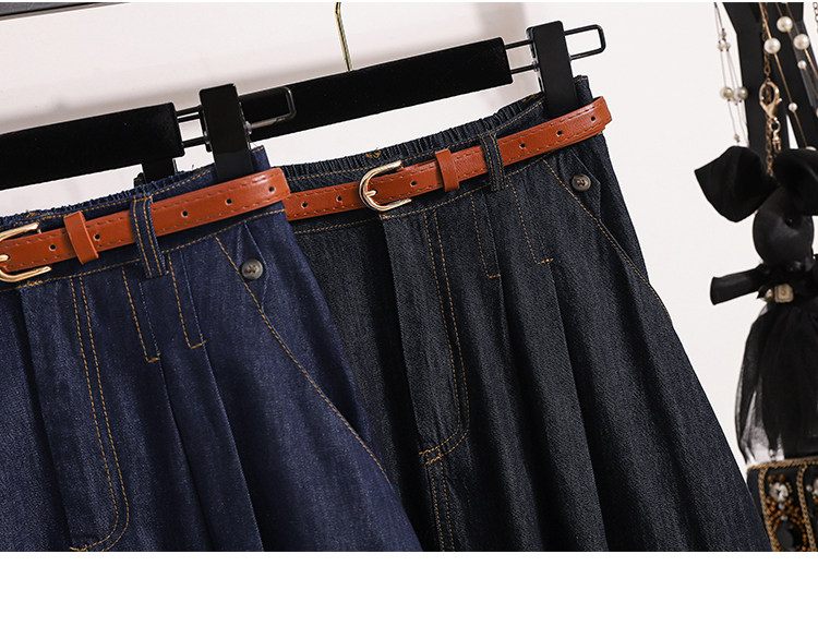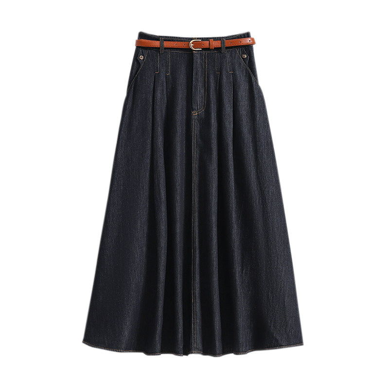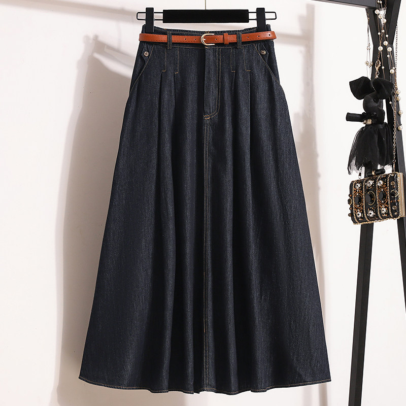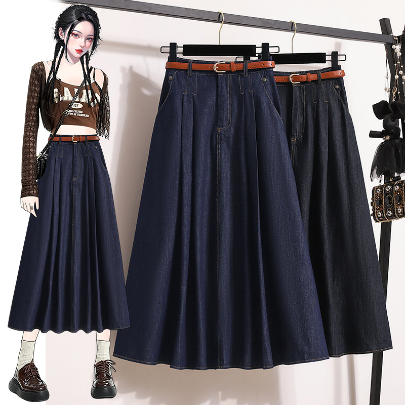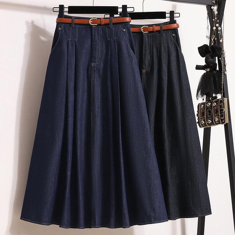 Джинсовая летняя юбка в складку, длинная юбка, большой размер, плиссированная юбка, высокая талия, А-силуэт, средней длины, длина макси