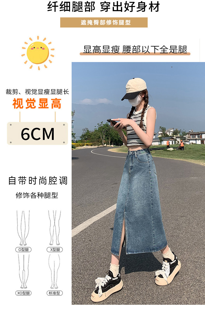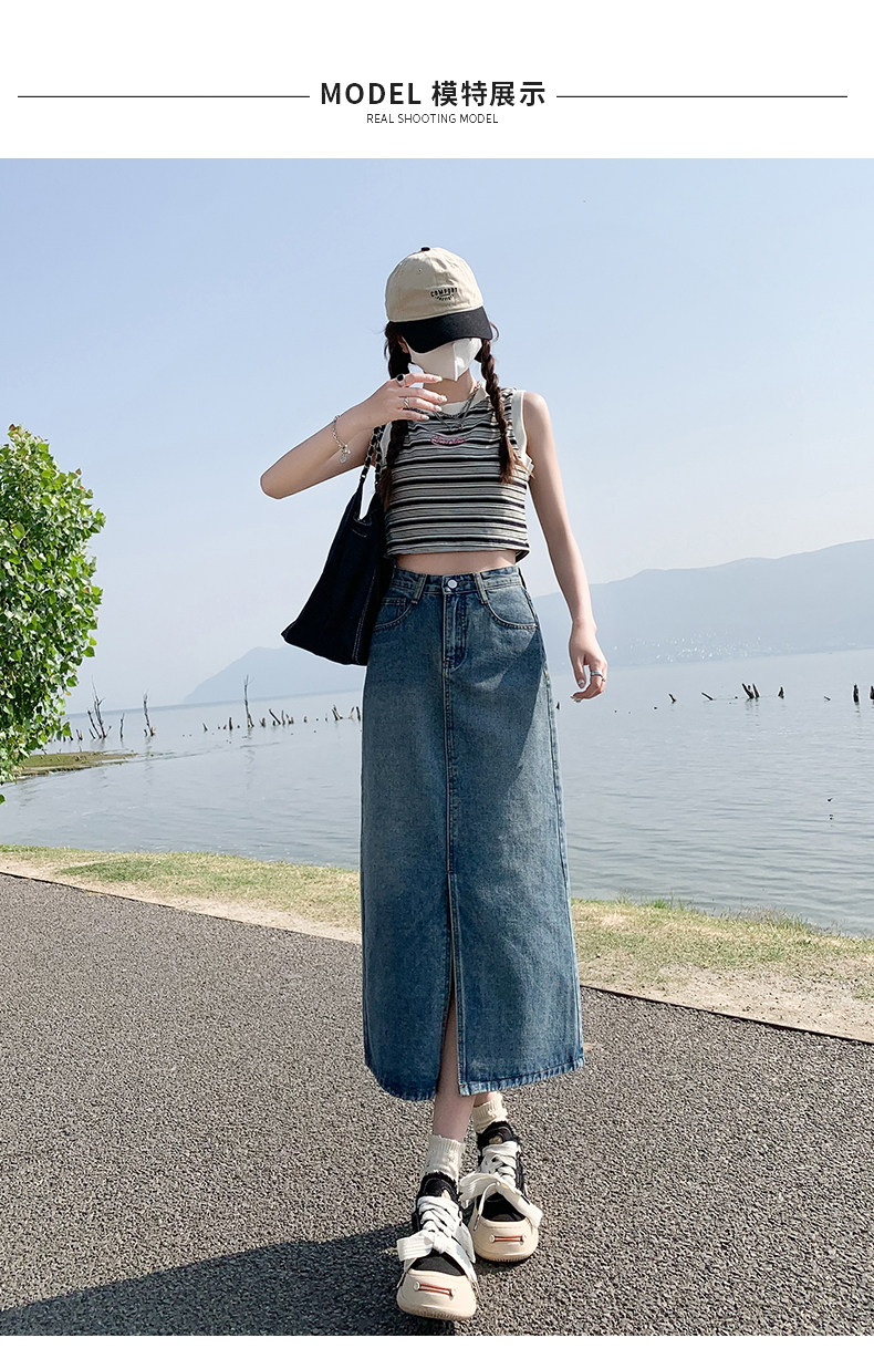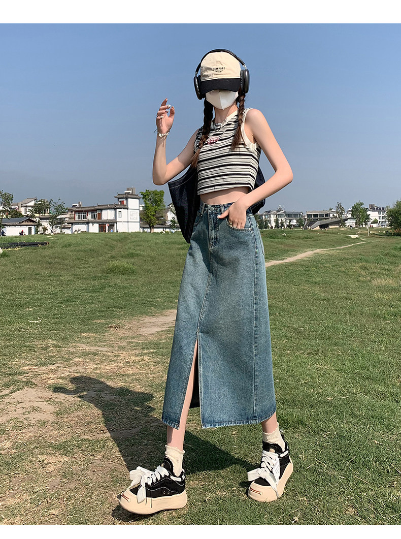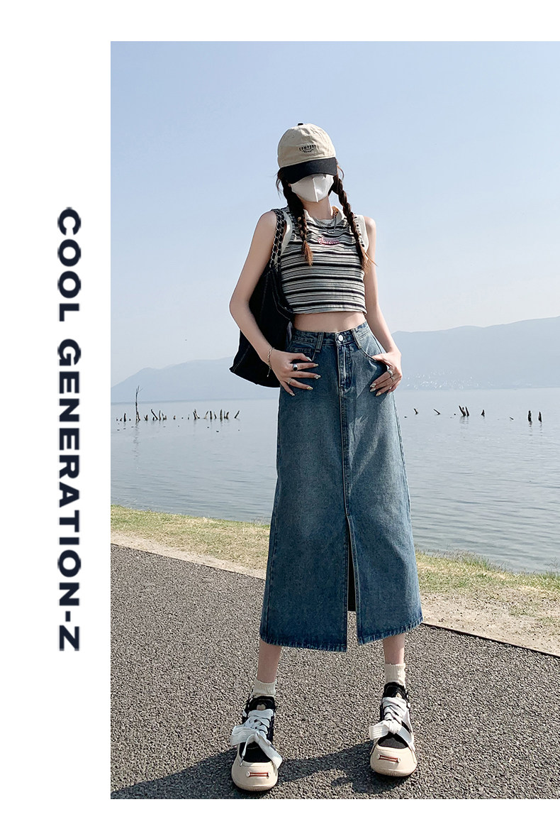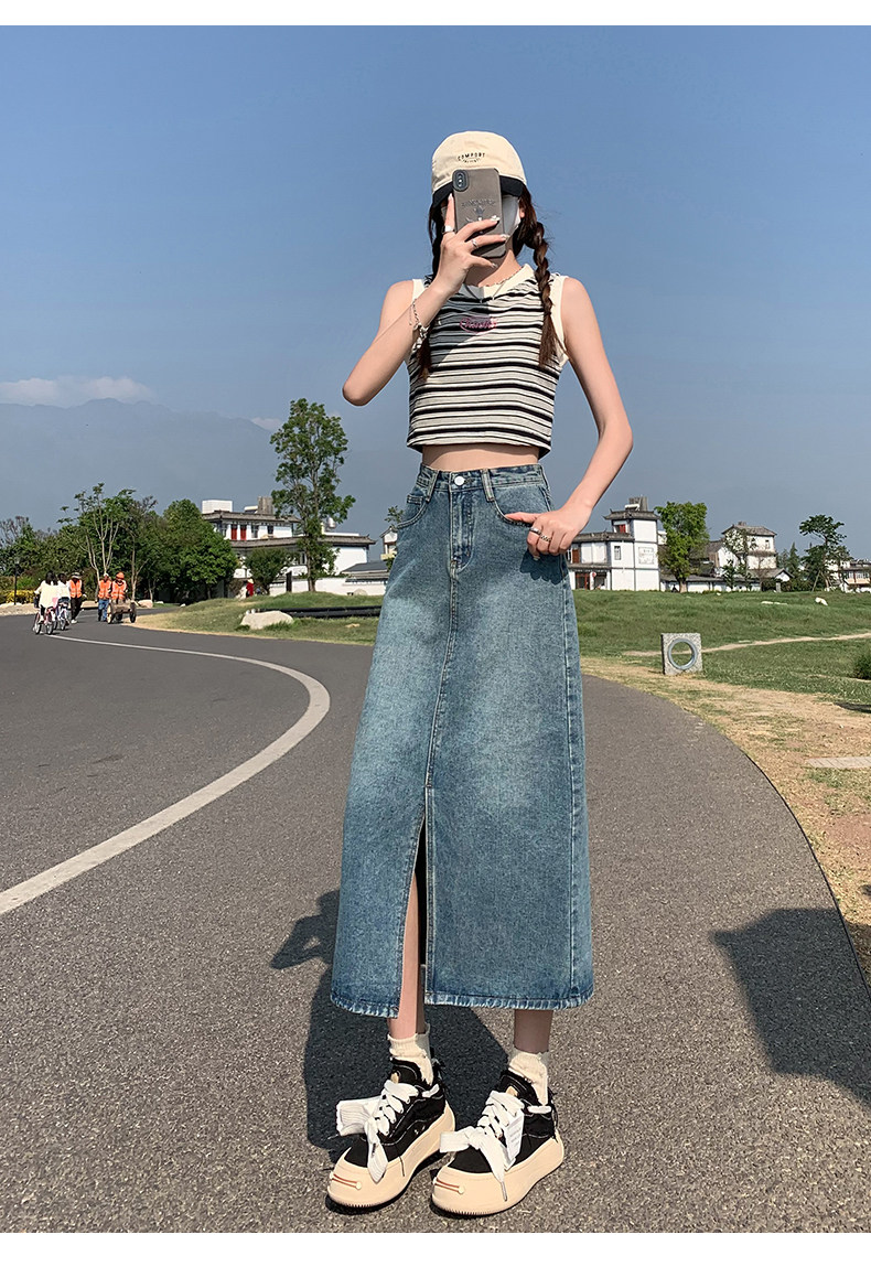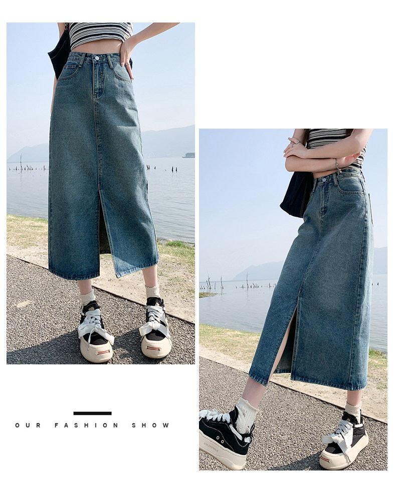 Осенняя приталенная джинсовая юбка, длинная юбка, коллекция 2023, высокая талия, по фигуре, подходит для подростков, А-силуэт