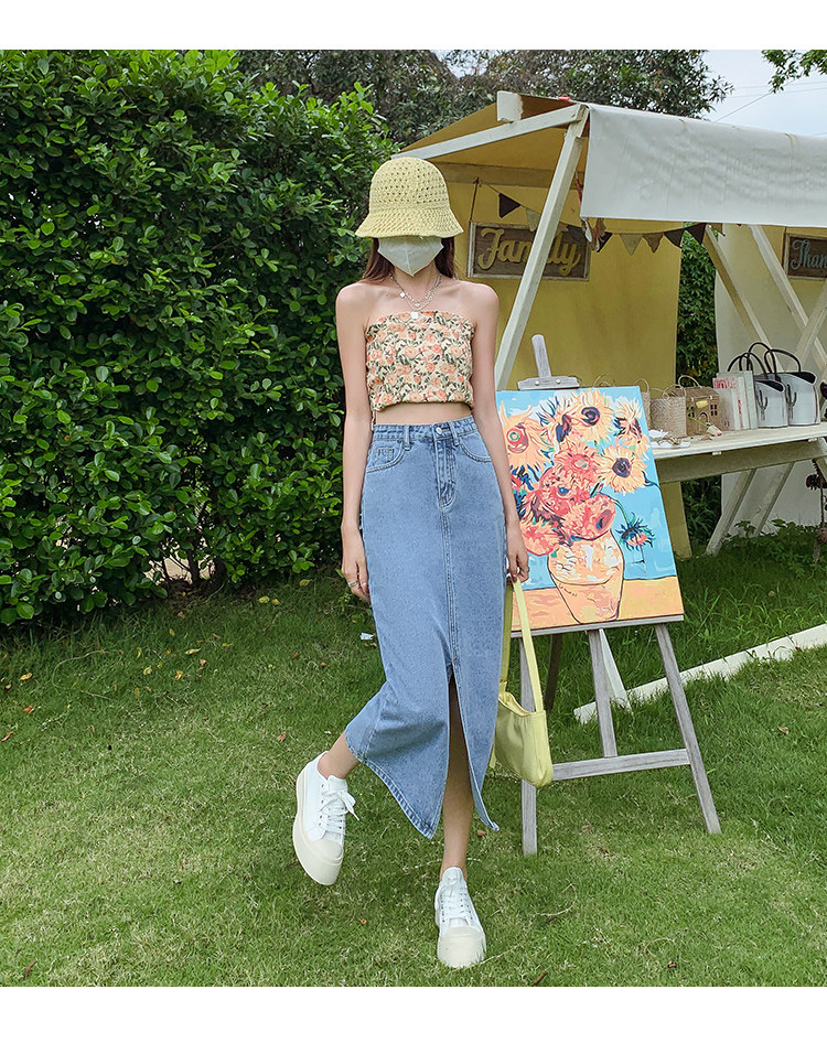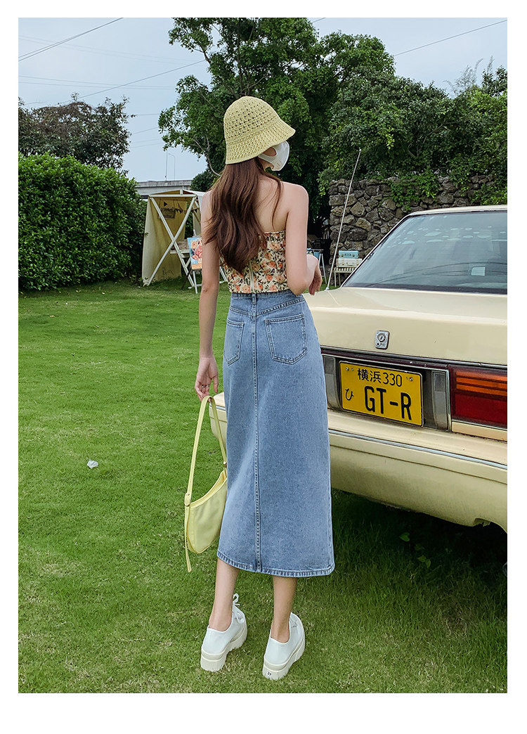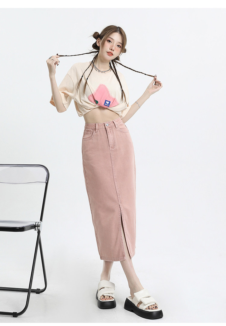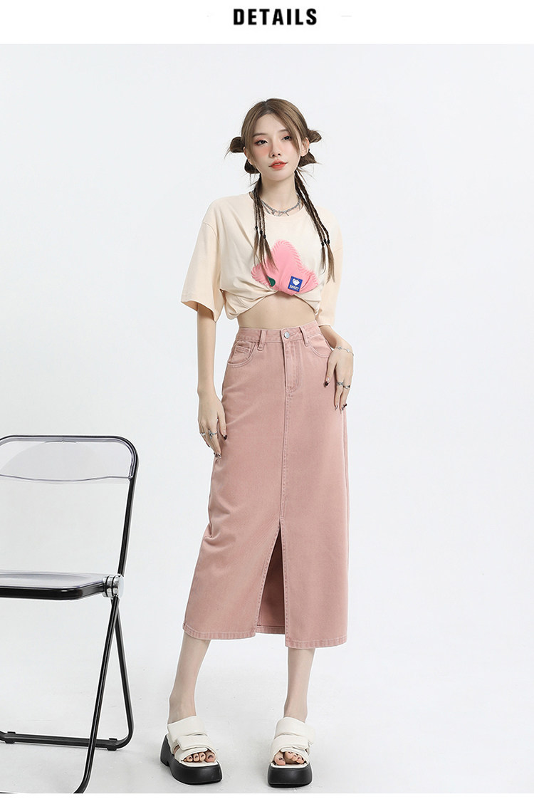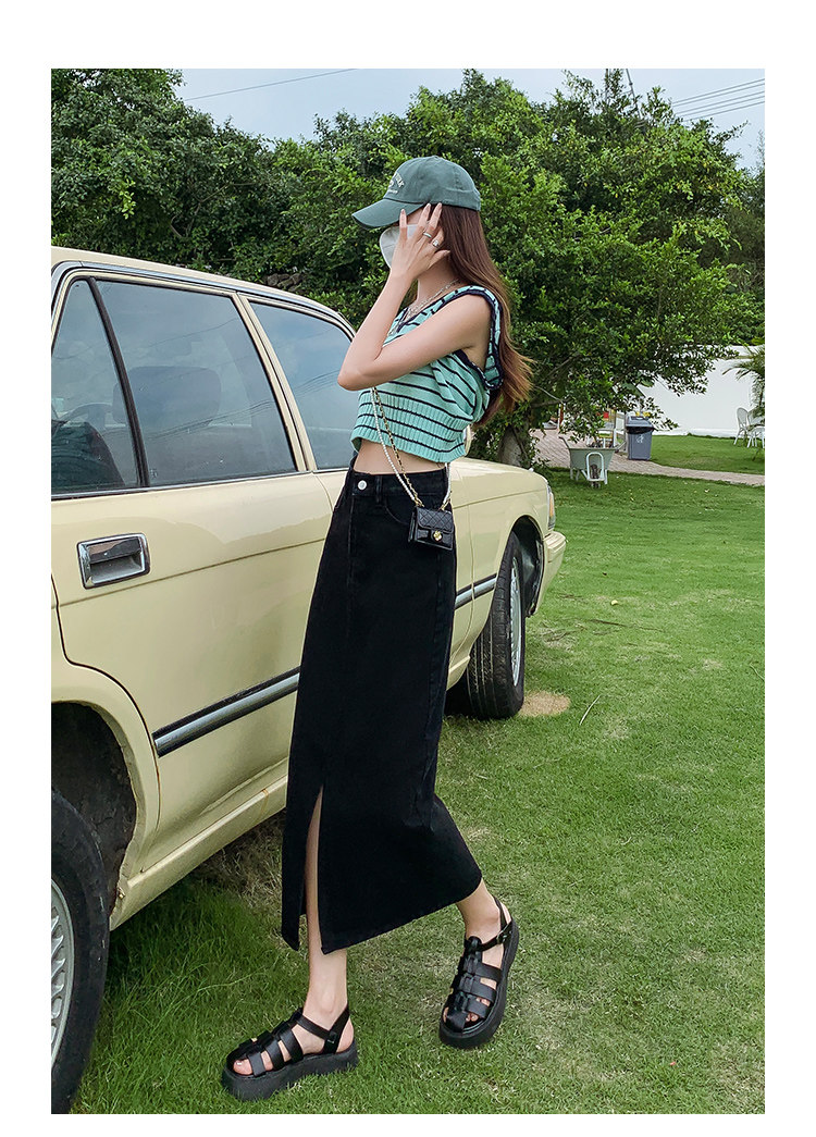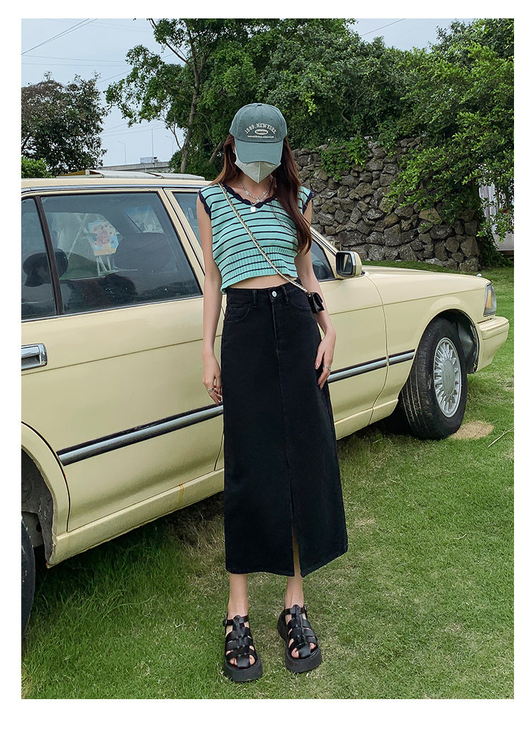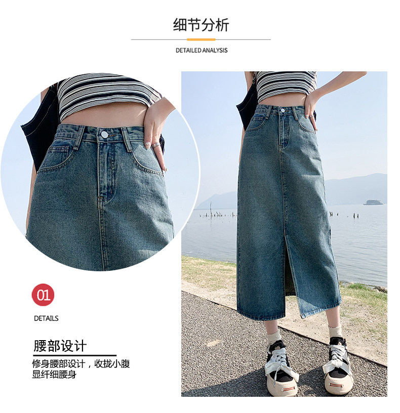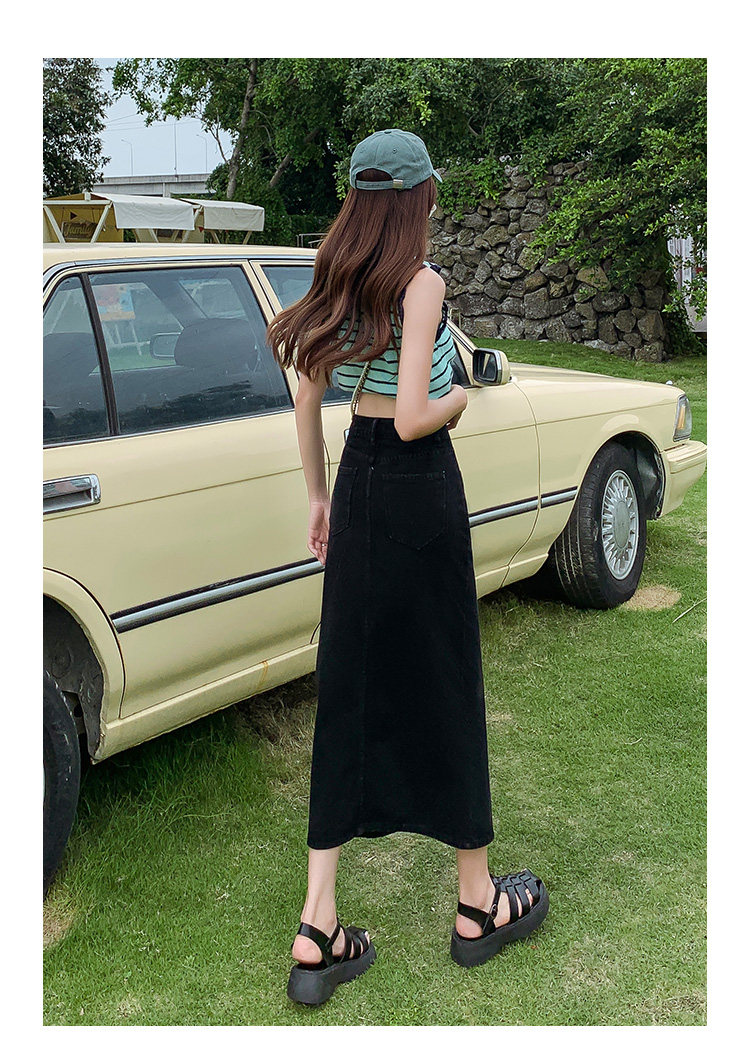Осенняя приталенная джинсовая юбка, длинная юбка, коллекция 2023, высокая талия, по фигуре, подходит для подростков, А-силуэт