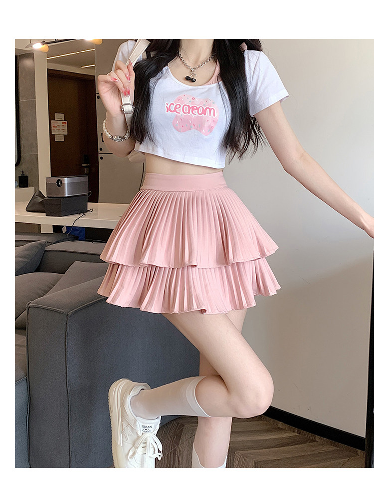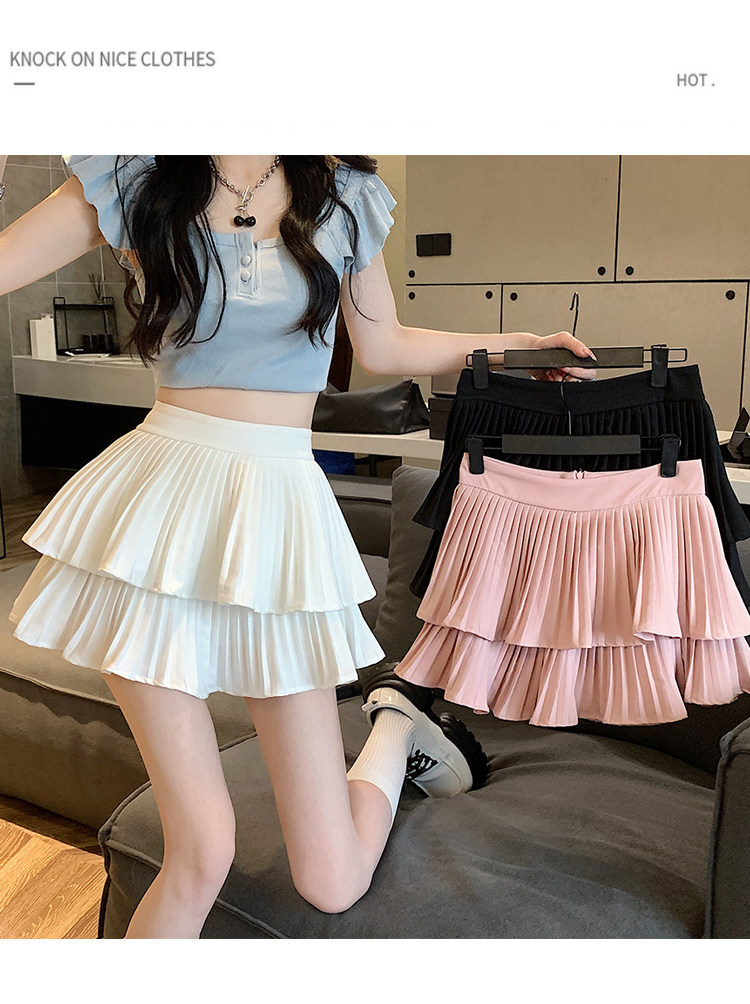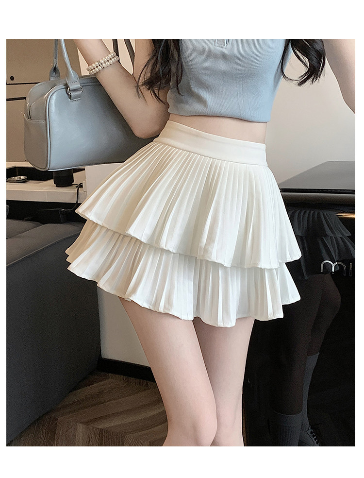 Белая летняя юбка в складку, французский стиль, 2025 года, высокая талия, А-силуэт