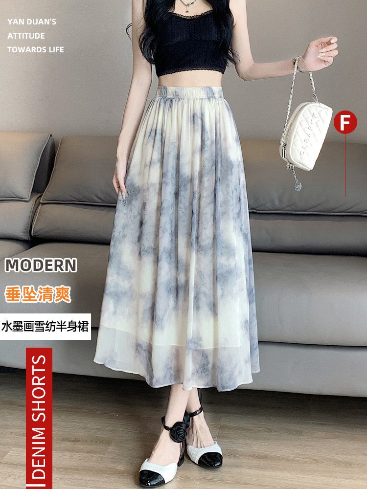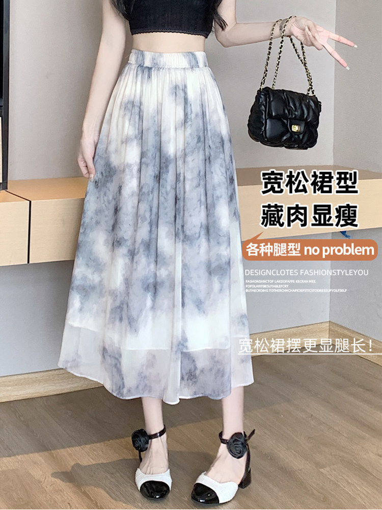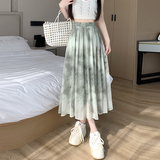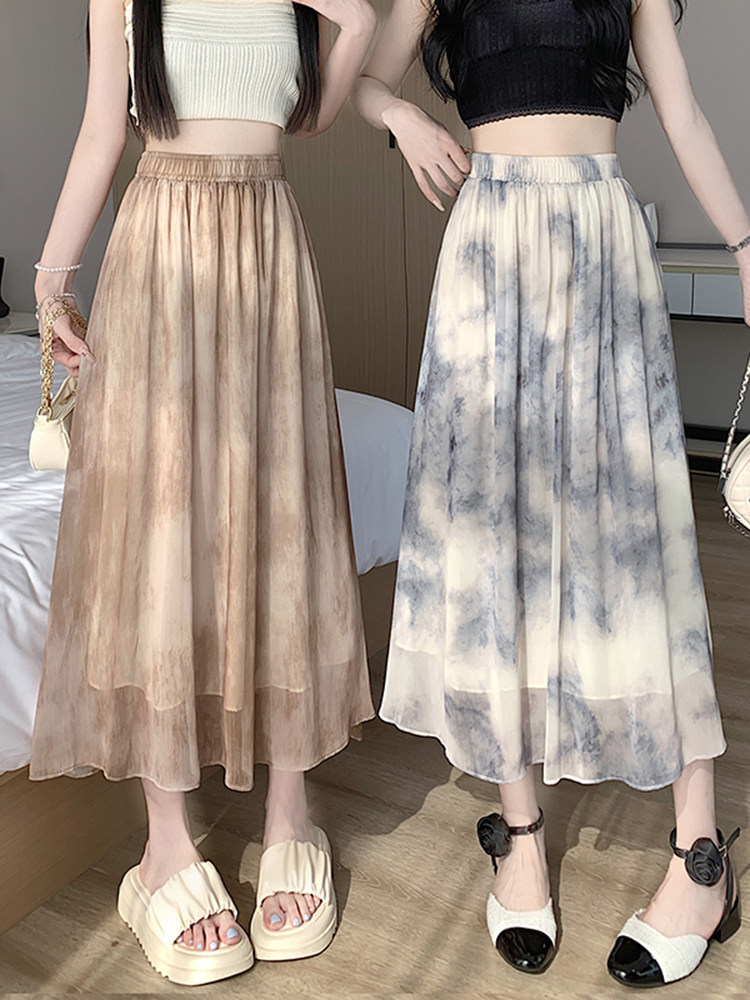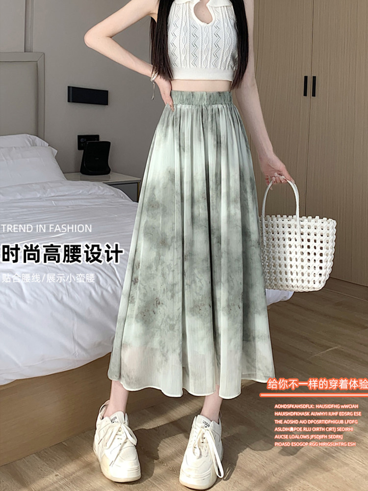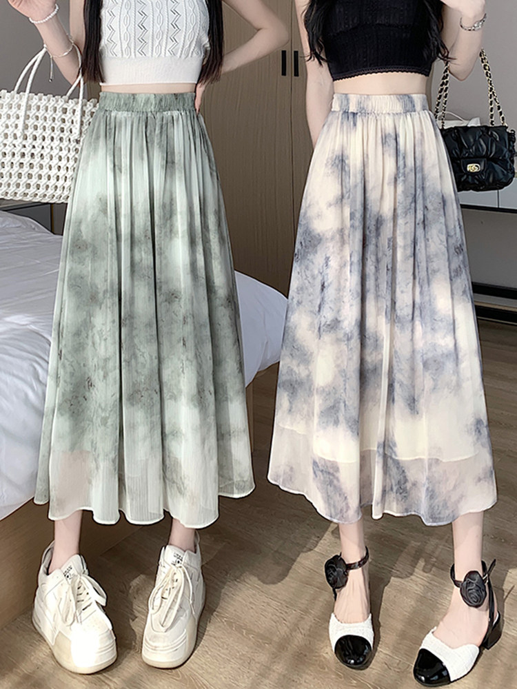 Шифоновая летняя длинная юбка в складку, шифоновая с принтом, средней длины, подходит для подростков, А-силуэт