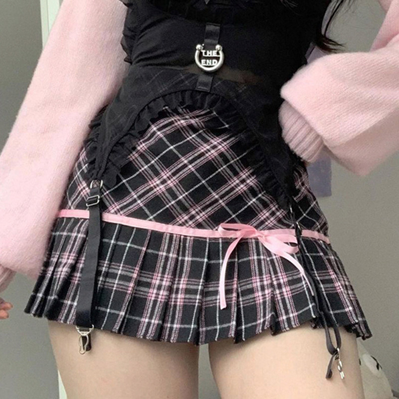 Weekeepk Millennium Hot Girl Black Red, проверенная кожа юбка для женской красивой ретро -кампус юбки для котенок