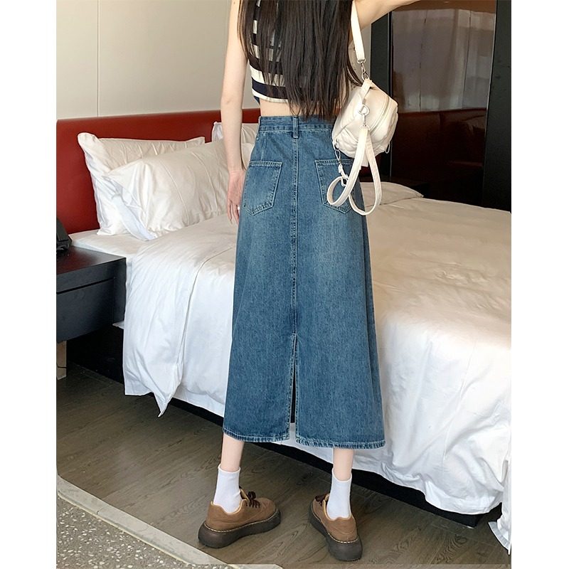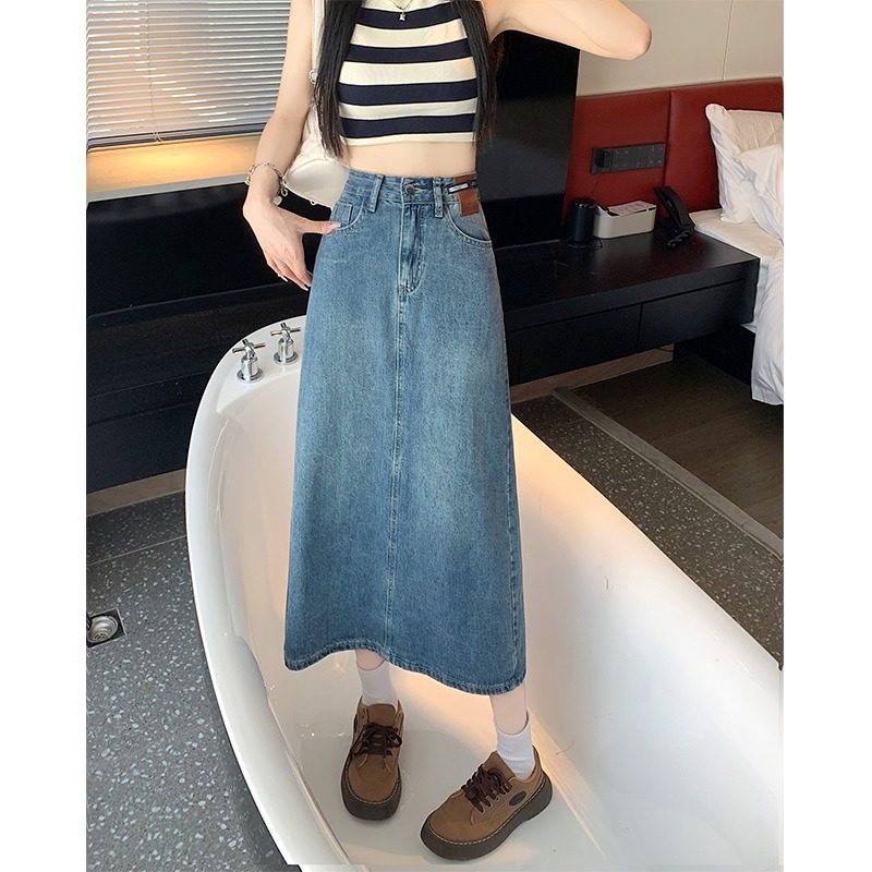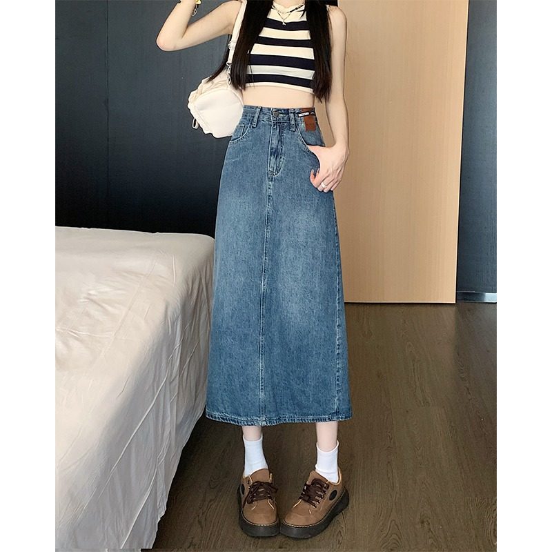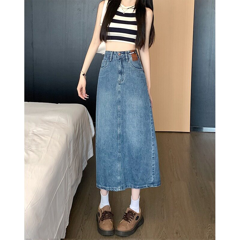 Длинная приталенная джинсовая юбка, большой размер, коллекция 2023, средней длины, высокая талия, А-силуэт