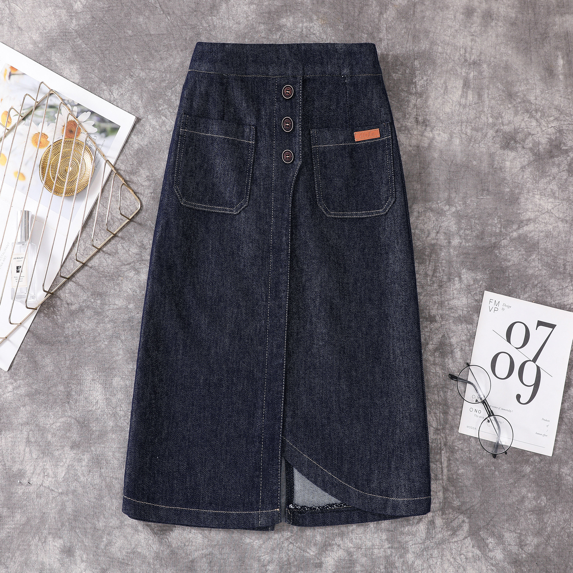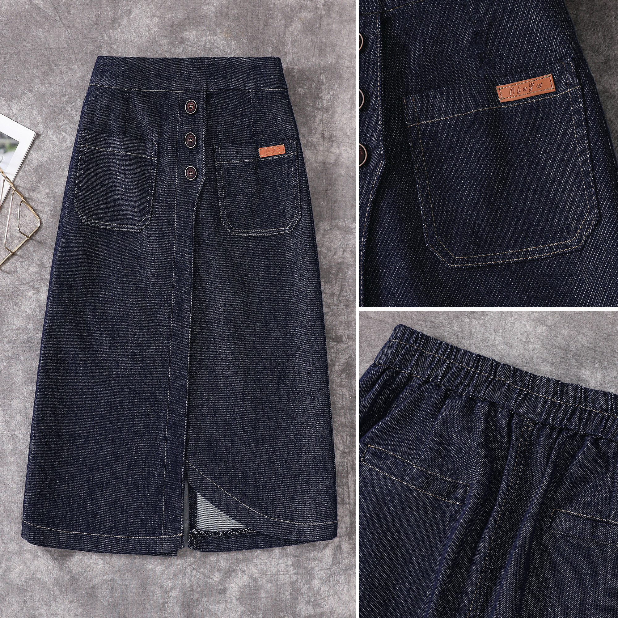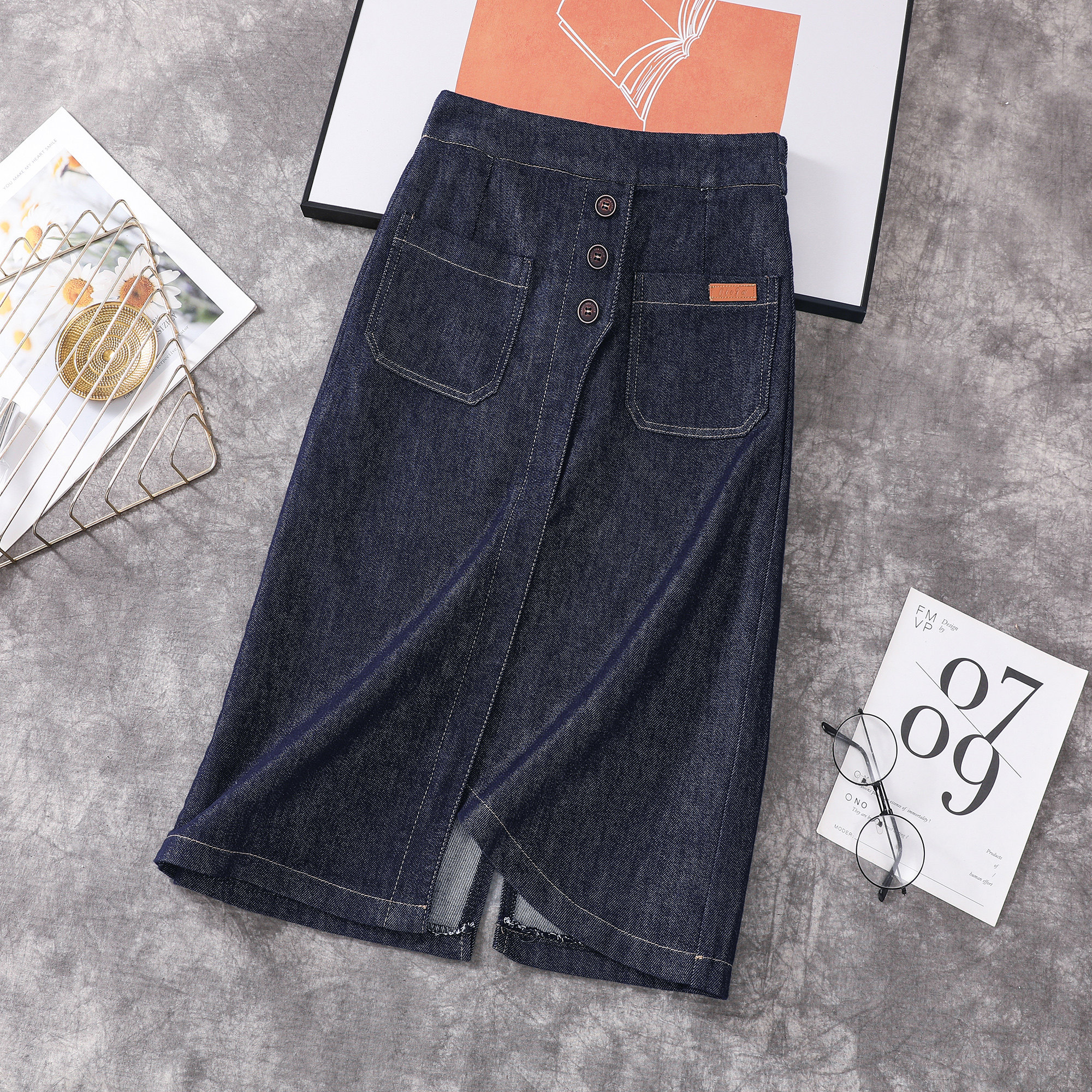 Эластичная джинсовая длинная летняя юбка, большой размер, эластичная талия, средней длины, А-силуэт