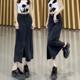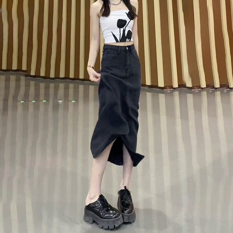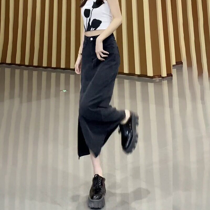 Черная тонкая шелковая джинсовая юбка, размер, высокая талия, длина миди, А-силуэт